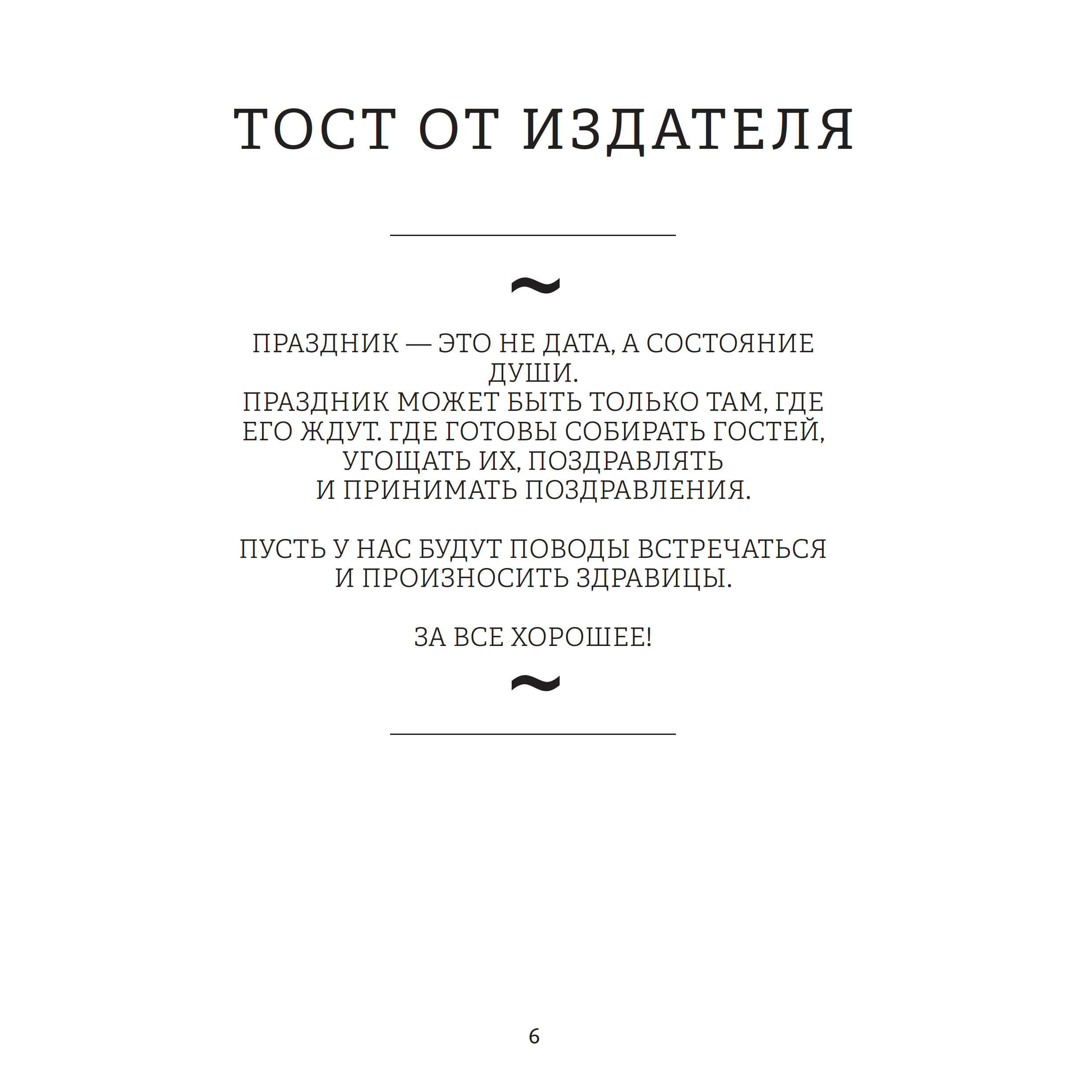 На этот раз для поклонников своего творчества и всех любителей красивых книг художник подготовил иллюстрированный сборник афористичных тостов для доброго застолья. Забавные подписи к каждой иллюстрации никого не оставят равнодушным — эта книга станет отличным подарком не только для любителей застолья и необычных тостов, но и для всех людей с чувством юмора.