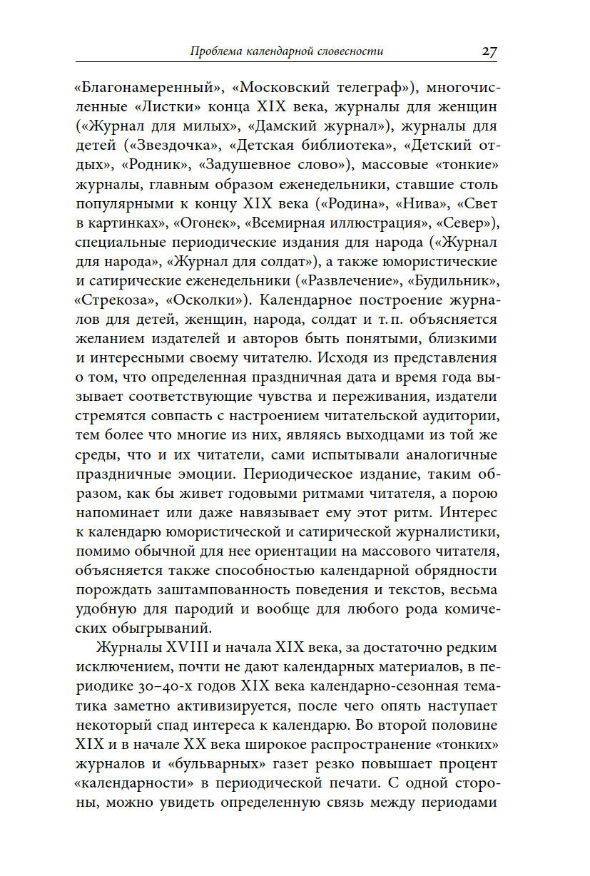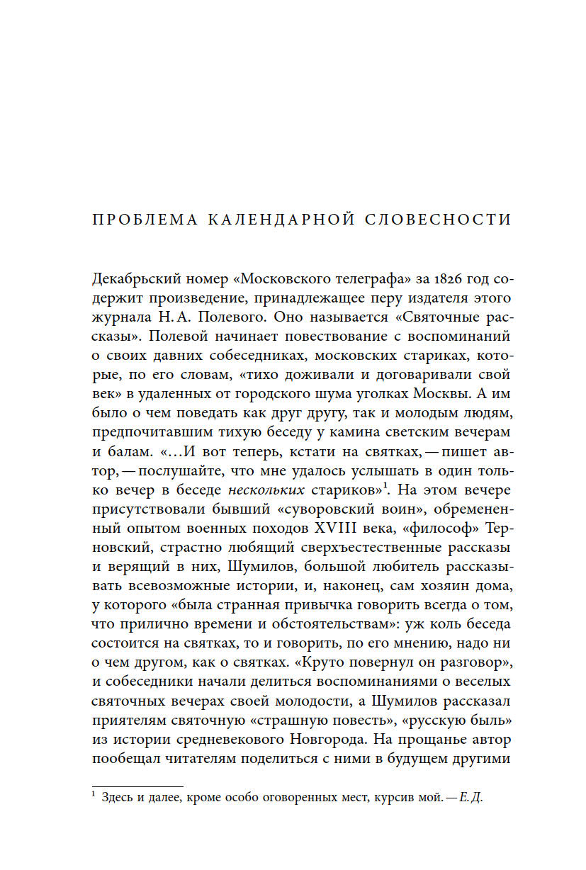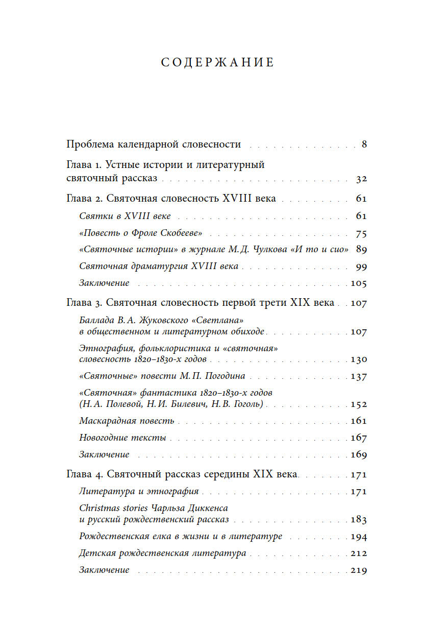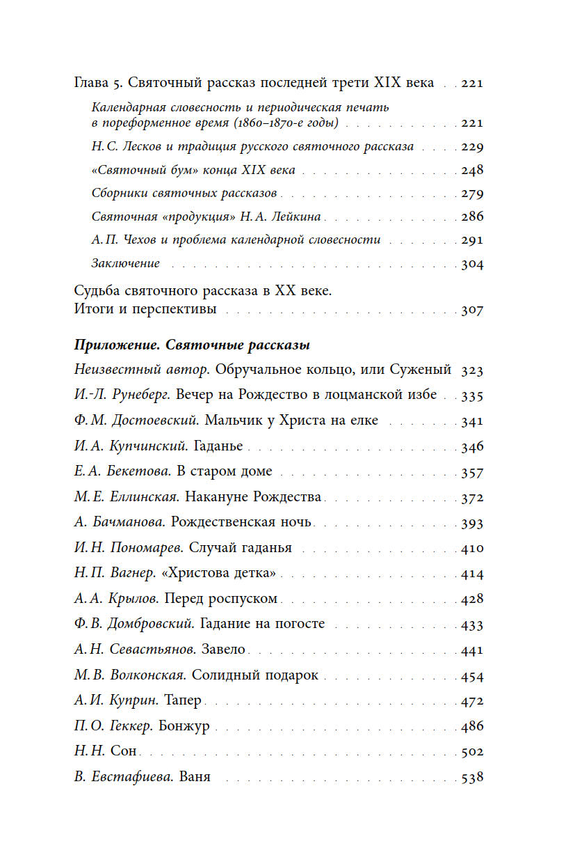 Святочный рассказ — вид календарной прозы, возникший на фольклорной основе — попал в поле зрения исследователей сравнительно недавно. Монография Елены Душечкиной представляет собой первый и наиболее значительный опыт изучения этого феномена в отечественном литературоведении. Автор рассказывает историю возникновения и формирования жанра святочного рассказа в России, прослеживая его судьбу на протяжении трех столетий — от XVIII века до настоящего времени. На обширном материале, включающем в себя архивные записи фольклорных текстов и литературные произведения, напечатанные в русских периодических изданиях XVIII–XX вв., Елена Душечкина раскрывает художественную природу жанра и выделяет характерные для него основные темы. В качестве приложения к книге читателю предлагается подборка святочных рассказов, составленная самим автором монографии и включающая тексты, изначально появившиеся в русских журналах и сборниках второй половины XIX — начала XX века.