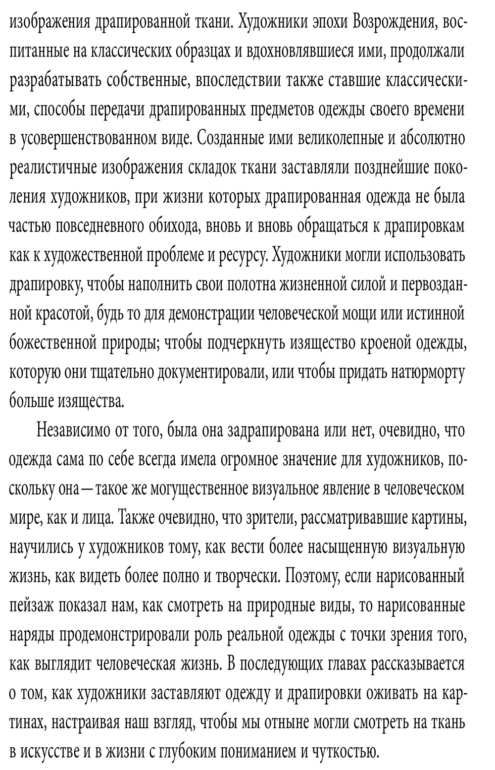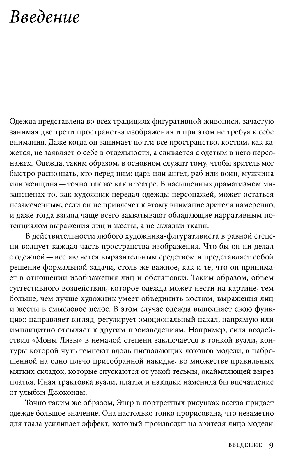 На портретах ренессансных монархов и их придворных шелковые чулки неизменно гладко обтягивают ноги — в реальной жизни такое станет возможным только в XX веке, с появлением эластичных синтетических тканей. Это лишь один из примеров того, как художники исправляют повседневные несовершенства модного костюма, приближая его к идеалу. Картины показывают нам, как наряд должен был выглядеть (а не как выглядел на самом деле), в полной мере раскрывая его эстетический и чувственный потенциал. Книга Энн Холландер «Материя зримого» посвящена такого рода идеализации и стилизации человеческой фигуры — процессам, в которых мода и живопись участвуют наравне, вдохновляя и подпитывая друг друга. Влияние моды на живопись наиболее заметно в том, что даже обнаженная фигура на полотне приобретает актуальные на тот момент пропорции. С другой стороны, живопись изобретает позы, которые становятся неотъемлемой частью модного лексикона: так, кокетливо выныривающее из складок ткани голое плечо с барочных изображений кающейся Марии Магдалины через долгую цепочку образов-посредников со временем переходит на фотографии голливудских актрис. Отдельный захватывающий сюжет связан с ролью живописных драпировок, которые, начиная с работ Микеланджело, полностью подчиняются художественной идее, игнорируя законы физики. Книга Холландер поможет по-новому взглянуть как на хорошо знакомые произведения искусства, так и на современную моду и те способы стилизации тела, которые она предлагает.