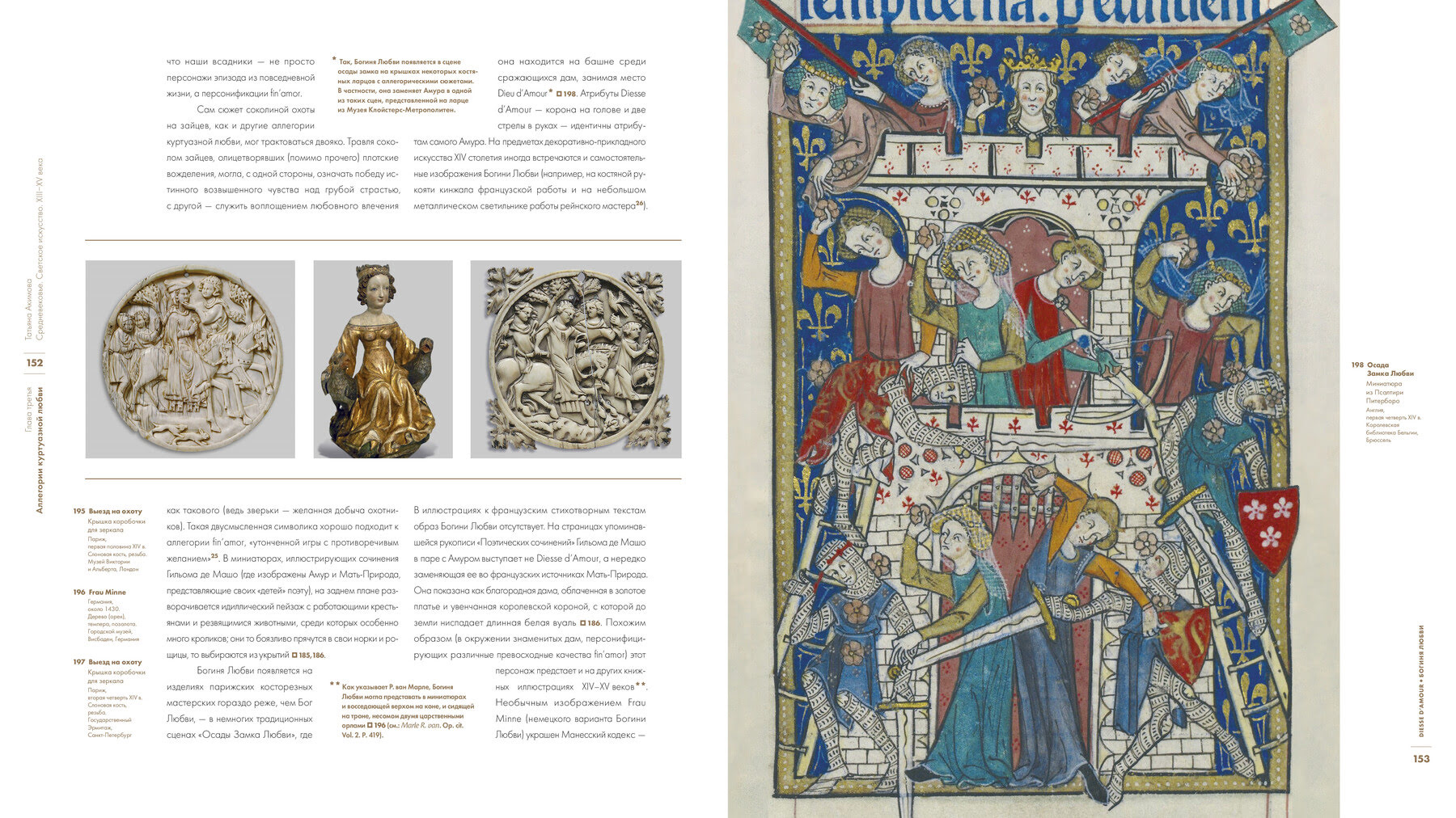 В книге, написанной искусствоведом Татьяной Акимовой, представлено исследование произведений светского искусства Западной Европы XIII–XV веков. В работе рассматривается большое количество малоизвестных материалов, включая настенные росписи, миниатюры в книгах, гобелены, вышивки, ювелирные изделия, предметы быта и одежды, такие как ларцы, таблички для письма, футляры для зеркал, гребни и фибулы, выполненные из слоновой кости, металла и дерева.