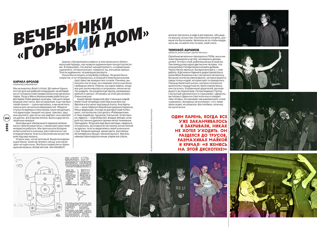 В панораму неформальной культуры бурного десятилетия также вошли воспоминания, посвященные художественным сквотам, андеграундной моде и стрит-арту. Книга представляет интерес не только для меломанов и любителей ночной жизни, но и для всех, кто хотел бы узнать больше об эпохе новейшей истории, известной как «лихие девяностые» и «время надежд».