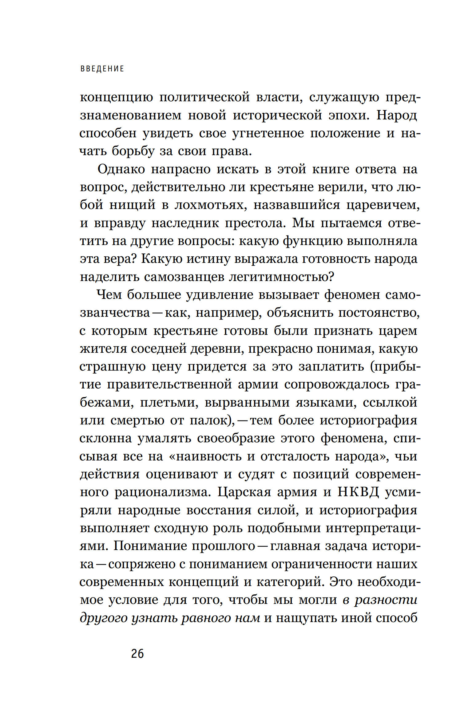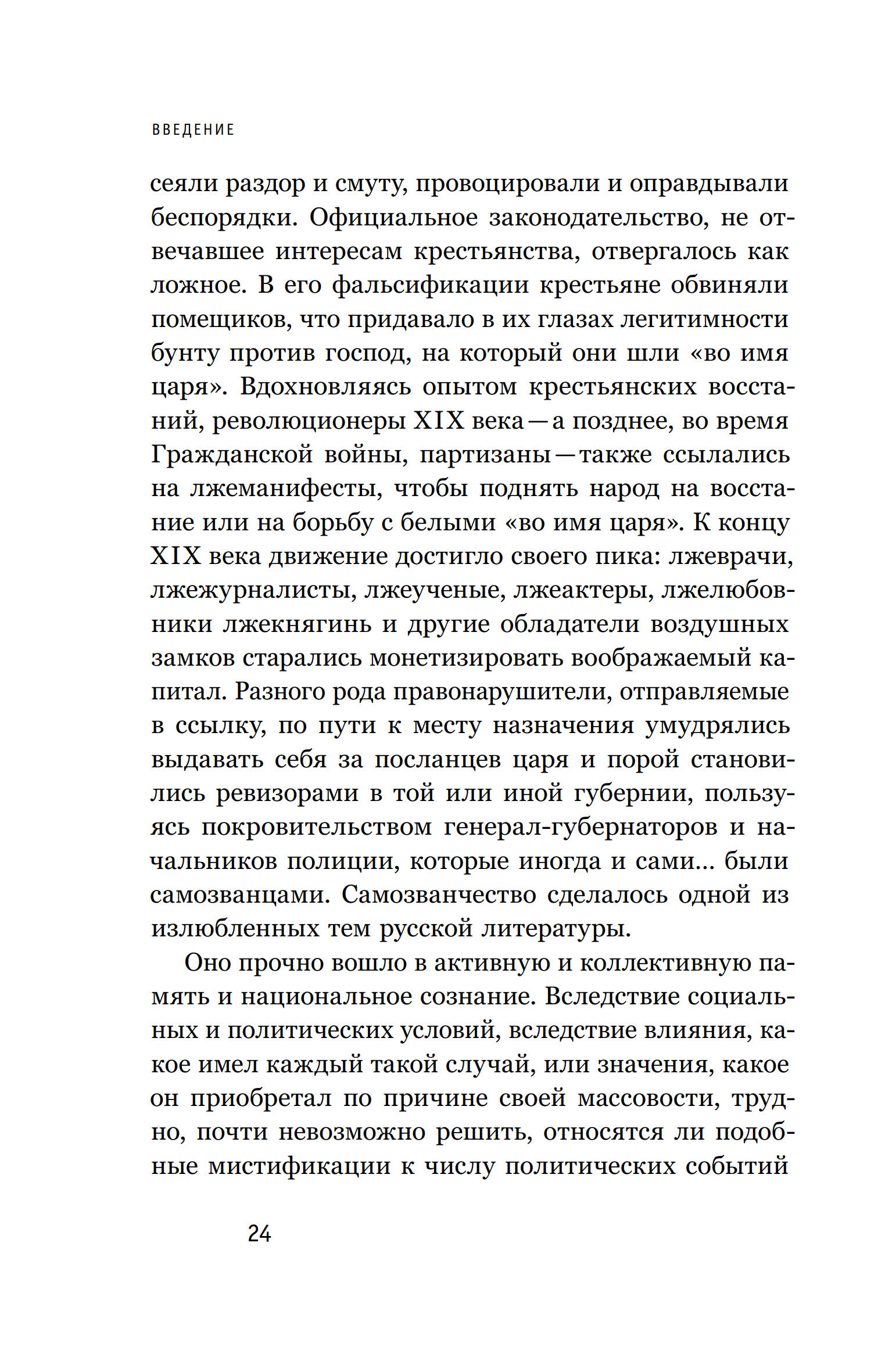 С начала XVII века сотни людей объявляли себя царями и царевичами, а один из них официально взошел на престол. Самозванство пустило корни во все сферы социальной и культурной жизни: многочисленные авантюристы выдавали себя за князей, священников, ученых и судей, а после 1917 года — за революционеров, за «настоящего» Ленина, за сыновей Сталина... Почему самозванцев было так много и какую правду выражала их народная легитимность?