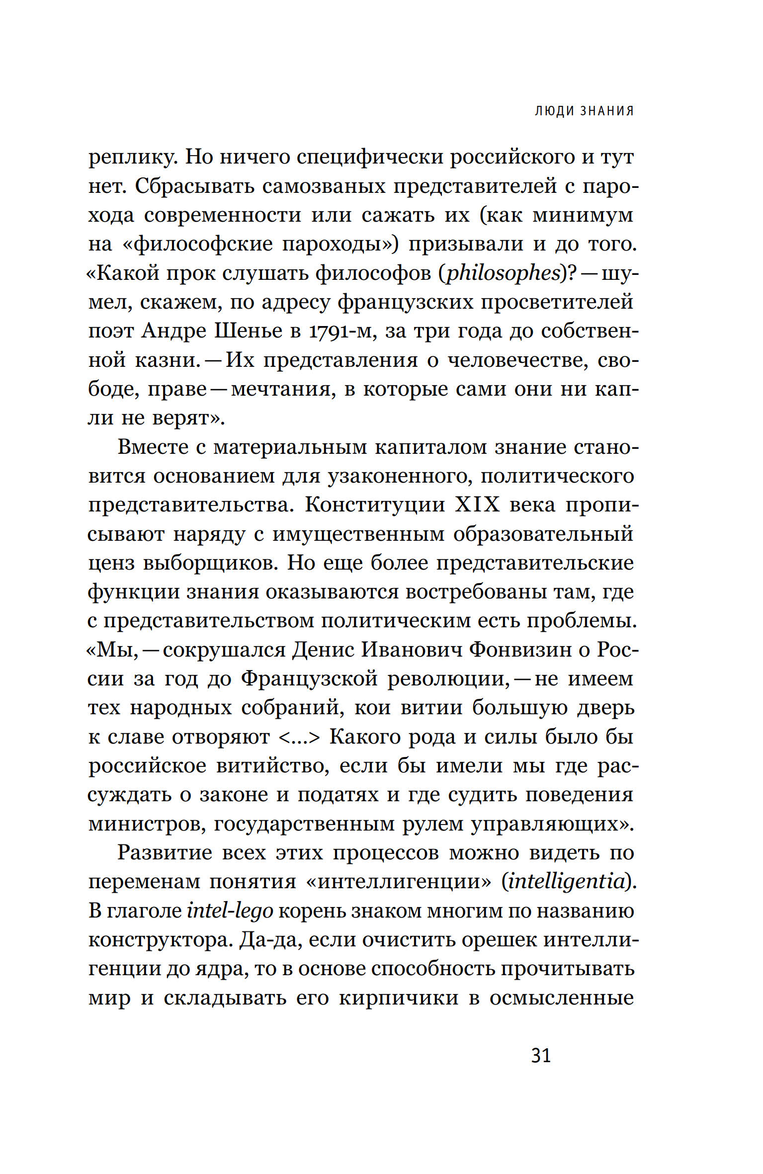 Слово «интеллигенция» — русский латинизм, а само явление обладает ярко выраженной российской спецификой. Интеллигенцию в России традиционно оценивали по гамбургскому счету. Ее обожали, перед ней преклонялись, ее критиковали, унижали и уничтожали всеми возможными способами. Безусловно одно: интеллигенция стала основанием русской культуры Нового времени и мощным международным брендом. Но кто он — русский интеллигент: властитель дум или высокомерный и оторванный от жизни «знайка»? Была ли интеллигенция уникальным российским явлением? Как она соотносилась и взаимодействовала с образованным классом других европейских стран? Сопоставляя ключевые понятия и идеи этой влиятельной социальной среды, автор книги создает ее словесный портрет в европейском интерьере.