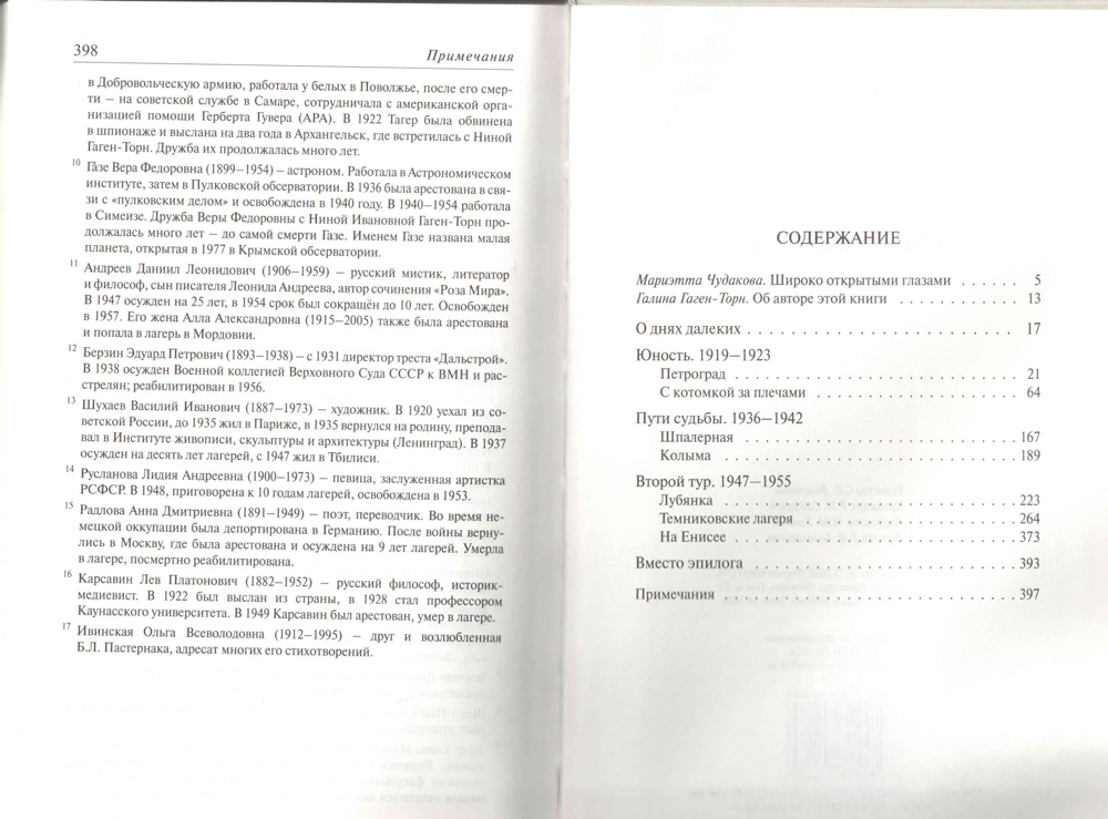 Нина Ивановна Гаген-Торн - ровесница ХХ века. Внучка обрусевшего шведа, кронштадсткого врача, плоть от плоти питерской служилой интеллигенции. Ученица Андрея Белого, в студенческие годы она посещала заседания «Вольфилы» — Вольно-философской ассоциации. В 1936 году была арестована, обвинена в антисоветской агитации и приговорена к 10 годам лагерей. Срок отбывала на Колыме. В 1947 году — повторный арест, 5 лет лагерей и ссылка. Именно там, в неволе, в стремлении быть внутренне свободной, независимо от внешних обстоятельств, раскрылся писательский талант Нины Гаген-Торн.