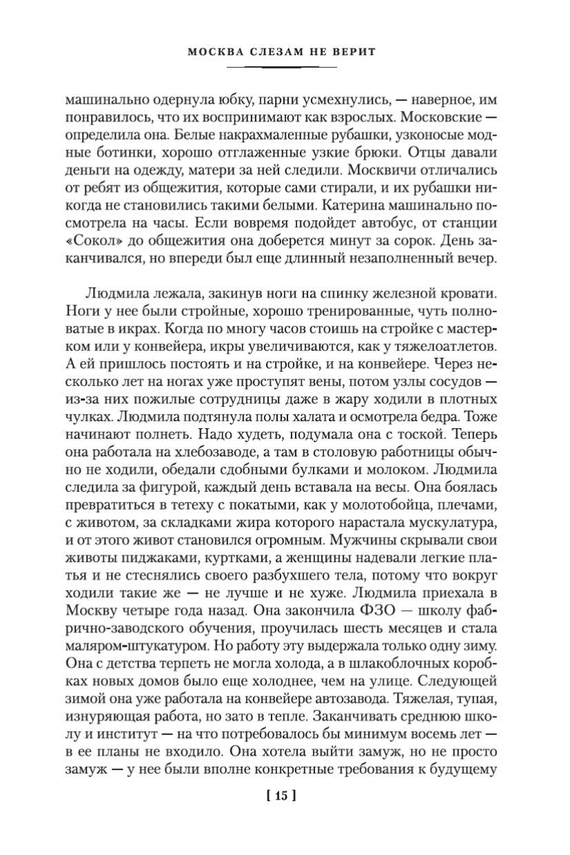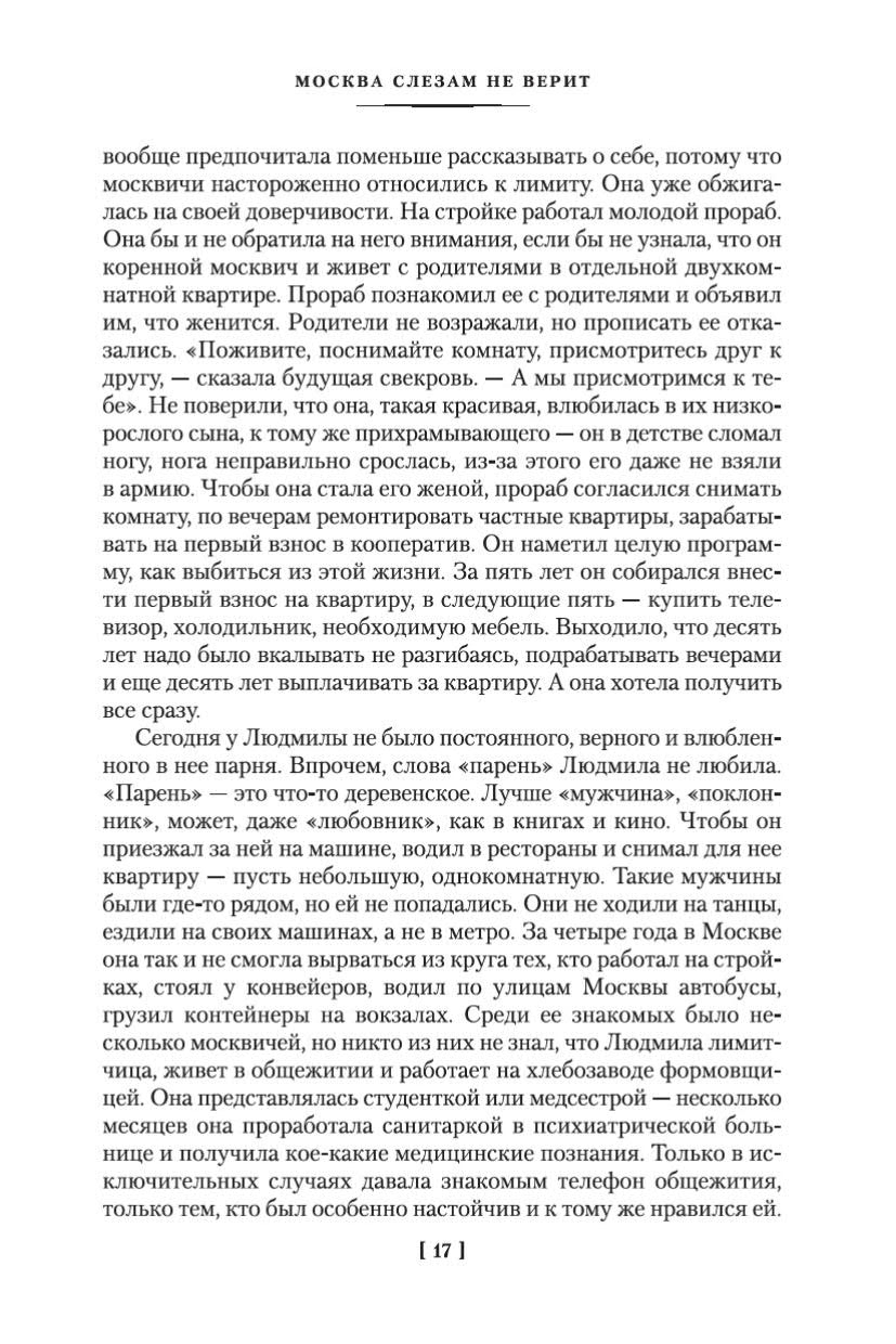 Роман «Москва слезам не верит», написанный Черных по собственному сценарию, раскрывает новые и неожиданные грани героинь знаменитой киноленты.