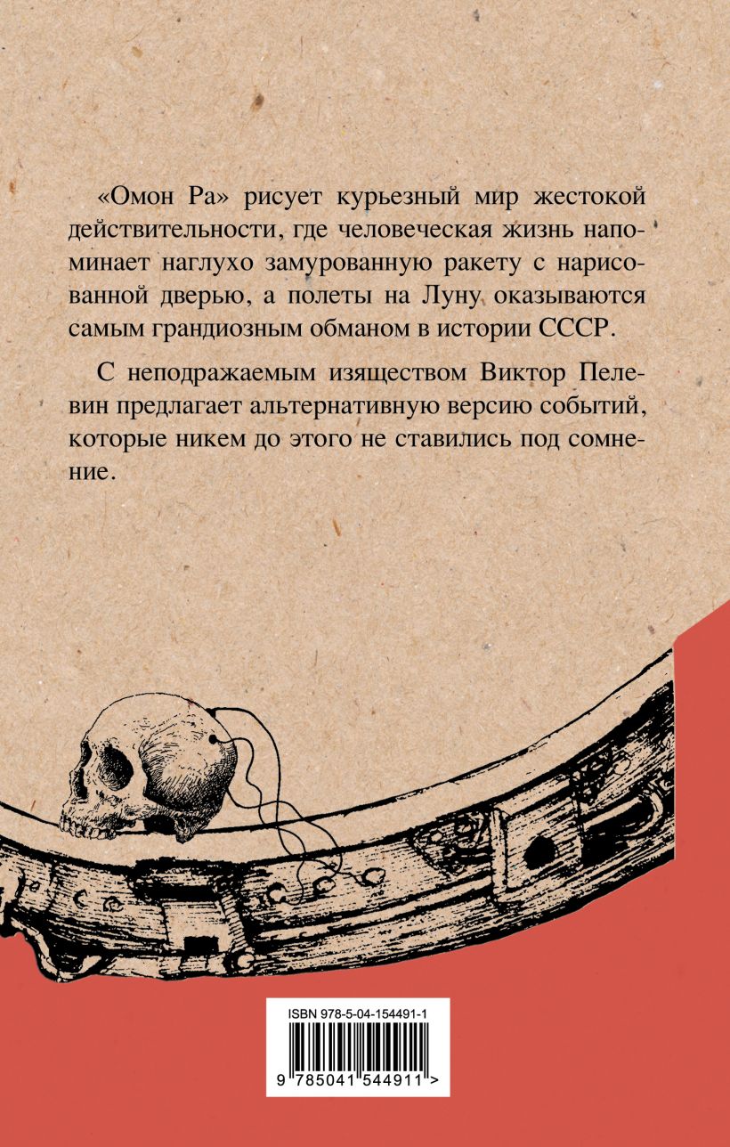 «Омон Ра» рисует курьезный мир жестокой действительности, где человеческая жизнь напоминает наглухо замурованную ракету с нарисованной дверью, а полеты на Луну оказываются самым грандиозным обманом в истории СССР. С неподражаемым изяществом Виктор Пелевин предлагает альтернативную версию событий, которые никем до этого не ставились под сомнение. С этого короткого романа рекомендуется начать знакомство с творчеством Виктора Пелевина — если до этого ни разу его не читали. Соединение египетской мифологии с мифологией СССР, ирония как фирменный прием и удивительная образность текста. Для этого издания обложку делал известный художник Алексей Клепнев, иллюстрация уникальна и сделана под лимитированную серию. Материал переплета похож на модный тайвек — плотная бумага с эффектом крафта. Приятен на ощупь, долговечен, очень долго выглядит хорошо, причем даже следы от использования не портят внешний вид.