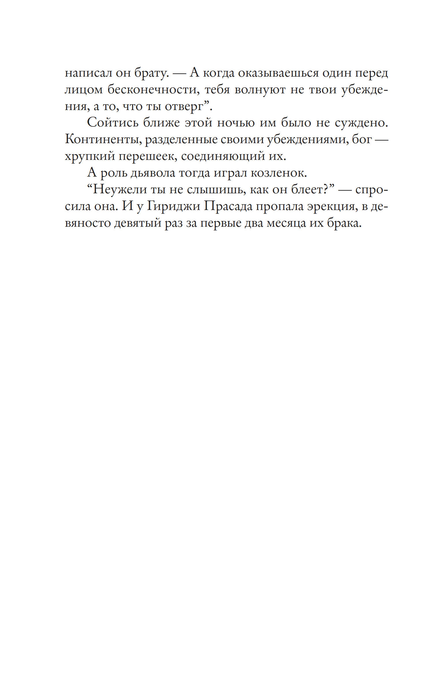 Завораживающий литературный дебют о поисках истинной близости и любви эпических масштабов. Действие романа охватывает едва ли не всю Индию, от Андаманских островов до гималайских заснеженных пиков. История следует за ученым, изучающим деревья, за его женой, общающейся с призраками, за революционером-романтмком, за благородным контрабандистом, за геологом, работающим на леднике, за восьмидесятилетними любовниками, за матерью, сражающейся за свободу сына, за печальным йети, тоскующим по общению, за черепахой, которая превращается сначала в лодку, а затем в женщину. Все они вместе — это жизнь, столь же необъятная, как сама Вселенная.