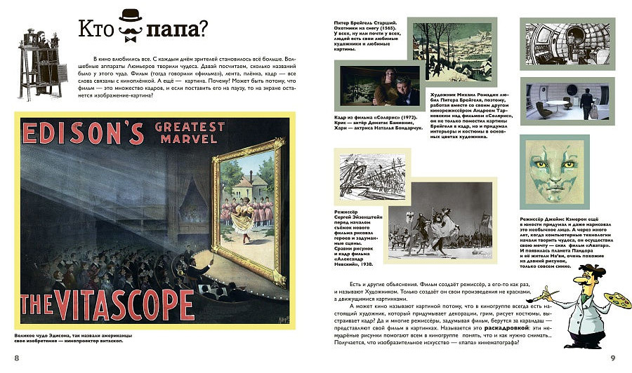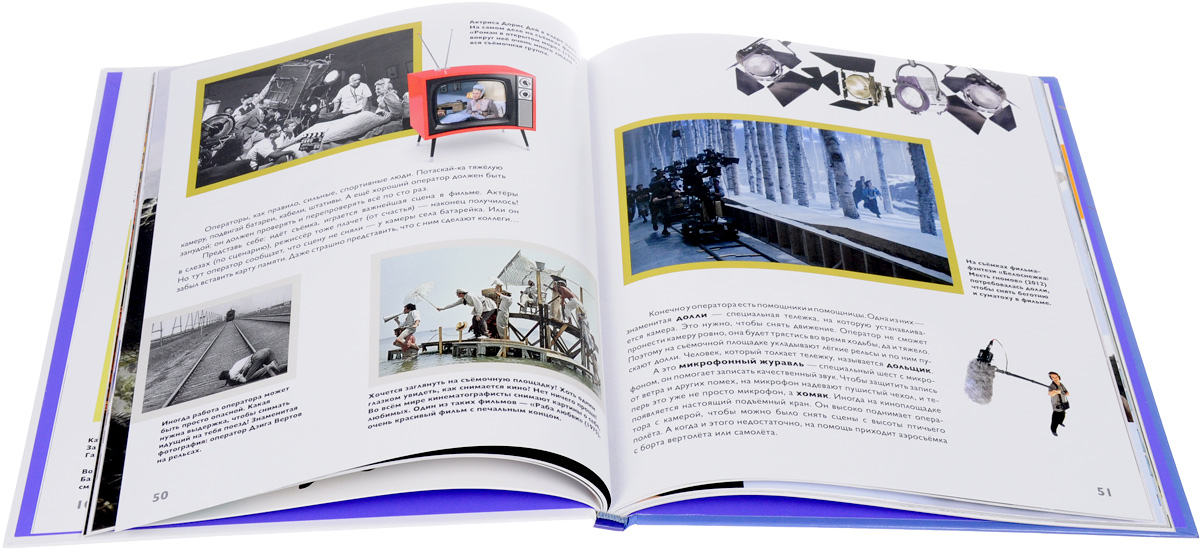«Кино» — девятая книга серии «Детям об искусстве» посвящена истории кинематографа, людям, которые «делают» кино, и тому, как снимают фильмы для детей и взрослых в наши дни.