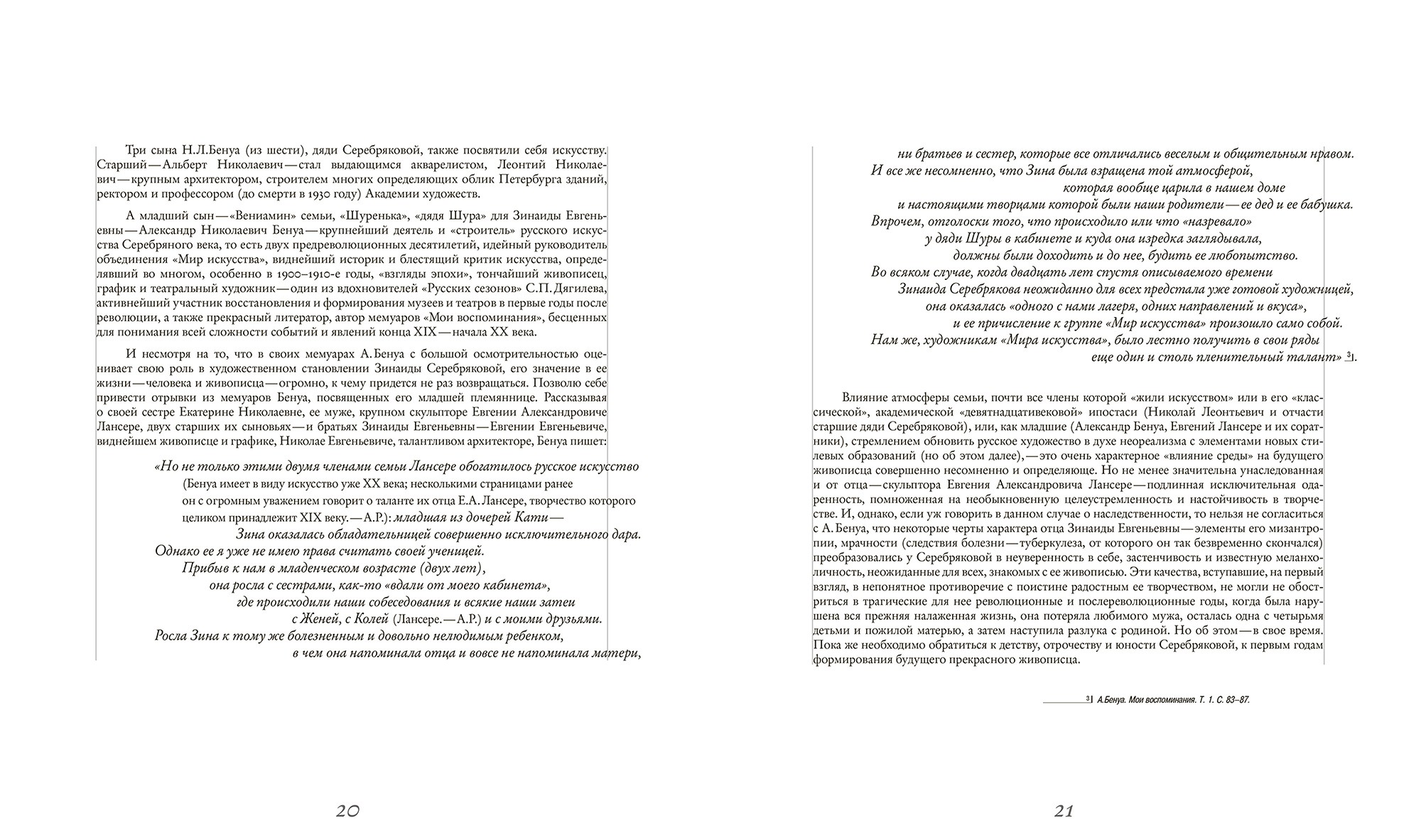 Иллюстрированная монография петербургского искусствоведа Аллы Александровны Русаковой посвящена трагической творческой и жизненной судьбе замечательной русской художнице Зинаиде Евгеньевны Серебряковой. Зинаида Серебрякова принадлежала к поколению мастеров, которые «строили» русское искусство ХХ века. Вынужденная покинуть Россию в 20-е годы, она более сорока лет жила во Франции, но всегда входила в тот круг художников русской эмиграции, творчество которых оставалось частью русской, а не французской культуры. В книге автор определяет место и значение творчества Зинаиды Серебряковой в русском искусстве ХХ века, стилевые и «видовые» особенности ее живописной манеры, а также сравнивает «русский» и «французский» периоды ее творчества. Книга содержит репродукции более 300 произведений, многие из которых публикуются впервые, и адресована как специалистам, так и широкому кругу любителей отечественной живописи.