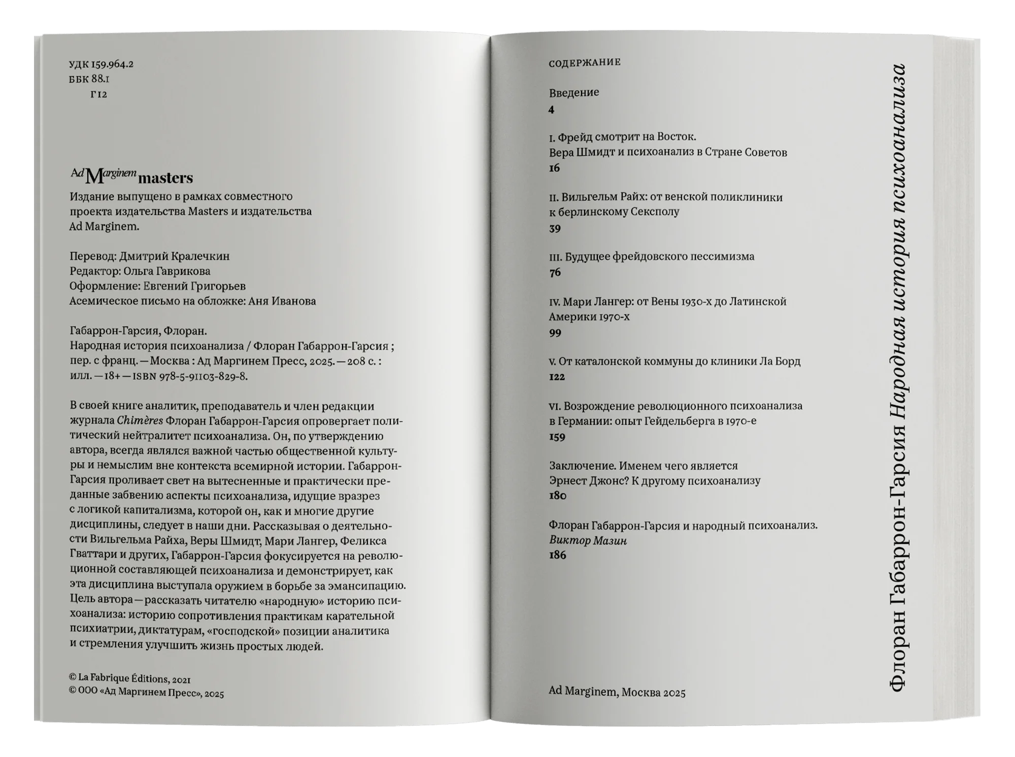 В своей книге аналитик, преподаватель и член редакции журнала Chimères Флоран Габаррон-Гарсия опровергает политический нейтралитет психоанализа. Он, по утверждению автора, всегда являлся важной частью общественной культуры и немыслим вне контекста всемирной истории. Габаррон-Гарсия проливает свет на вытесненные и практически преданные забвению аспекты психоанализа, идущие вразрез с логикой капитализма, которой он, как и многие другие дисциплины, следует в наши дни. Рассказывая о деятельности Вильгельма Райха, Веры Шмидт, Мари Лангер, Феликса Гваттари и других, Габаррон-Гарсия фокусируется на революционной составляющей психоанализа и демонстрирует, как эта дисциплина выступала оружием в борьбе за эмансипацию. Цель автора — рассказать читателю «народную» историю психоанализа: историю сопротивления практикам карательной психиатрии, диктатурам, «господской» позиции аналитика и стремления улучшить жизнь простых людей.