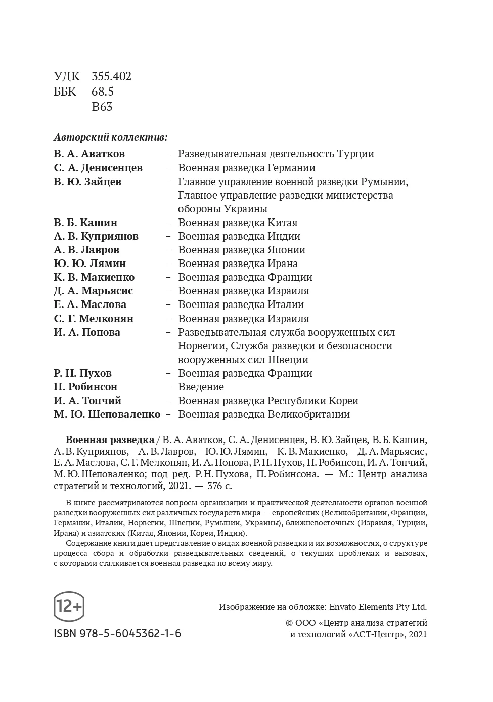 В книге рассматриваются различные виды разведки, процесс сбора и обработки разведывательных данных, особенности организации разведывательных служб в армиях разных стран, а также текущие проблемы и вызовы, с которыми сталкивается военная разведка во всём мире.