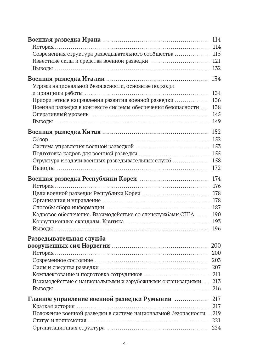 В книге есть отдельные главы, посвящённые возможностям военной разведки в армиях разных стран. Эти страны сильно отличаются по своей военной мощи: от крупных и влиятельных государств, таких как Китайская Народная Республика, до стран среднего уровня, например, Турции, и небольших стран, например, Румынии.