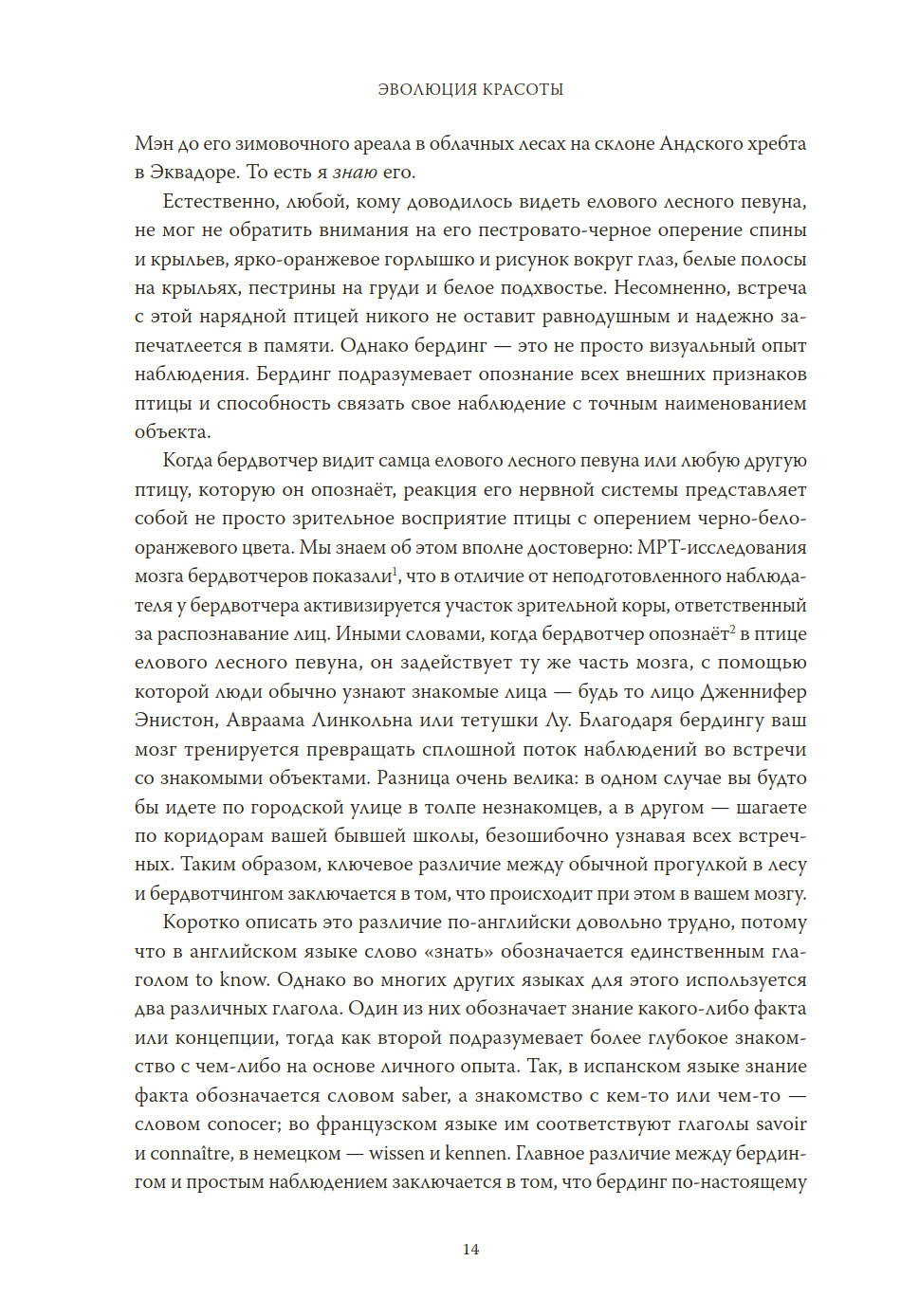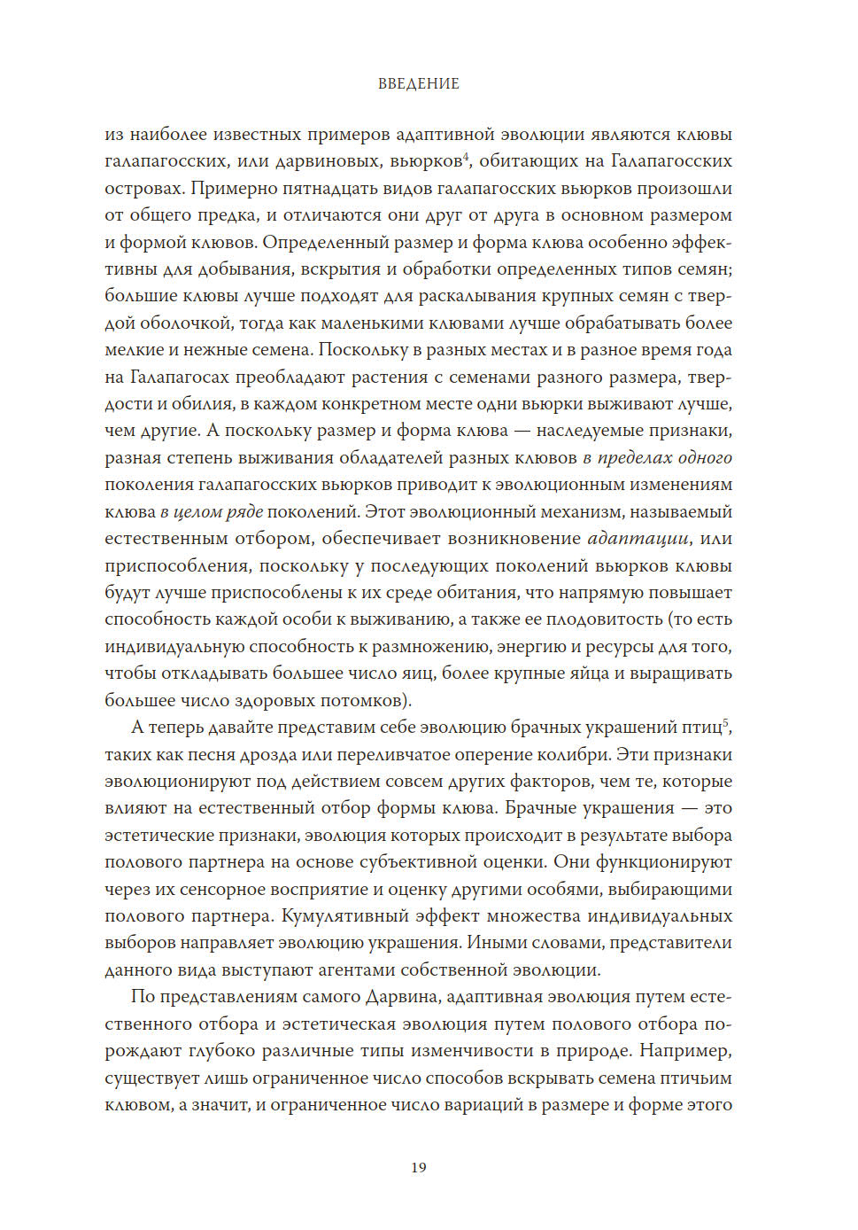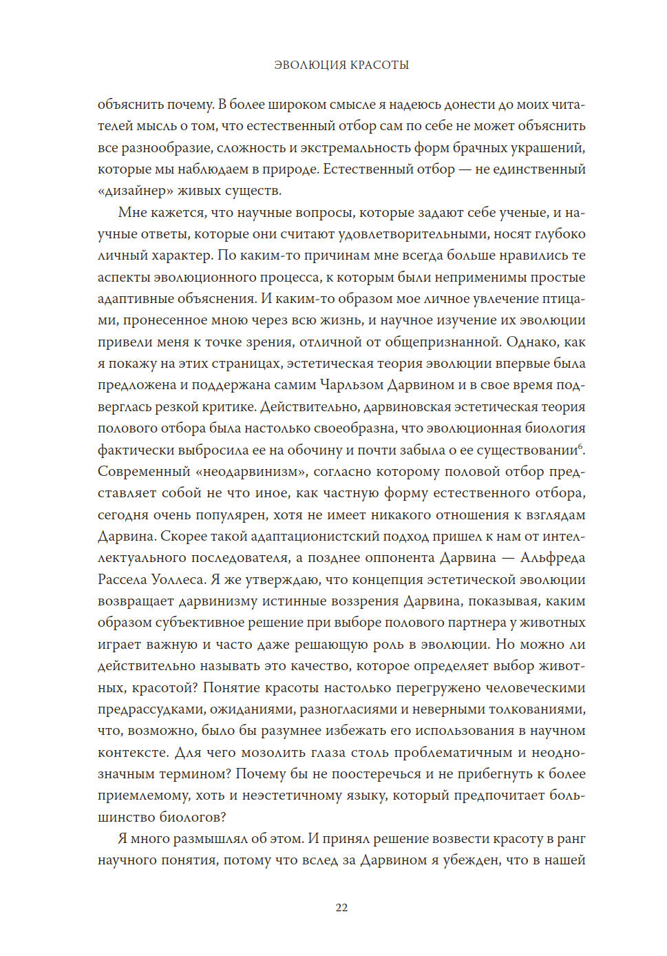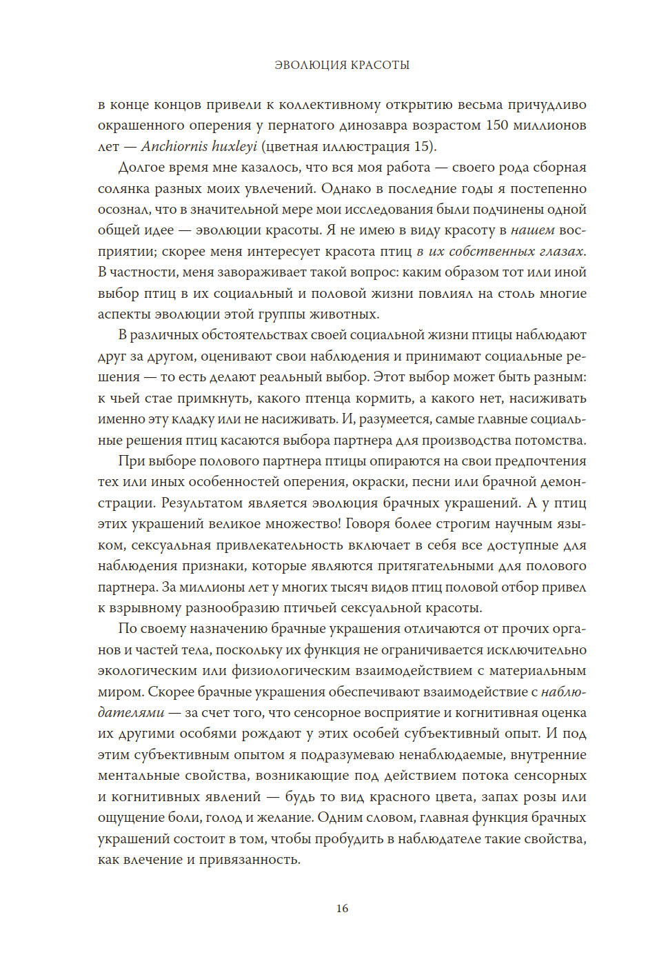 Тот же эстетический принцип вносит свою лепту в эволюцию всех живых существ, включая человека. Привлекательный признак формируется поколение за поколением и в итоге становится определяющим для вида. В книге описаны десятки примеров эволюционных изменений, обусловленных, судя по всему, исключительно тягой живых существ к прекрасному, будь то визуальные, слуховые или тактильные ощущения. Также на страницах вы найдете цветные иллюстрации из мира дикой природы.
