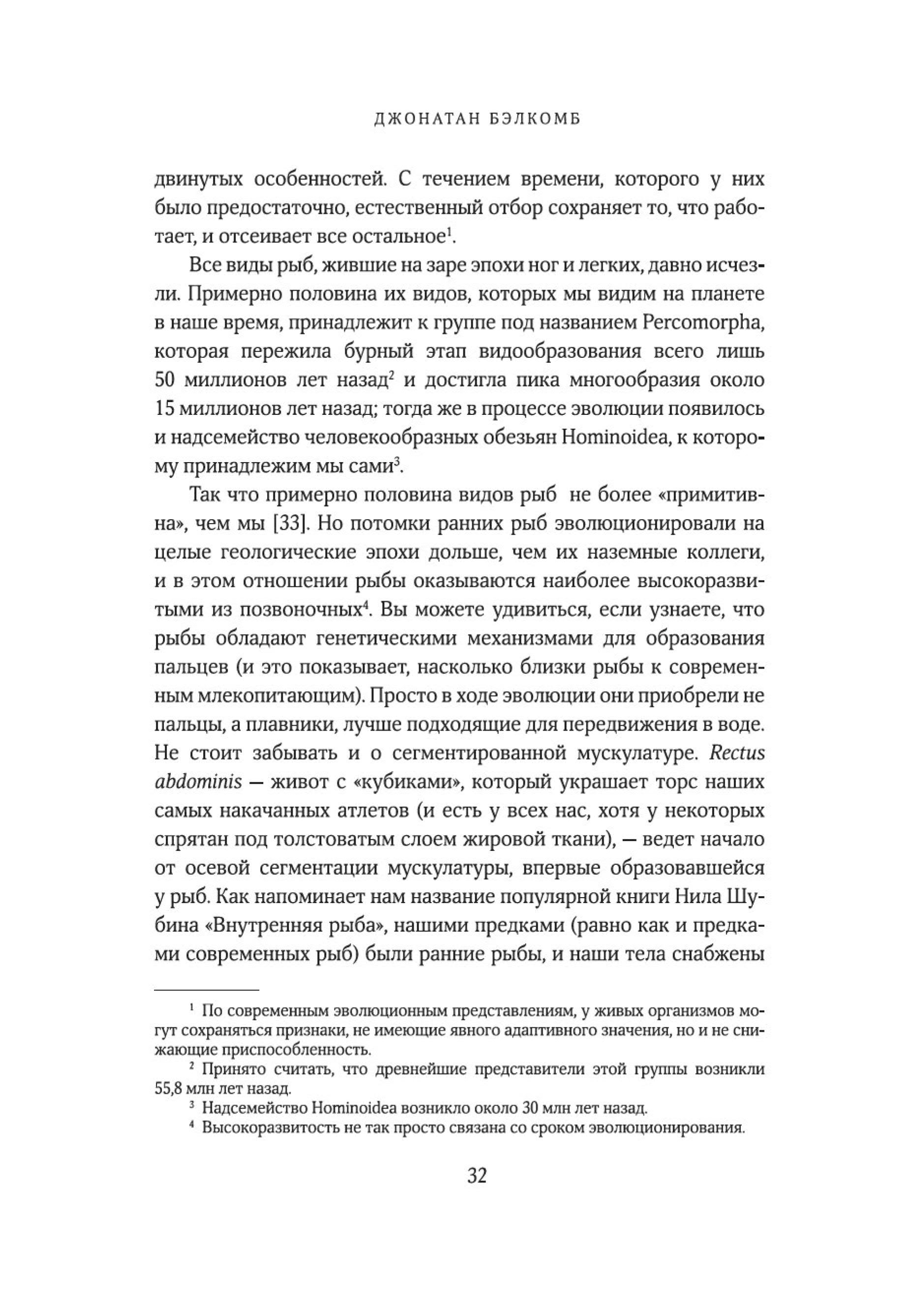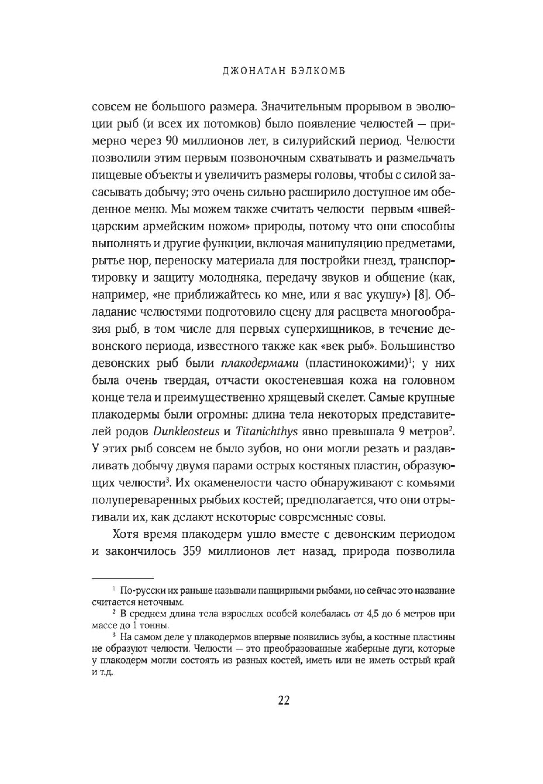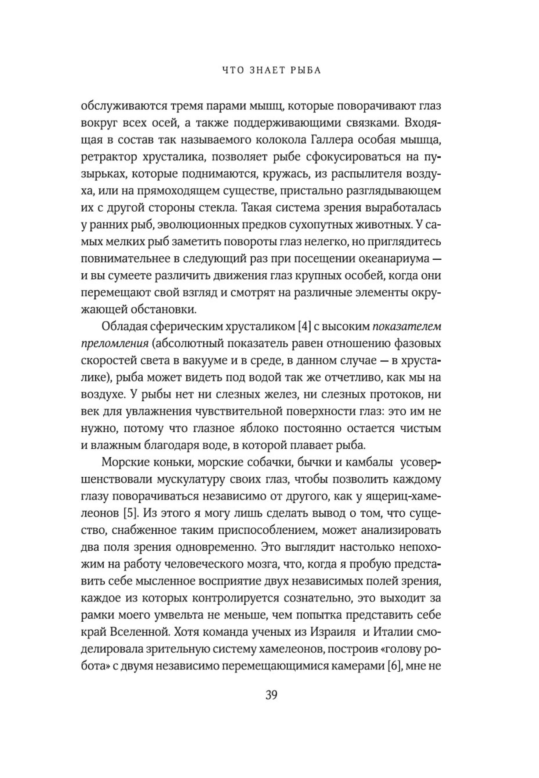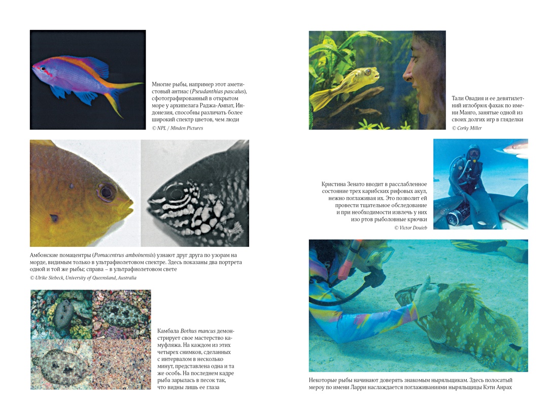 «Рыбы — не просто живые существа: это индивидуумы, обладающие личностью и строящие отношения с другими. Они могут учиться, воспринимать информацию и изобретать новое, успокаивать друг друга и строить планы на будущее. Они способны получать удовольствие, находиться в игривом настроении, ощущать страх, боль и радость. Это не просто умные, но и сознающие, общительные, социальные, способные использовать инструменты коммуникации, добродетельные и даже беспринципные существа. Цель моей книги — позволить им высказаться так, как было невозможно в прошлом. Благодаря значительным достижениям в области этологии, социобиологии, нейробиологии и экологии мы можем лучше понять, на что похож мир для самих рыб, как они воспринимают его, чувствуют и познают на собственном опыте».