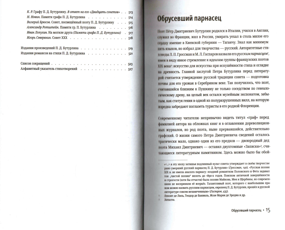 Издание представляет в полном объёме поэтическое наследие графа Петра Дмитриевича Бутурлина (1859-1896), поэта и дипломата, чьё творчество во многом предвосхитило поиски нового поэтического языка поэтами Серебряного века, в частности повлияло на развитие формы русского сонета.