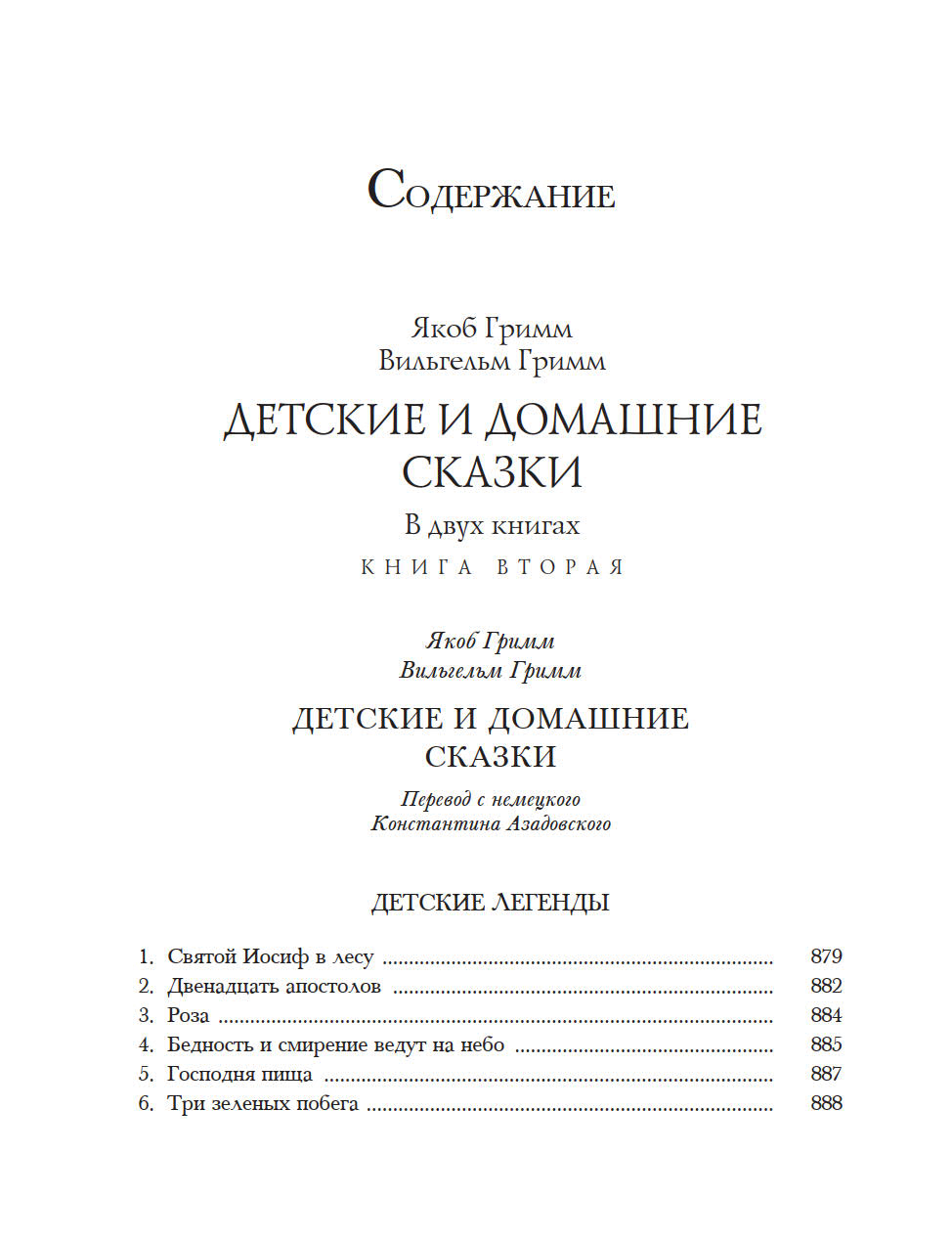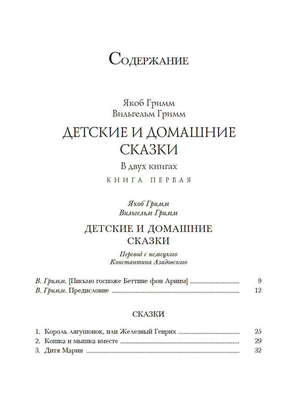 Перевод, представленный в этом издании, — результат многолетнего труда одного из лучших отечественных переводчиков Константина Марковича Азадовского, начатого ещё в 1970-е годы. Ему удалось сохранить свежесть и живость, великую простоту, характерные для знаменитых сказок, передать уникальный стиль, который даже получил особое название — «гриммовский».