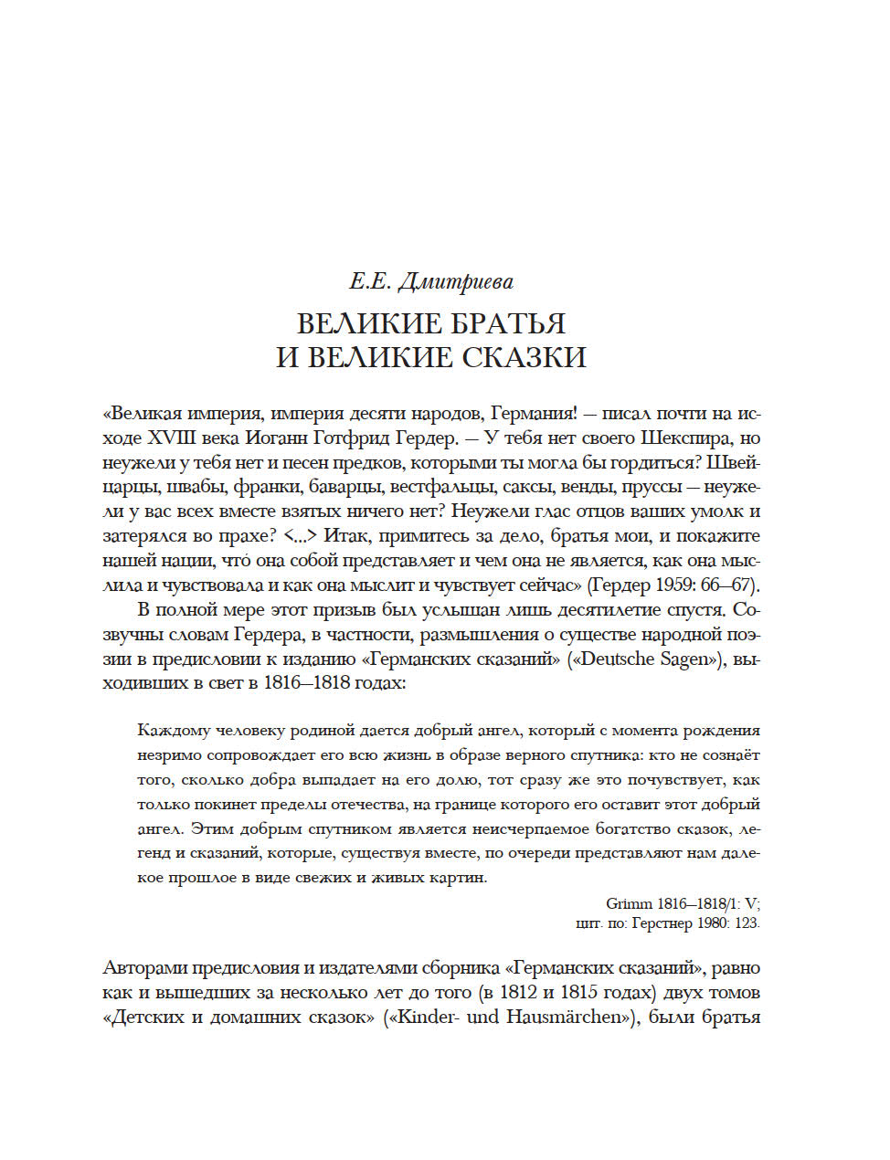 Статья известного филолога-германиста Екатерины Евгеньевны Дмитриевой, посвящённая жизни и творчеству братьев, и подробный комментарий, прослеживающий путь каждой сказки до её глубинных корней, вызовут безусловный интерес.
