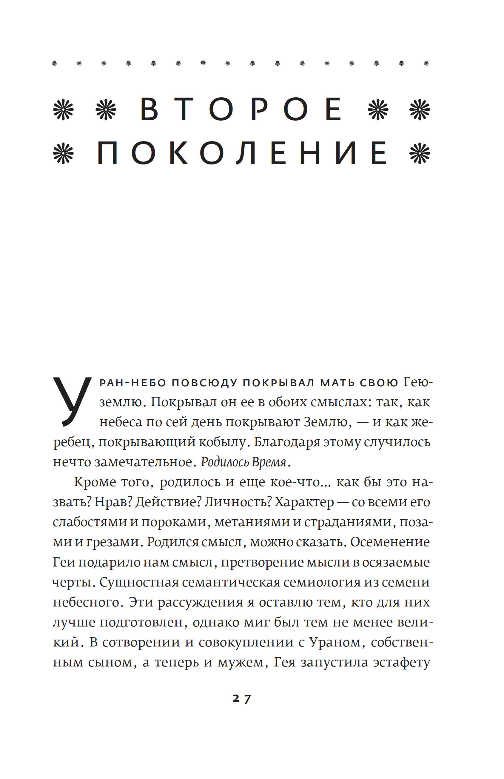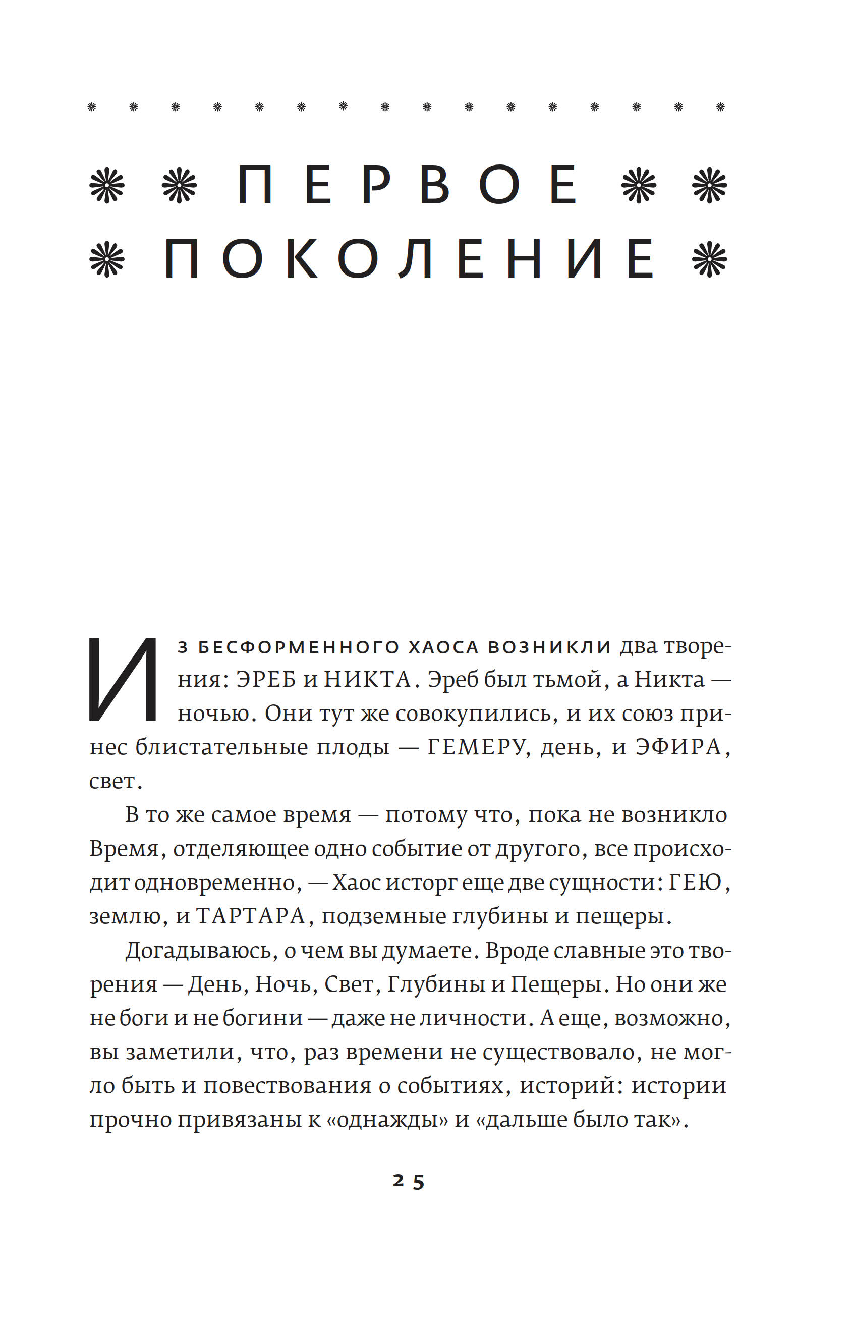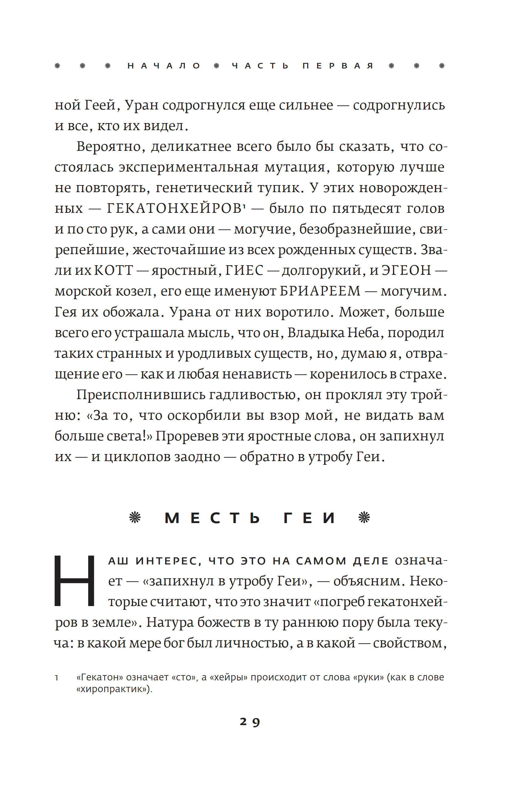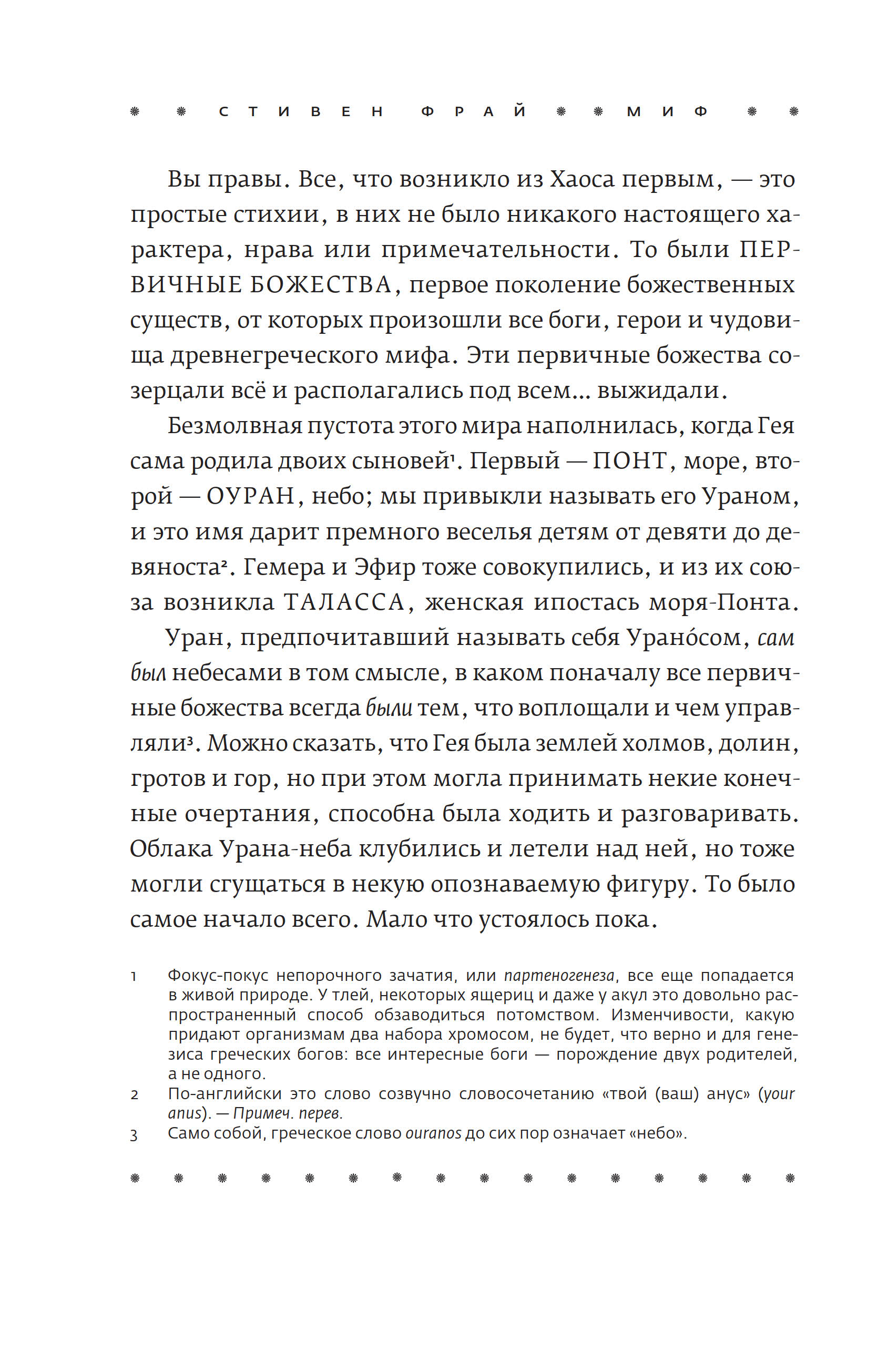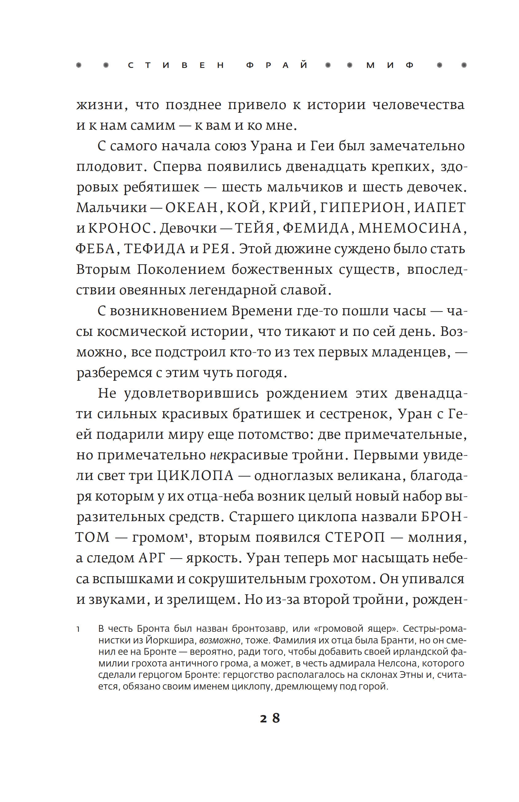 Кто-то спросит, дескать, зачем нам очередное переложение греческих мифов и сказаний? Во-первых, старые истории живут в пересказах, то есть не каменеют и не превращаются в догму. Во-вторых, греческая мифология богата на материал, который вплоть до второй половины ХХ века даже у воспевателей античности — художников, скульпторов, поэтов — порой вызывал девичью стыдливость. Сейчас наконец пришло время по-взрослому, с интересом и здорoво воспринимать мифы древних греков — без купюр и отведенных в сторону глаз. И кому, как не Стивену Фраю, сделать это? В-третьих, Фрай вовсе не пытается толковать пересказываемые им истории. И не потому, что у него нет мнения о них, — он просто честно пересказывает, а копаться в смыслах предоставляет антропологам и философам. В-четвертых, да, все эти сюжеты можно найти в сотнях книг, посвященных Древней Греции. Но Фрай заново составляет из них букет, его книга — это своего рода икебана. На цветы, ветки, палки и вазы можно глядеть в цветочном магазине по отдельности, но человечество по-прежнему составляет и покупает букеты. Читать эту книгу, помимо очевидной развлекательной и отдыхательной ценности, стоит и ради того, чтобы стряхнуть пыль с детских воспоминаний о Куне и его «Легендах и мифах Древней Греции», привести в порядок фамильные древа богов и героев, наверняка давно перепутавшиеся у вас в голове, а также вспомнить мифогенную географию Греции: где что находилось, кто куда бегал и где прятался. Книга Фрая — это прекрасный способ попасть в Древнюю Грецию, а заодно и как следует повеселиться: стиль Фрая — неизменная гарантия настоящего читательского приключения.