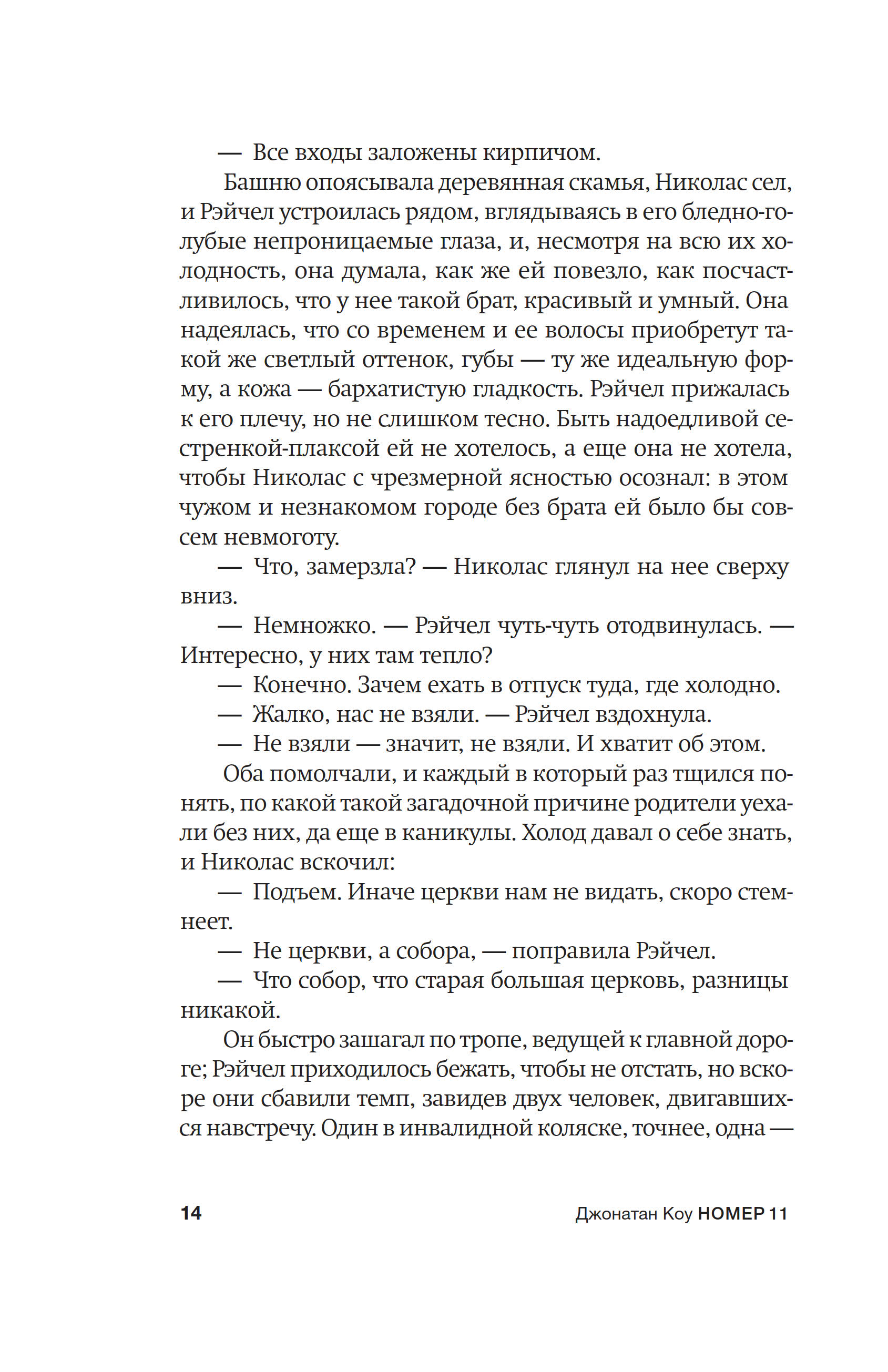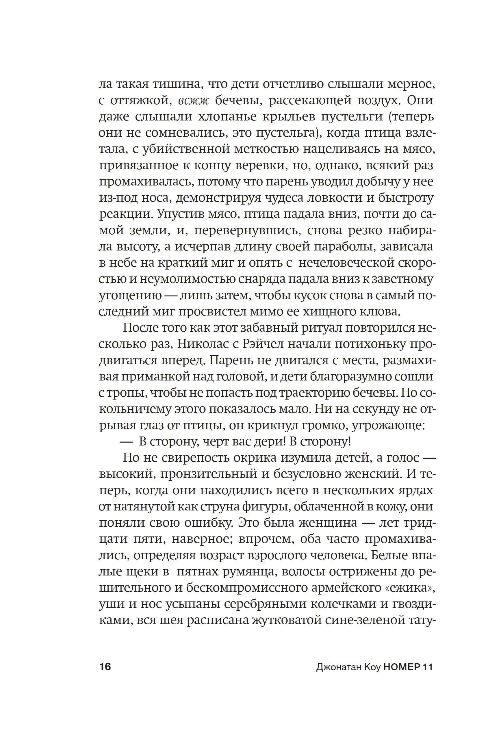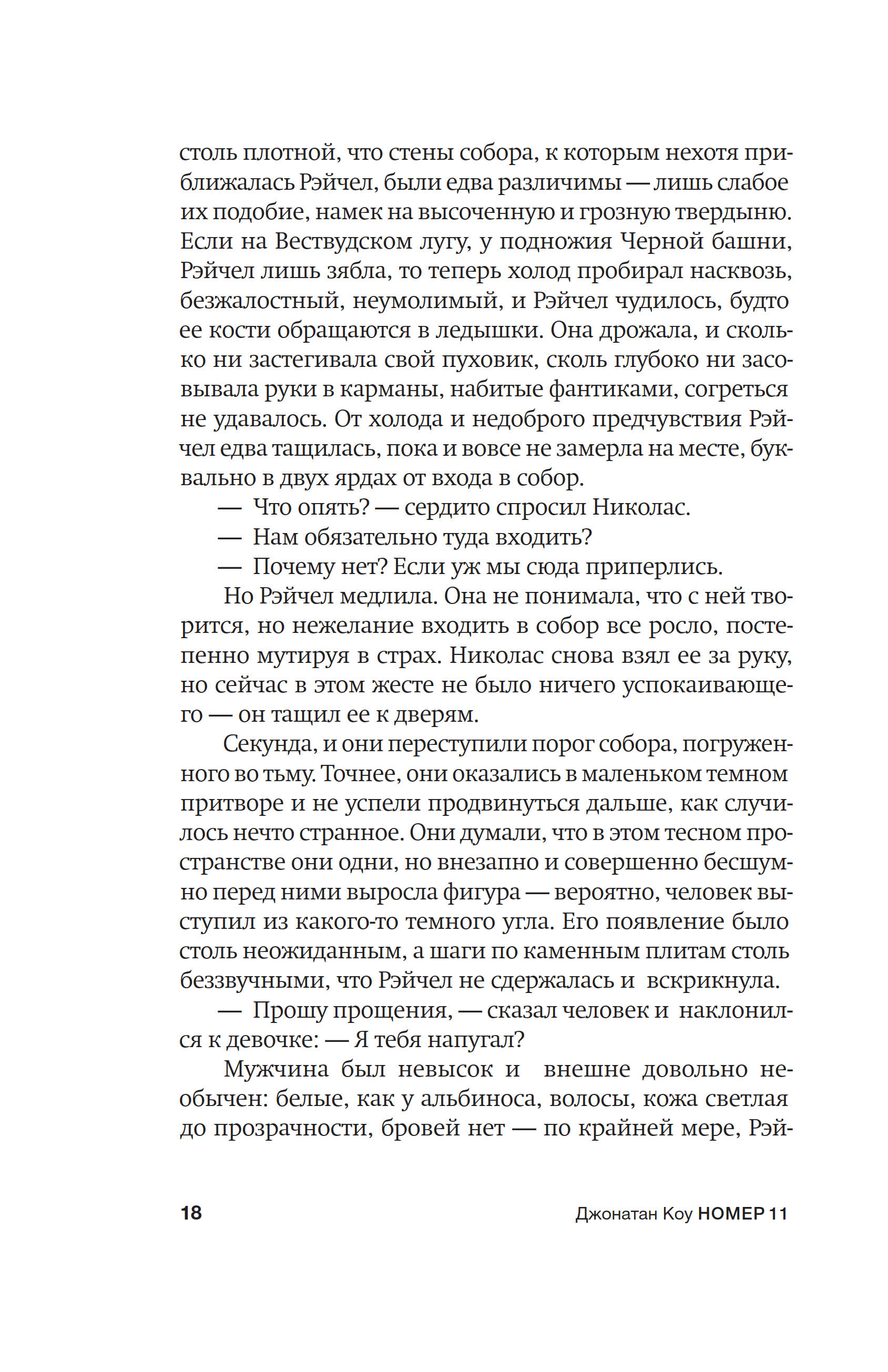 Это роман о сотнях крошечных связей, что пронизывают общество, соединяют миры отдельных людей и определяют всех нас. Это роман о вине и невиновности и о том, что мы живем во времена, когда больше не осталось невиновных. Это роман о последнем великом сражении между политикой и комедией, и нам лишь остается надеяться, что комедия победит. Это роман о том, как легко сделать из всех нас дураков. Это новый роман Джонатана Коу, который лучше всех умеет в истинном свете показать мир, в котором мы живем. Однажды маленькая Рэйчел гостила у бабушки и увидела странную Птичью Женщину. А в свой следующий приезд нашла в лесу одну зловещую штуковину. А потом Рэйчел выросла и стала взрослой. И начала встречать куда более странных людей и натыкаться на куда более зловещие вещи. Обычная девушка оказалась в самом центре паутины. Но паутины чего? И чьей паутины?.. Притягательный, загадочный, умный, безжалостно насмешливый новый роман, вне всякого сомнения, одного из самых-самых современных писателей. «Номер 11» вырос из двух любимых многими романов Джонатана Коу — «Дома сна» и «Какое надувательство!». Это не книга, это любовь.
