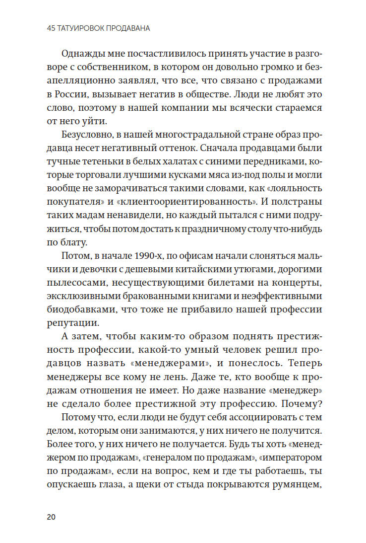 Новые 45 татуировок из продавцового прошлого Максима Батырева — как в роли рядового менеджера по продажам, так и в роли руководителя: успехи, неудачи, выводы из них.