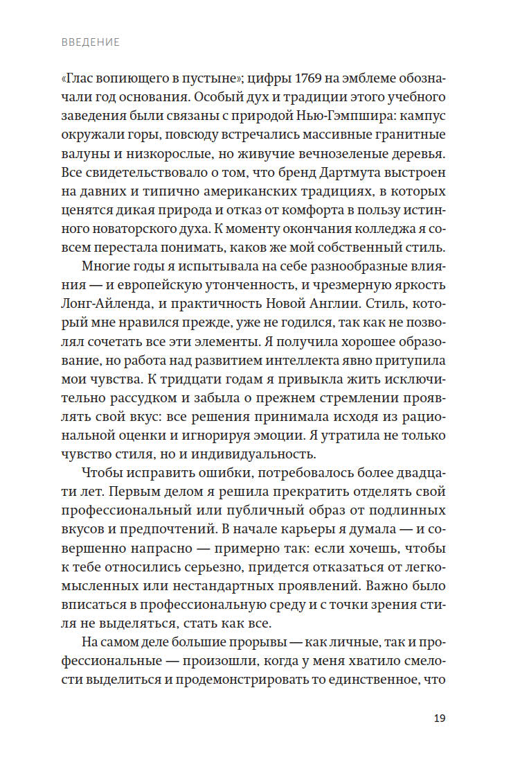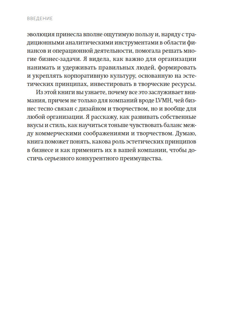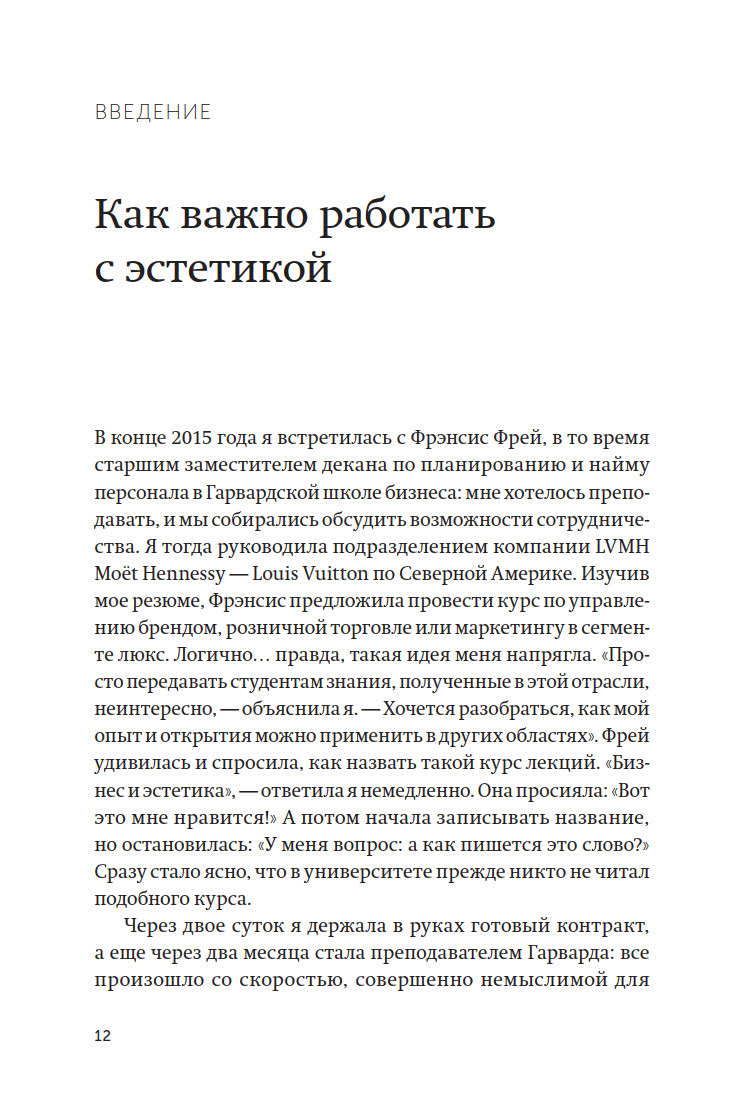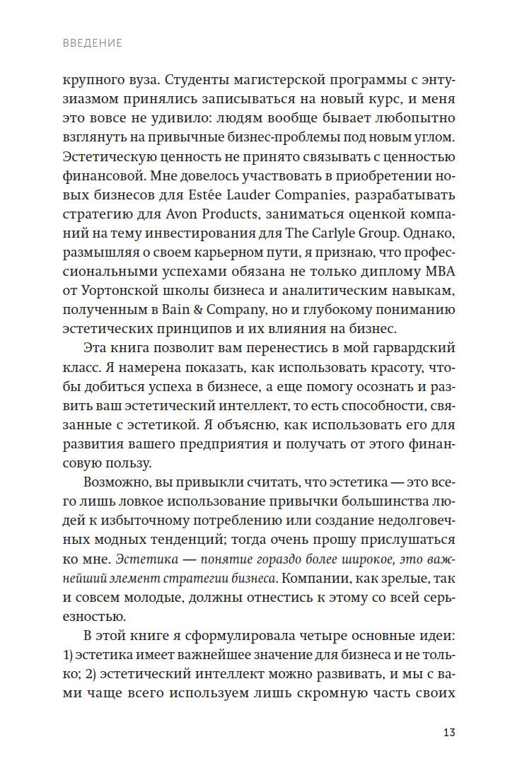 Эстетическую ценность не принято связывать с ценностью финансовой. Однако, размышляя о своем карьерном пути — а я в свое время участвовала в покупке новых бизнесов для Estee Lauder Companies, разрабатывала стратегию для Avon Products, занималась оценкой компаний для The Carlyle Group, — я стала понимать, что профессиональными успехами обязана совсем не только диплому МВА из Уортонской школы бизнеса и аналитическим навыкам, полученным мной в Bain & Company, но и глубокому пониманию эстетических принципов и их влияния на бизнес.