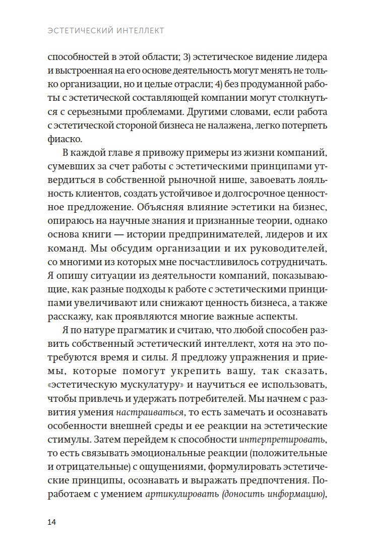 Моя цель — показать вам, как использовать эстетику, чтобы добиться успеха в бизнесе. А еще я помогу вам осознать и развить ваш собственный эстетический интеллект, то есть способности, связанные с эстетикой. Я покажу, как использовать эстетический интеллект для развития бизнеса и получать от этого финансовую отдачу.
