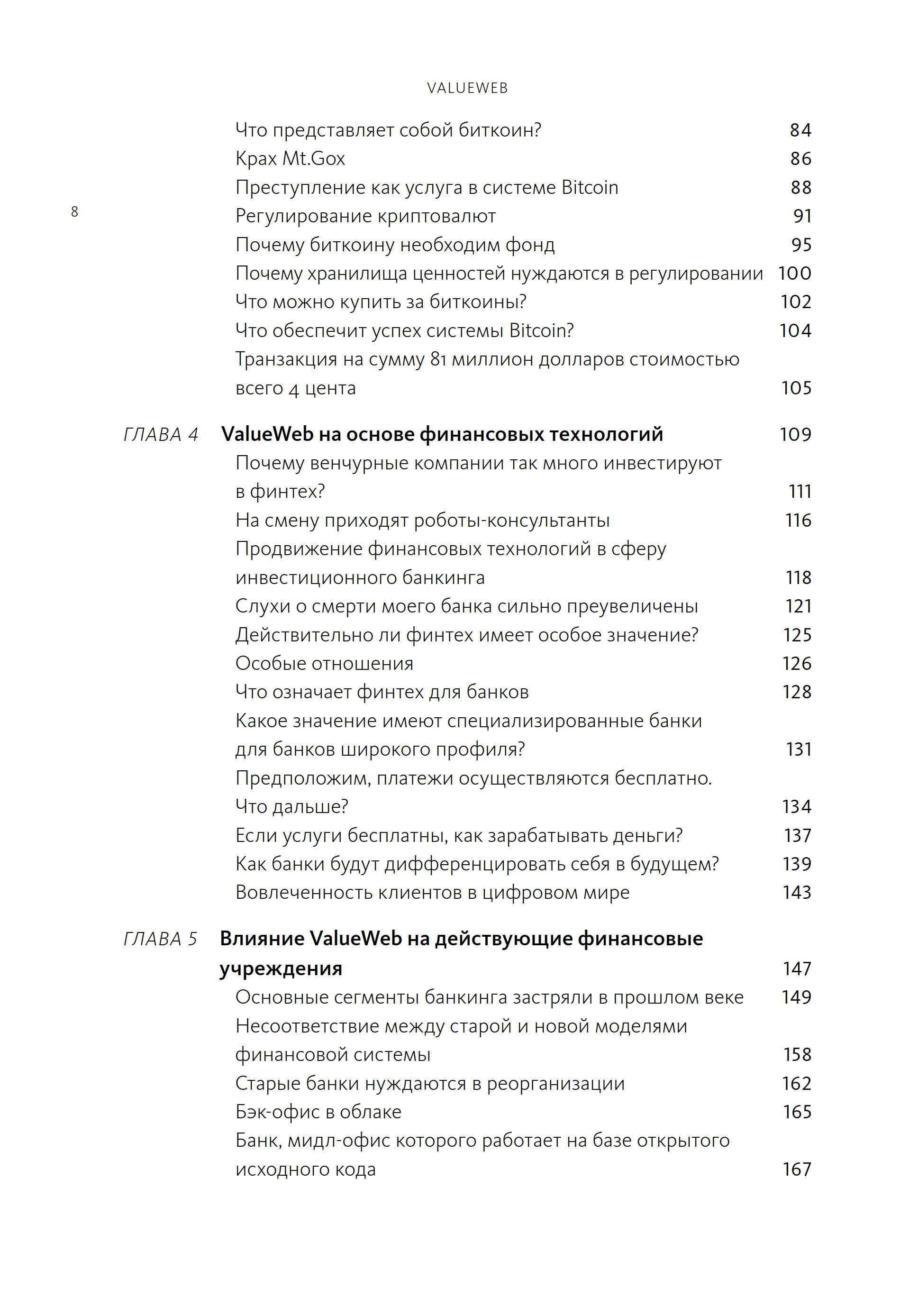 В книге обсуждается роль FinTech, новой индустрии, сфокусированной на интеграции финансов и технологий для построения сети ValueWeb с помощью мобильной передачи данных, цифровой валюты и технологии блокчейн.