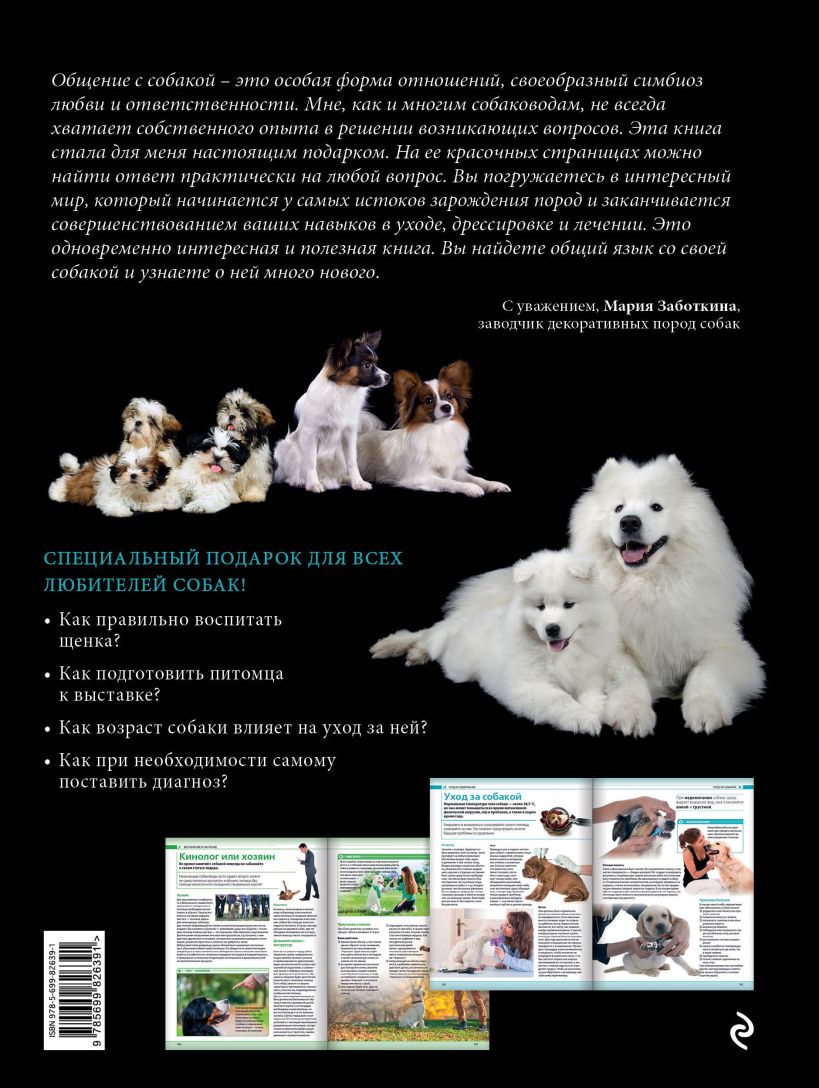 Помимо практических советов, книга богата красивыми иллюстрациями и выделяется качественной печатью. Это позволит вам не только сделать книгу своим незаменимым помощником, но и подарить её своим друзьям-собаководам.