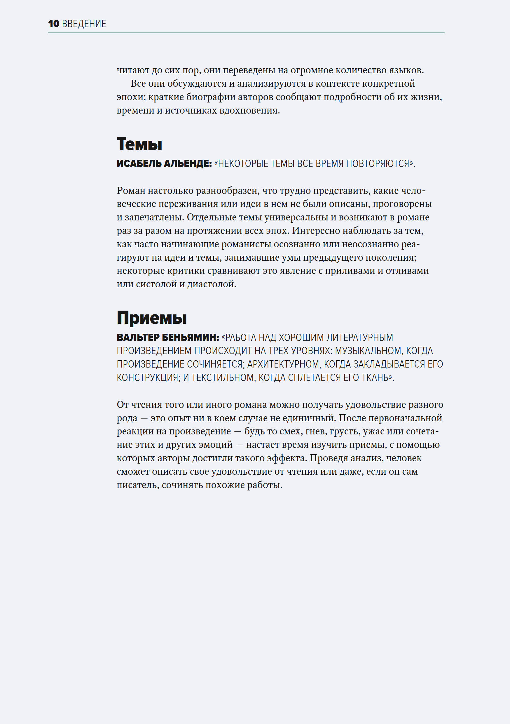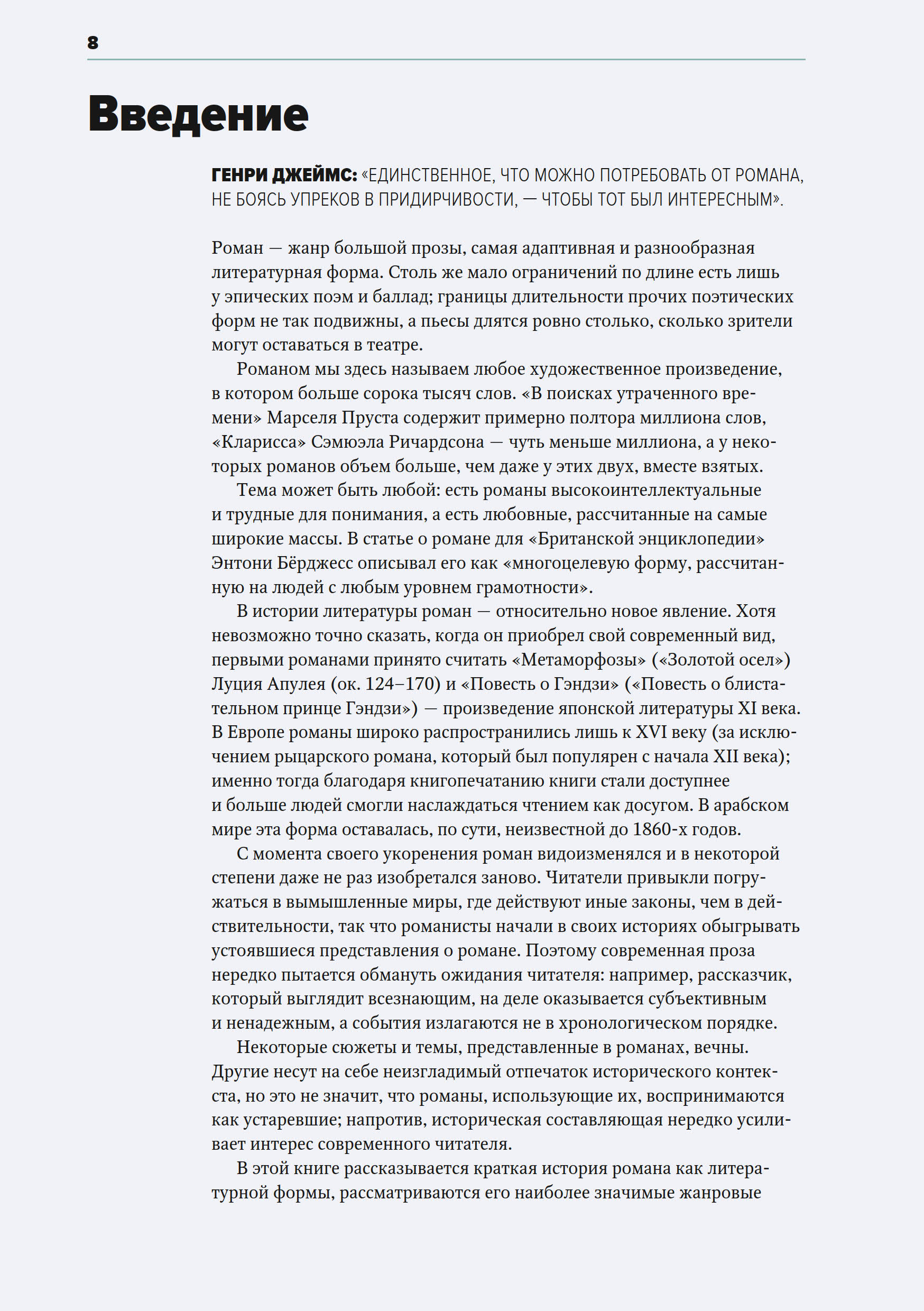 Структура книги позволяет читателю легко перемещаться по основным темам, жанрам и литературным приемам и знакомиться с историей развития романа.
