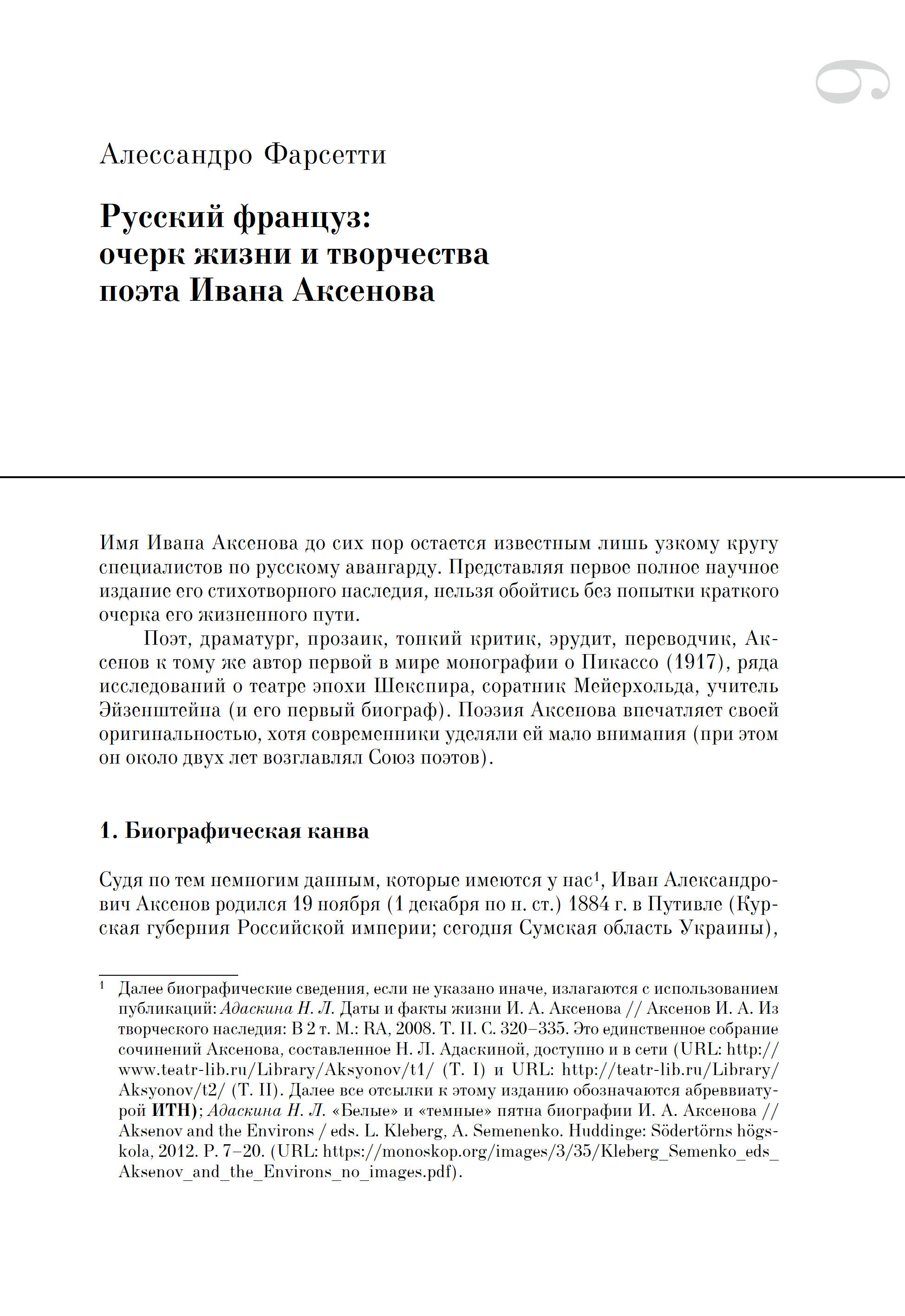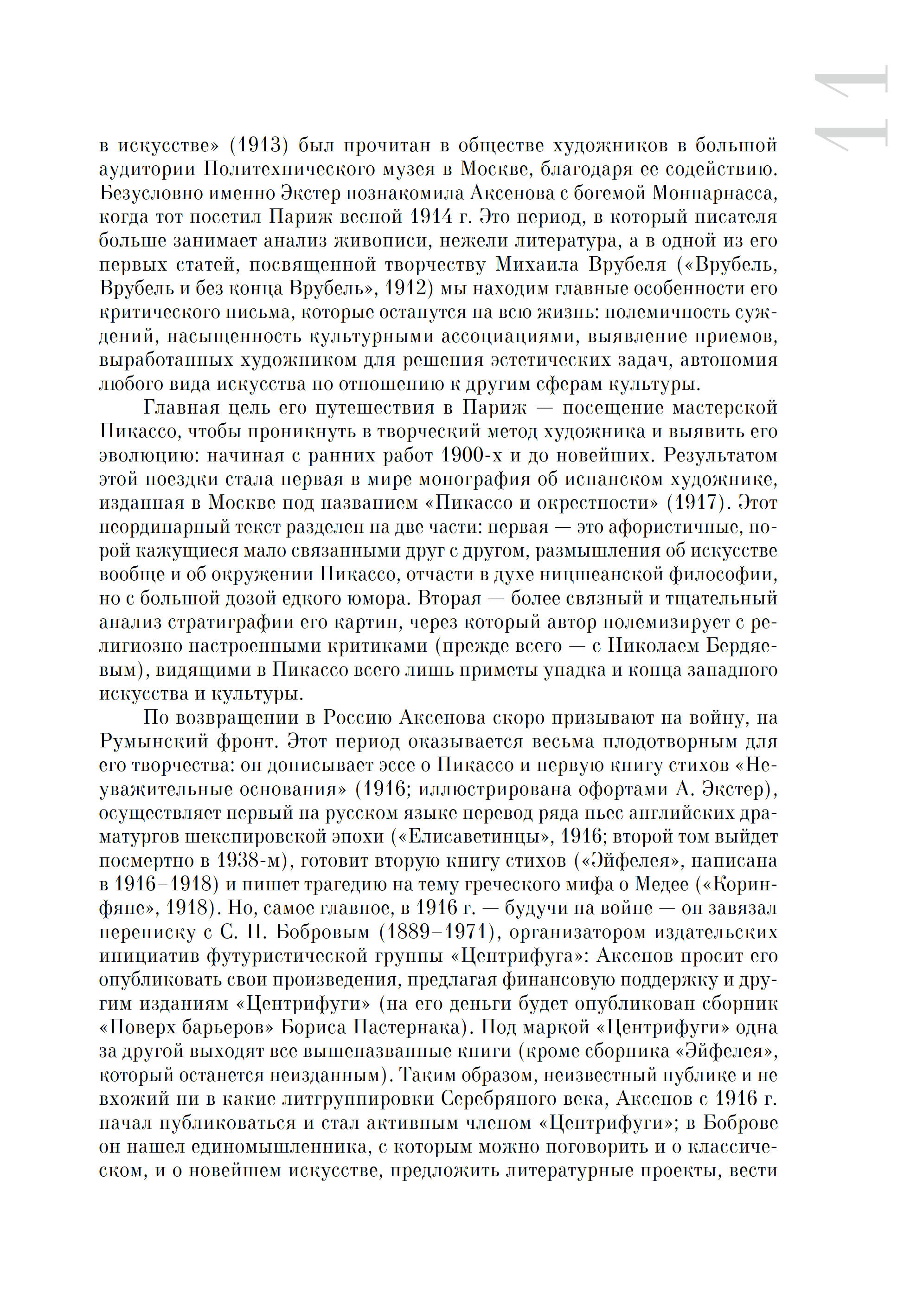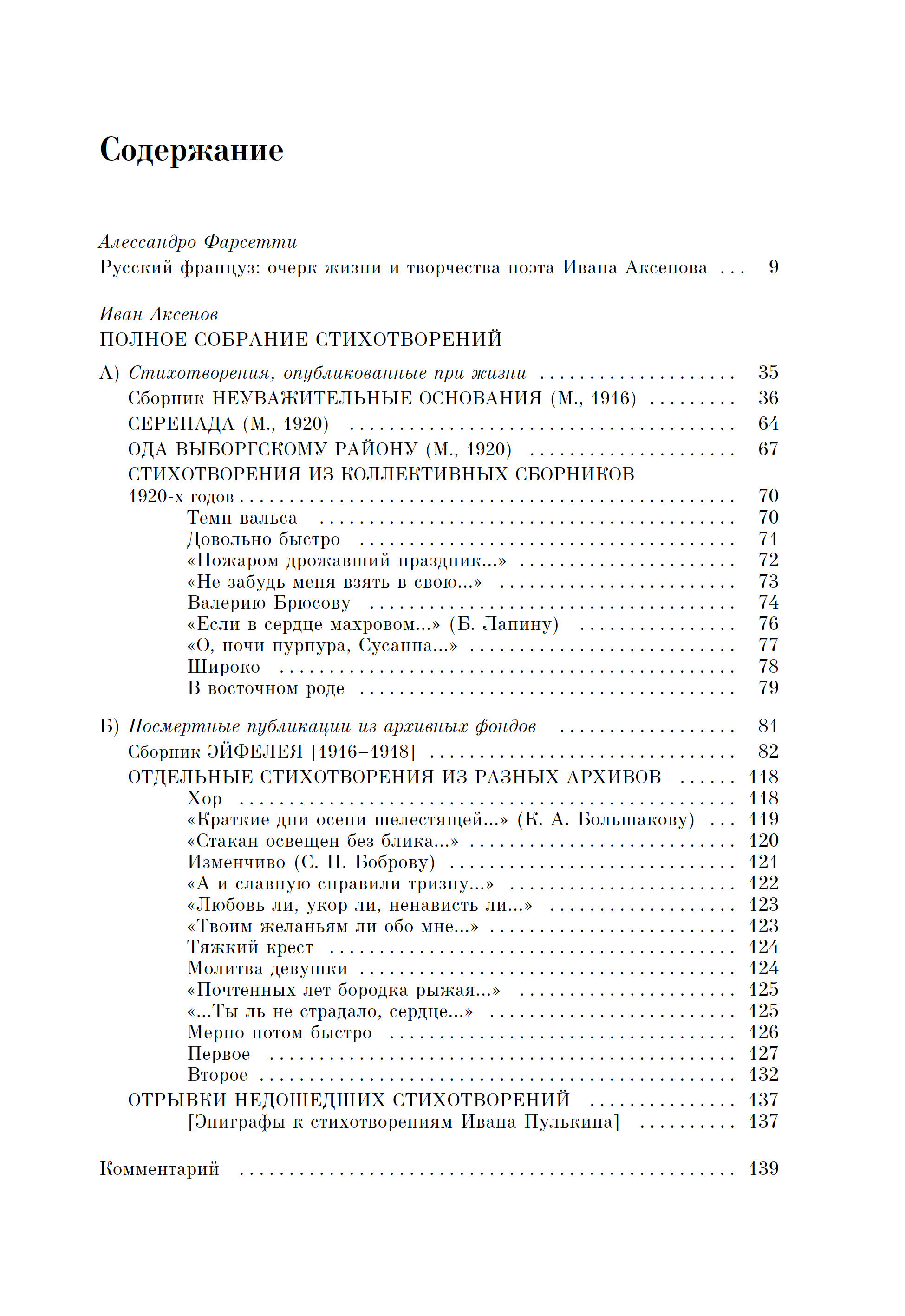Иван Аксенов (1884–1935) — одна из ярких фигур русского авангарда. Тонкий критик, эрудит, переводчик, он автор первой в мире монографии о Пикассо (1917), ряда исследований о театре эпохи Шекспира, соратник Мейерхольда, учитель Эйзенштейна (и его первый биограф). Вместе с тем Аксенов был и драматургом, и прозаиком, и поэтом: его стихотворчество впечатляет своей оригинальностью, хотя современники уделяли ему мало внимания; при этом он около двух лет возглавлял Союз поэтов. После книги стихов «Неуважительные основания» (1916), вышедшей под маркой футуристической «Центрифуги», ему удалось издать только несколько отдельных стихотворений. Рукопись второй книги стихов «Эйфелея» (1916–1918), содержащей 30 од Эйфелевой башне, без малого сто лет оставалась в архивах. Проект третьей книги стихов «Оды и танцы» (начало 1920-х) не был осуществлен. Настоящая публикция — первое научное издание поэзии Аксенова. Все тексты сопровождены подробным комментарием. При этом целый ряд текстов и документов впервые вводятся в оборот, а редчайшее издание «Оды Выборгскому району» (1920), оформленное художником Георгием Ечеистовым и сохранившееся в семейном архиве, воспроизводится факсимильно. Визуальный ряд насчитывает 100 редких иллюстраций, в т. ч. из коллекции Косаки (Музей современного искусства в Салониках) и частных архивов.