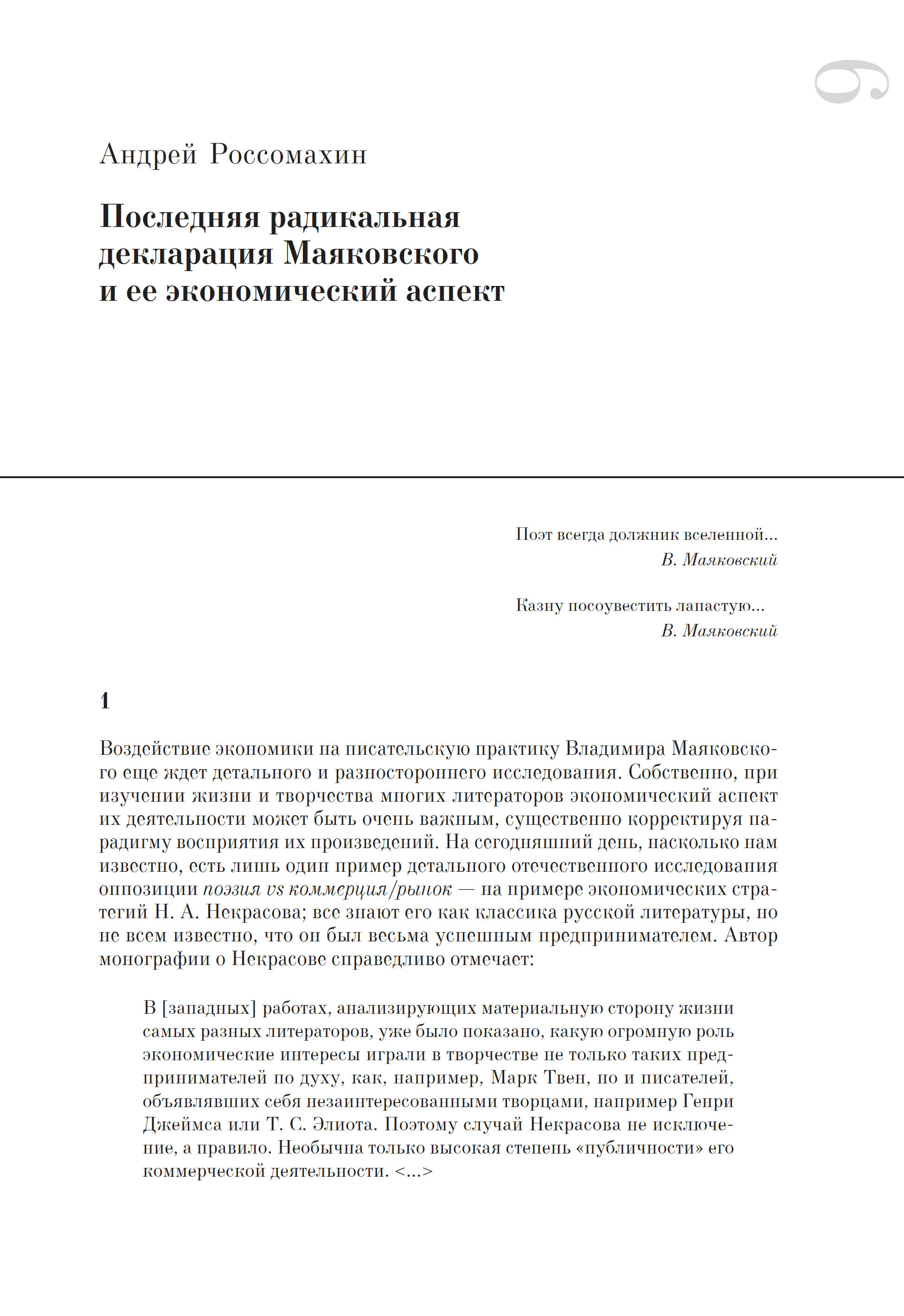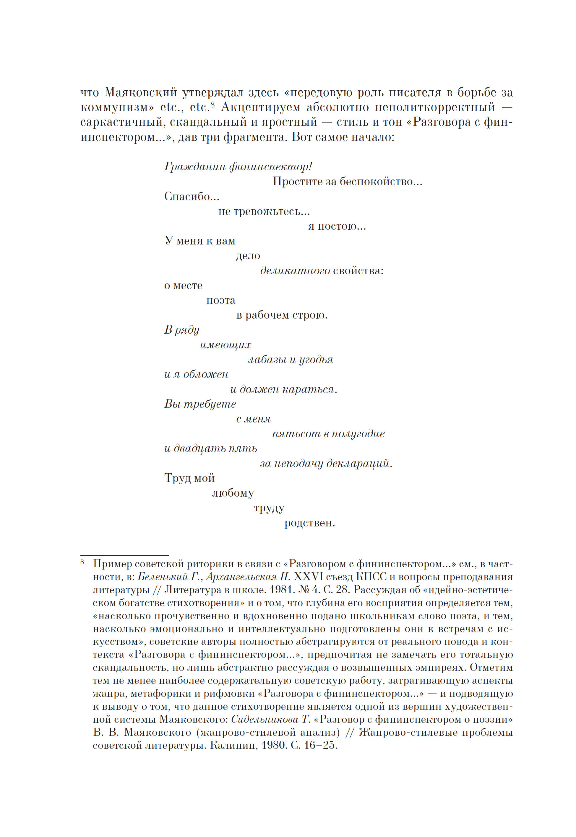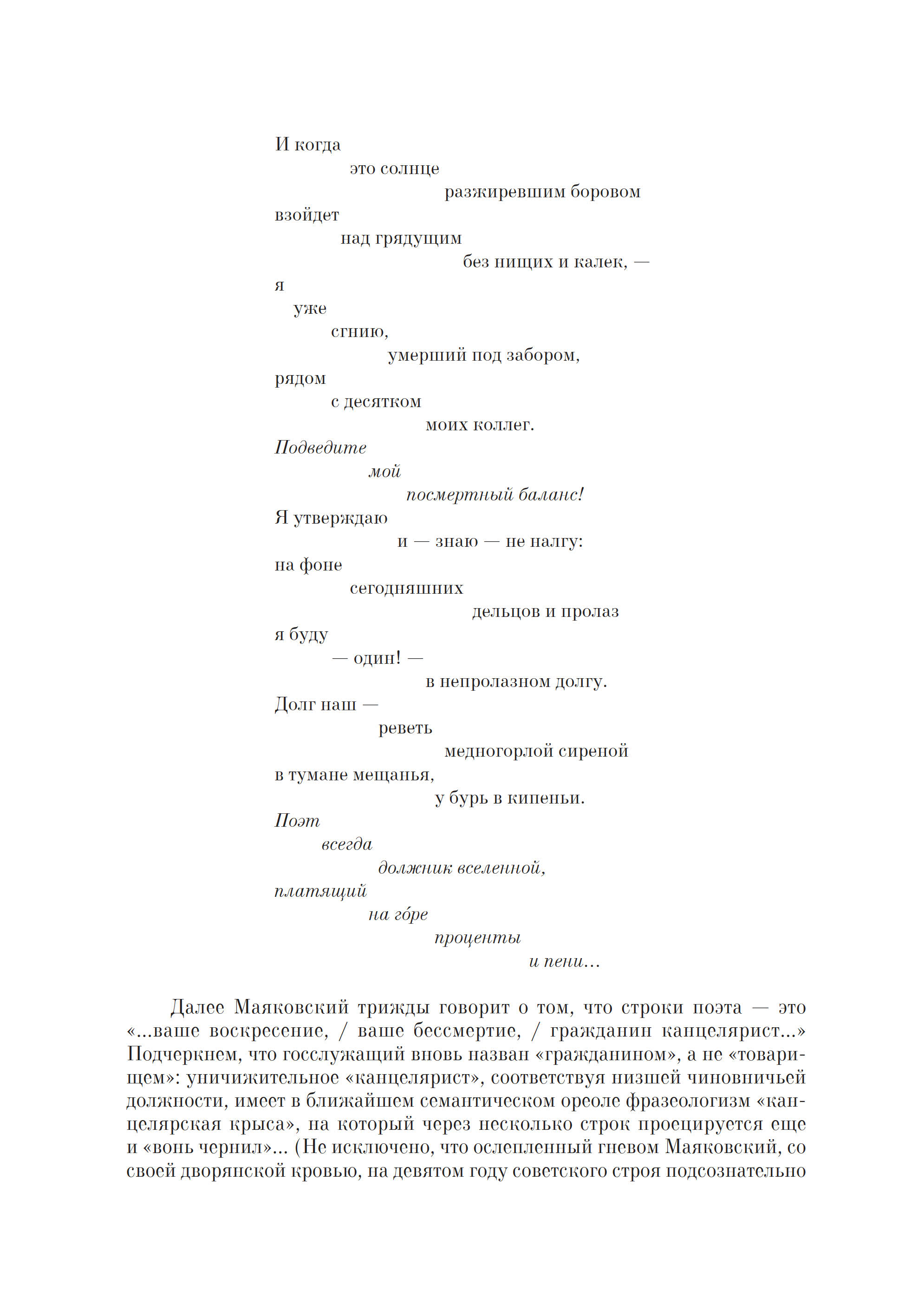 В настоящем издании эпатажный манифест Маяковского впервые подробно комментируется и воспроизводится факсимильно; детально проанализированы перипетии борьбы поэта с финансовым ведомством, публикуются уникальные финансовые документы из фондов Государственного музея В. В. Маяковского (включая налоговые декларации и неизвестные письма-заявления поэта), а также собраны карикатуры и пародии на Маяковского, связанные с темой гонораров.