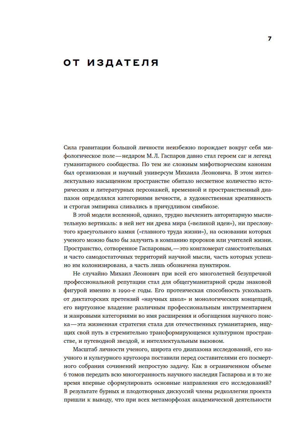 Первое посмертное собрание сочинений в шести томах Гаспарова ставит своей задачей максимально полно передать многогранность его научных интересов и представить основные направления его исследований.