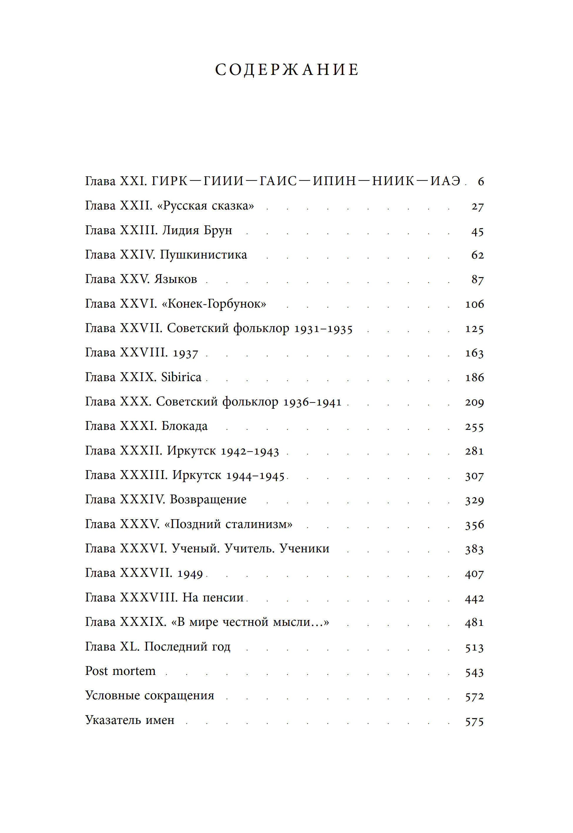 Отдельные главы посвящены драматическим событиям эпохи позднего сталинизма: проработкам на собраниях и травле в печати, увольнению из Ленинградского университета и Пушкинского Дома, отстранению от занятий русским фольклором и упорной борьбе учёного за восстановление своего доброго имени.