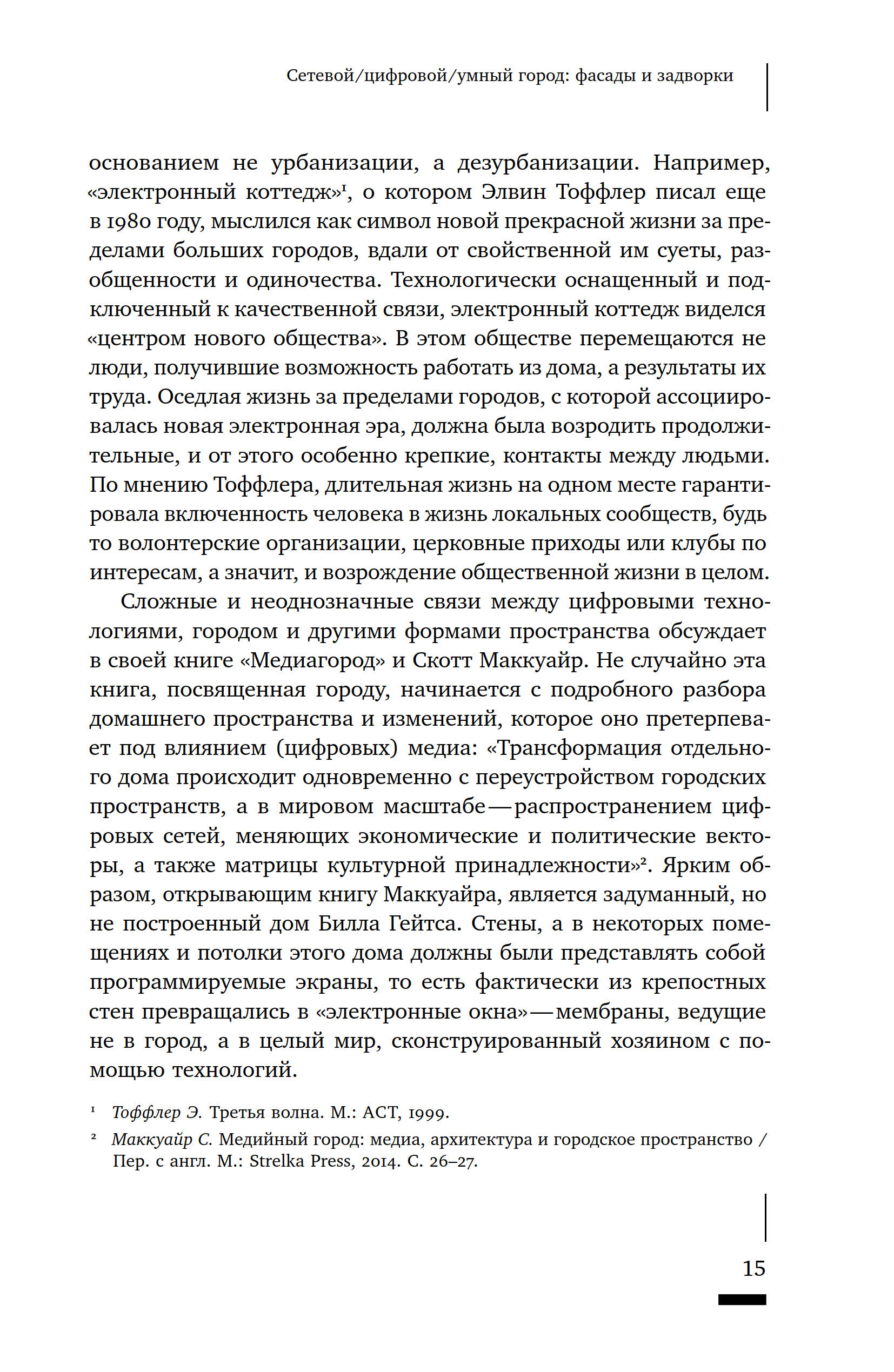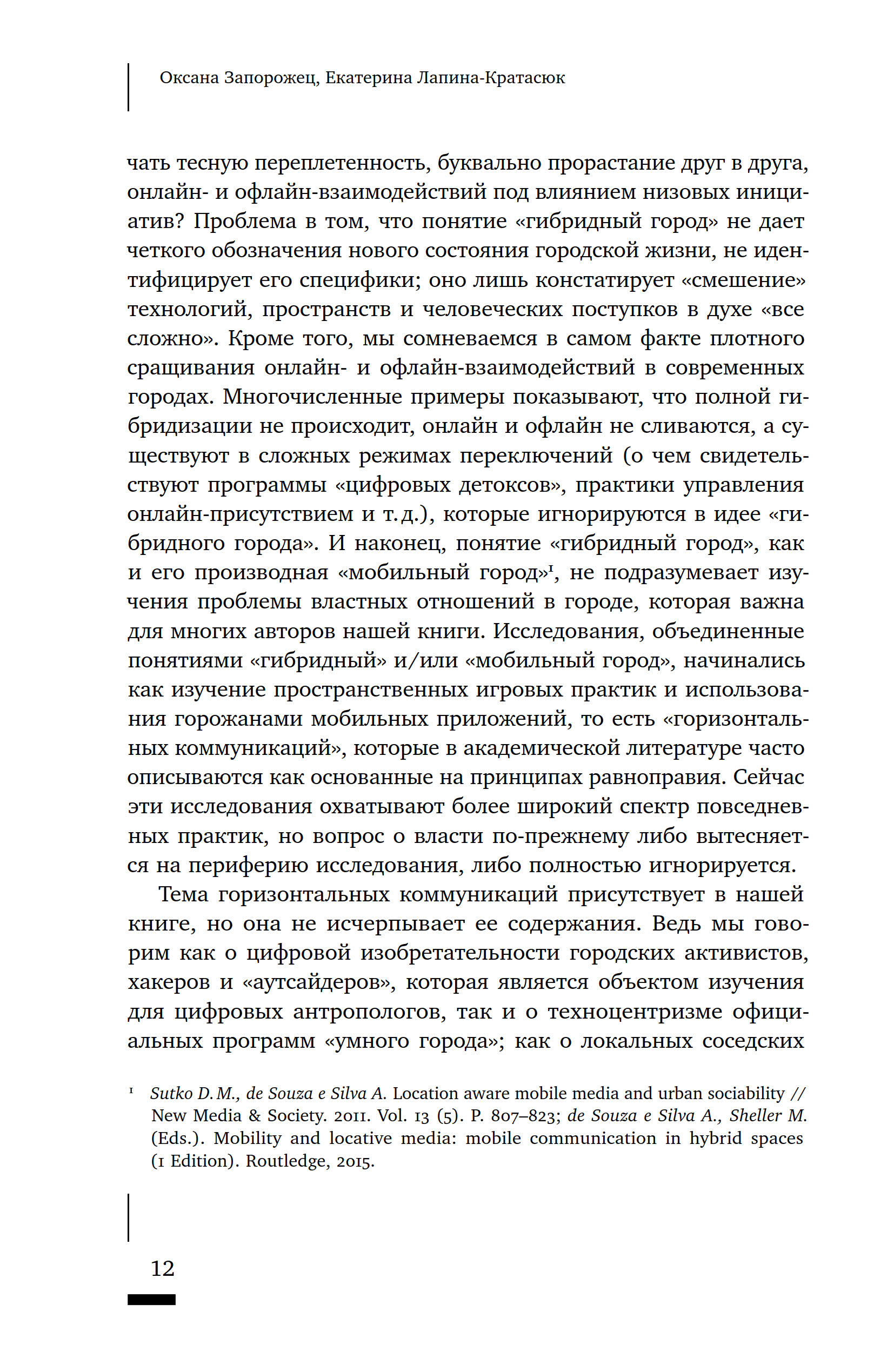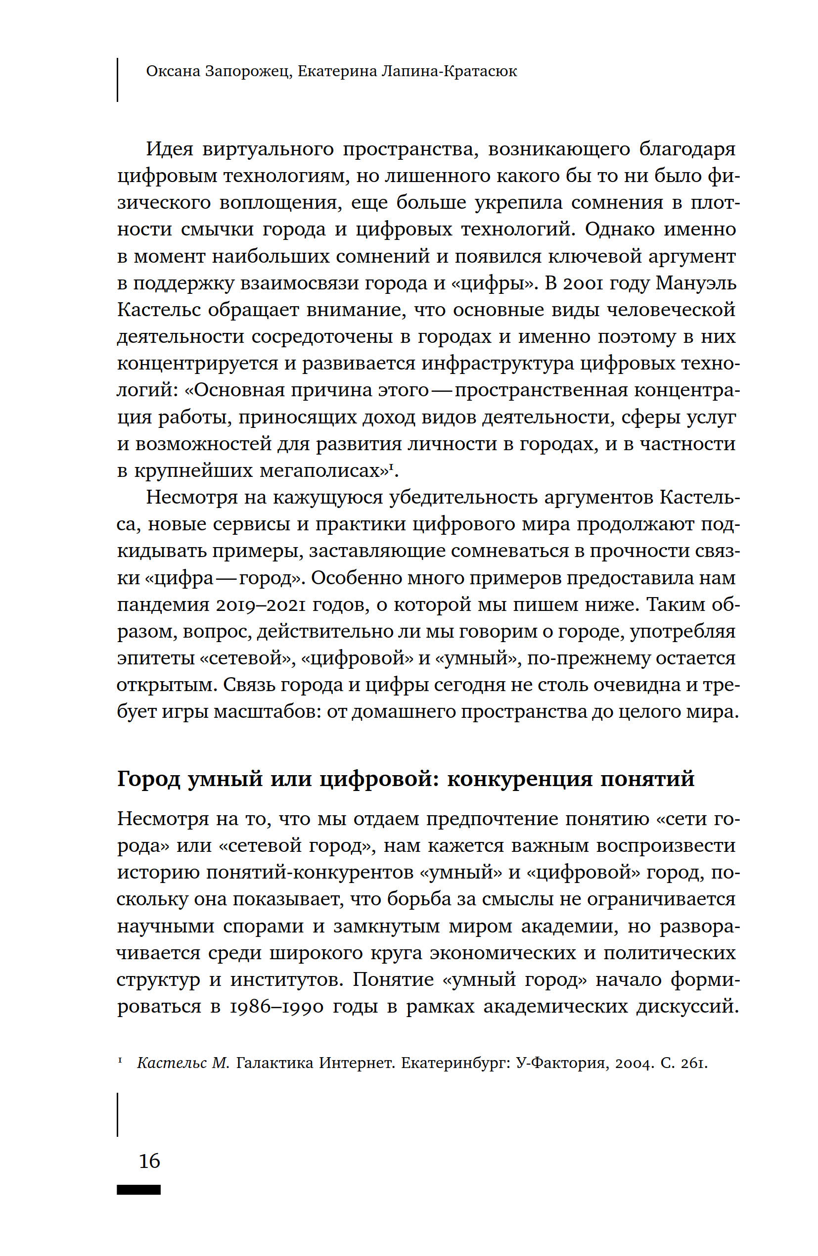 Сегодня мало кто сомневается, что современный город создается и изменяется во многом благодаря цифровым технологиям. Однако до сих пор не существует согласия относительно роли горожан в интенсивно технологизирующейся среде. Их рассматривают и как пассивных генераторов данных, и как послушных пользователей технологий. Но нельзя игнорировать факт, что горожане сегодня активно включаются в переопределение цифровых инструментов, что они не только осваивают преимущества сетей, но и обнаруживают их уязвимости, начинают все более сложным и непредсказуемым образом влиять на технологии и управление городами. Активность горожан ставит под сомнение концепцию умного города как города технологий, уже несколько десятилетий развивающуюся под патронажем IT-гигантов. Авторы этой монографии — социологи, урбанисты, исследователи медиа и данных — задают новые тренды и переходят от темы «умных городов» к «умным горожанам», от «цифрового оптимизма» к «цифровому реализму», от техноцентризма к цифровой антропологии. Рассматривая город с позиции человека, авторы обсуждают возможности и уязвимости развития сетевых / цифровых / умных городов, участия горожан в управлении городом, его ресурсами и экологией, особенности формирования сетевых сообществ — соседских, городских и глобальных, а также множество других не всегда очевидных аспектов повседневной жизни — мобильность и навигацию, городские игры, понимание и представление города.