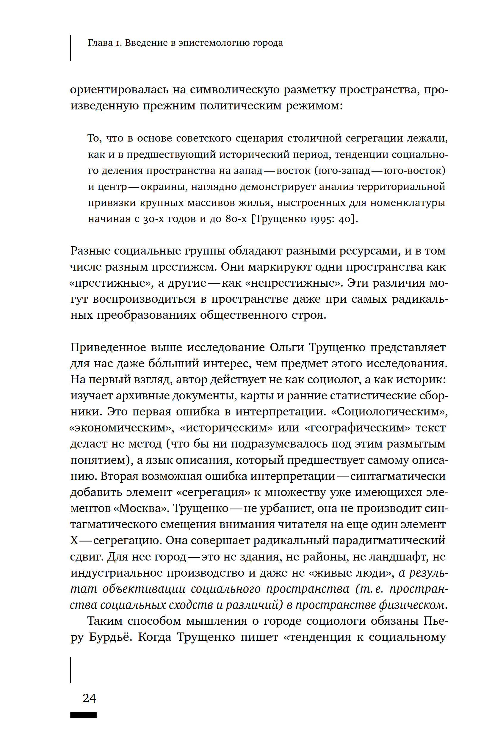 Внутри устоявшегося языка описания, которым пользуются современные урбанисты и социологи, сформировались определенные модели мышления о городе — иными словами, концептуализации. Сегодня понятия, составляющие их фундамент, и сами модели мышления переживают период смысловой «инфляции» и остро нуждаются в серьезной рефлексии. Эта книга о таких концептуализациях: об истории их возникновения и противостояния, о философских основаниях и попытках воплотить их в жизнь. В своем исследовании Виктор Вахштайн показывает, как идеи «локального сообщества», «городской повседневности», «территориального контроля», «общественного пространства» и «социальной сегрегации» закреплялись в языке социологов, архитекторов и планировщиков, как из категорий познания превращались в инструменты управления. Теория концептуализации обнаруживает в хаотичном многообразии современных мегаполисов следы созданных исследовательским воображением утопических городов — от Бурдьеполиса до Сьюдад Деланды. Виктор Вахштайн — кандидат социологических наук, MA in sociology Манчестерского университета, декан факультета социальных наук Московской высшей школы социальных и экономических наук («Шанинки»), декан философско-социологического факультета РАНХиГС.