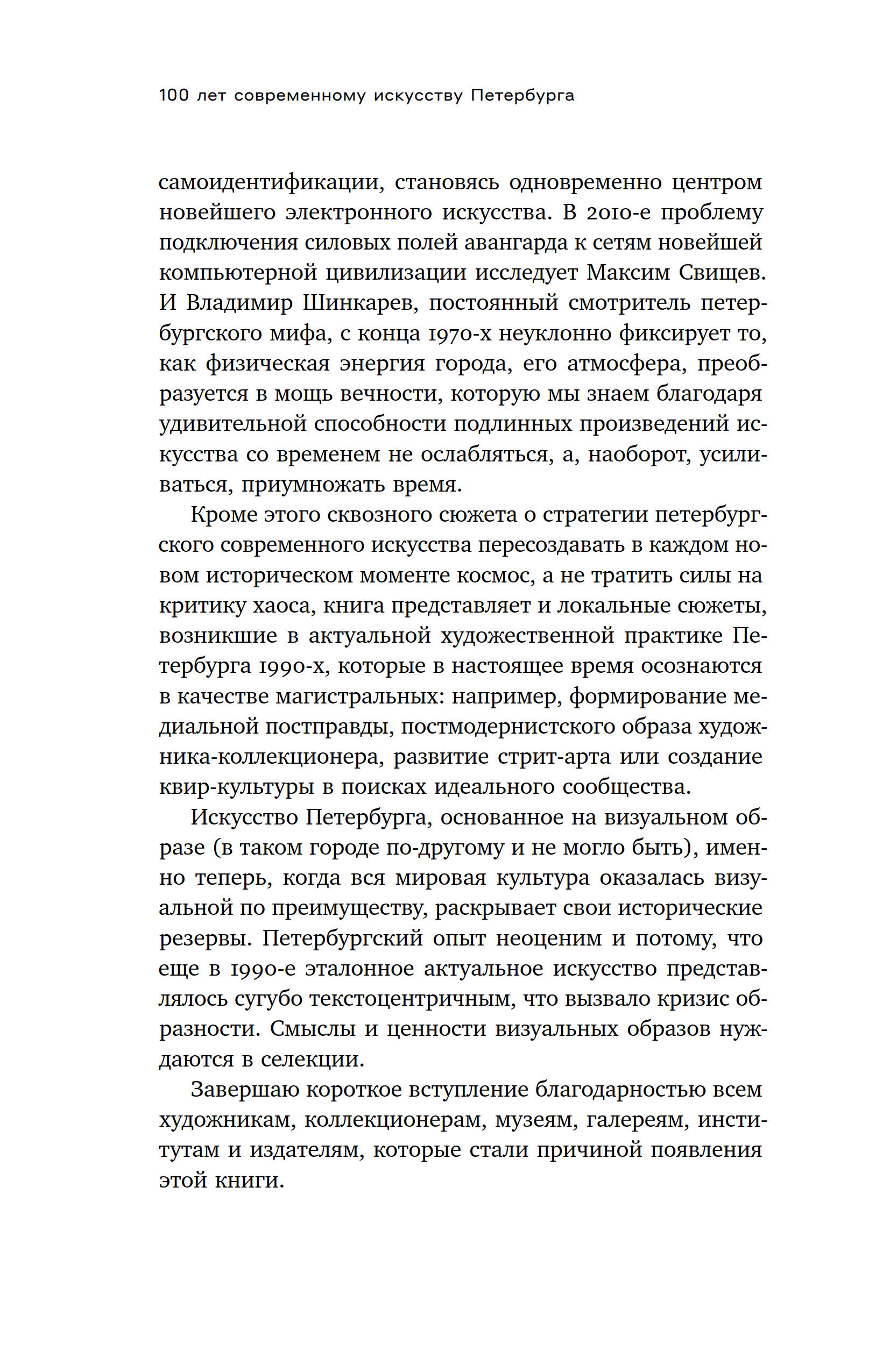 Есть ли смысл в понятии «современное искусство Петербурга»? Ведь и само современное искусство с каждым десятилетием сдается в музей, и место его действия не бывает неизменным. Между тем петербургский текст растет не одно столетие, а следовательно, город является месторождением мысли в событиях искусства.