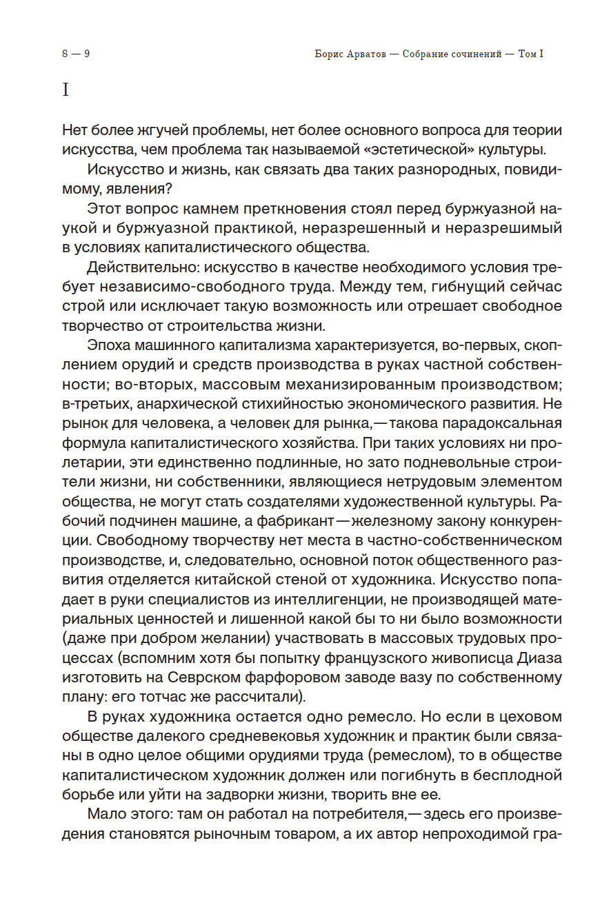 В четырехтомное собрание сочинений Бориса Арватова (1986–1940) вошли практически все его тексты, написанные с 1923 по 1931 год. Радикальная идея Арватова заключалась в понимании искусства как практического инструмента, с помощью которого художник должен организовывать быт и производство, а не изображать их. Стремясь порвать с традицией буржуазного искусства, основанной на уходе от действительности, Арватов заявлял: художник — не избранный пророк, рисующий натюрморты, портреты или пейзажи, а «квалифицированный» инженер-ремесленник, который трудится в мастерской и помогает решать задачи, стоящие перед обществом.