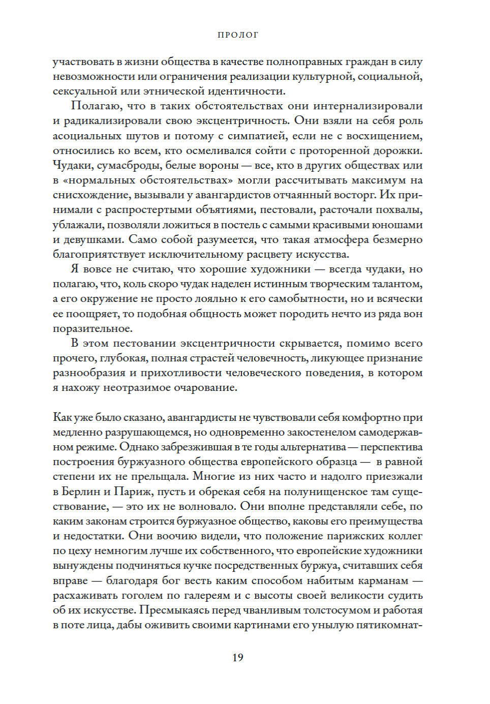 Авангард — это не направление и не стиль в искусстве и, на мой взгляд, не теория. Авангард — это менталитет, образ жизни, выражавшийся не только в творчестве художников, но и в каждой фибре их души, в их убеждениях и поведении. Авангард носил радикальный характер, в том смысле что отвергал существующий порядок, загнавший искусство в угнетающее прокрустово ложе академических канонов. Только в качестве методов борьбы с этим гнетом художники использовали не камни, ружья или бомбы, но провокационные акции, перформанс и эпатаж, а также высмеивали «общественный вкус».