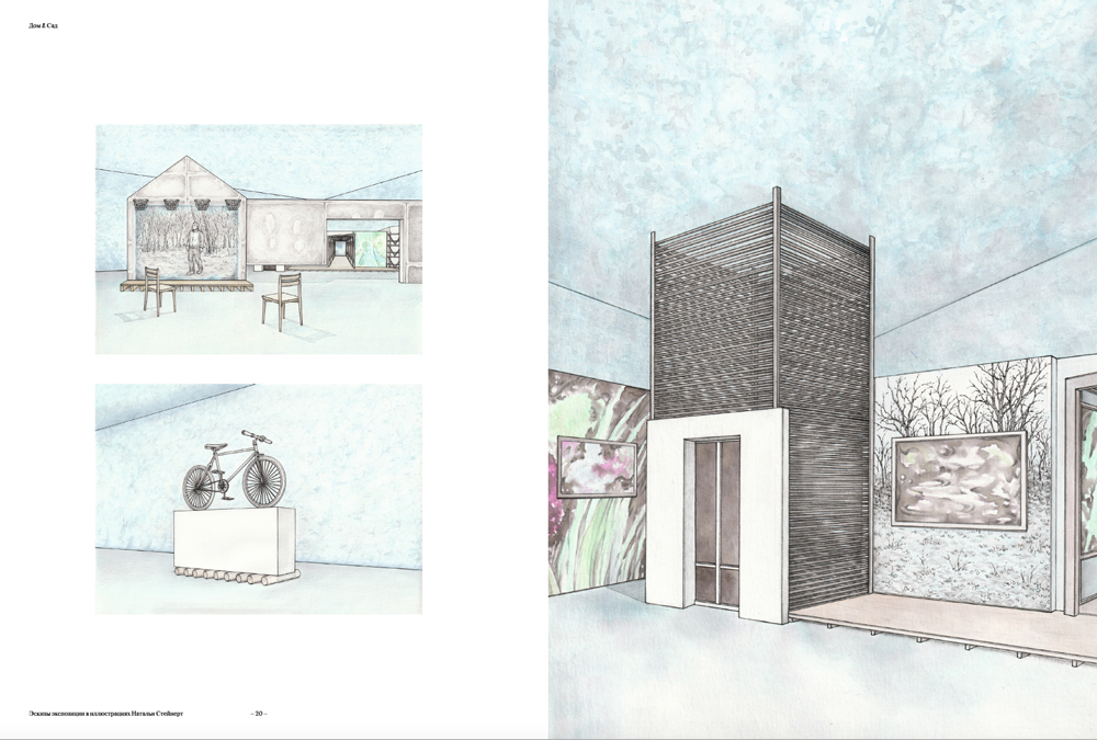 Также представлены фотографии из проекта «Дом и сад», эскизы экспозиции и архитектурные планы.