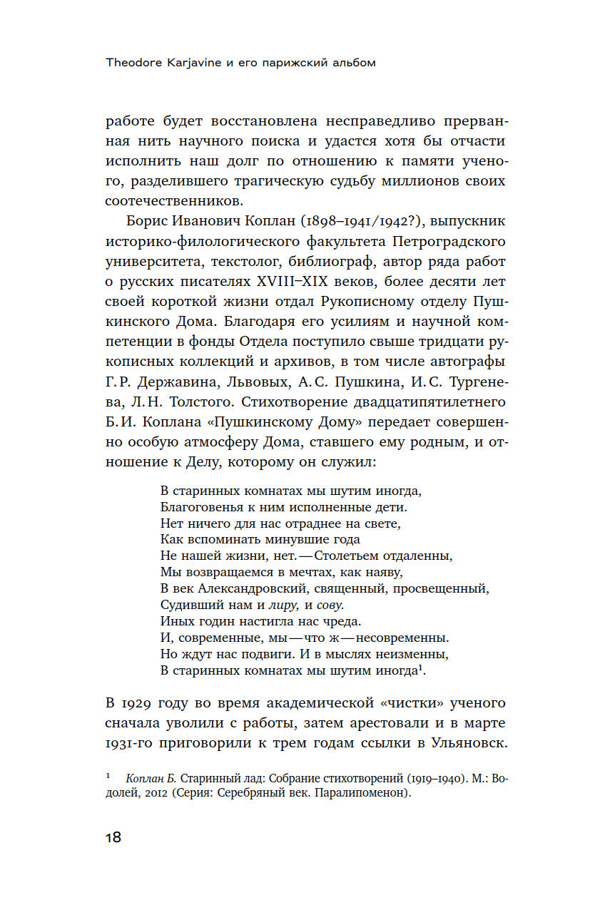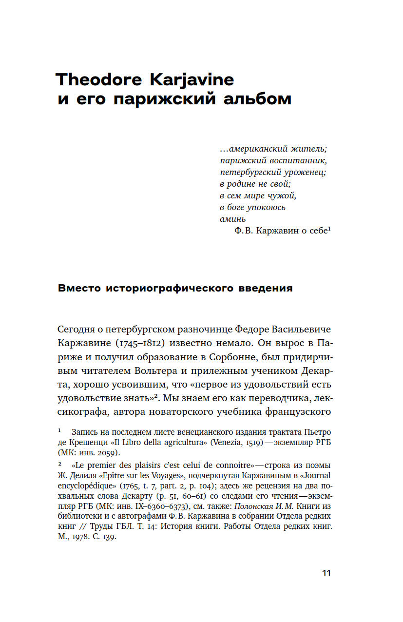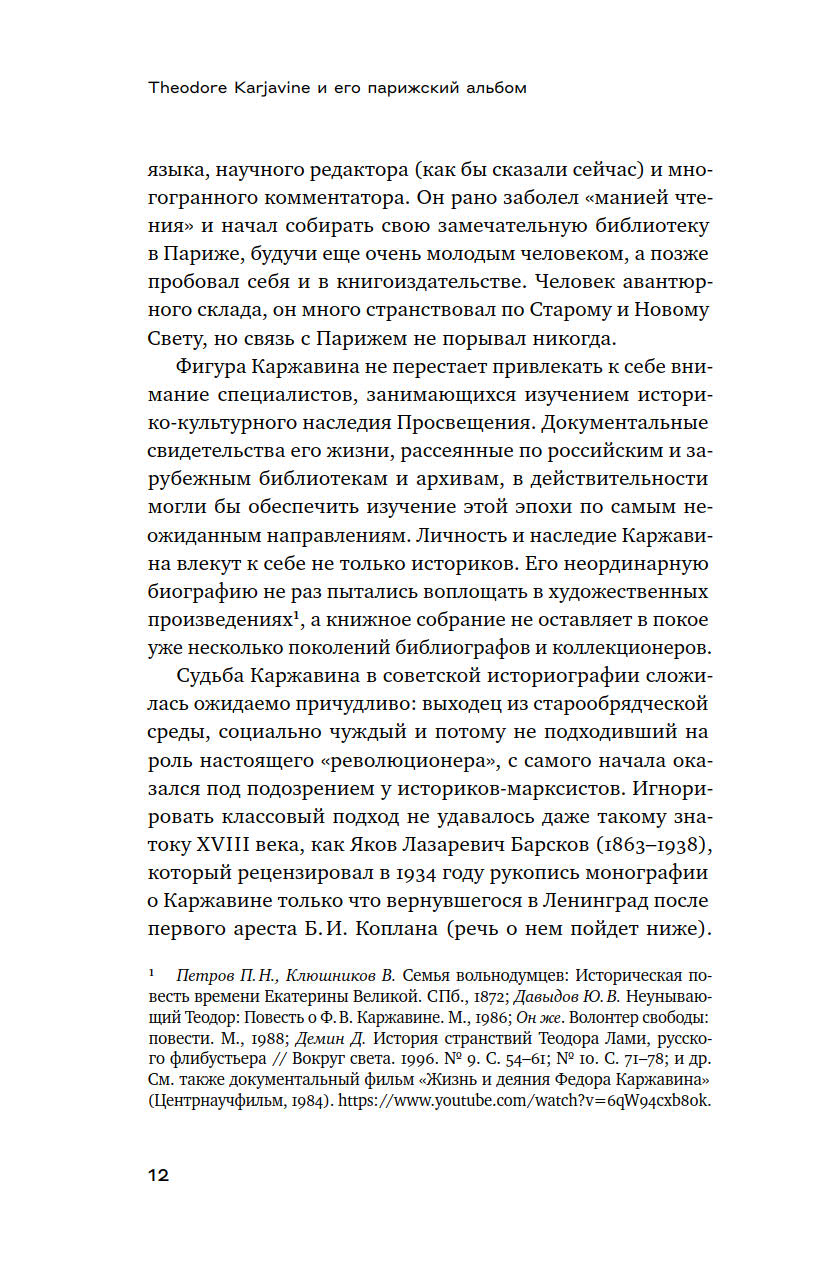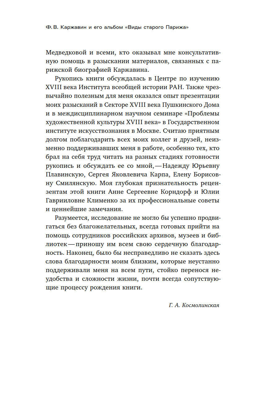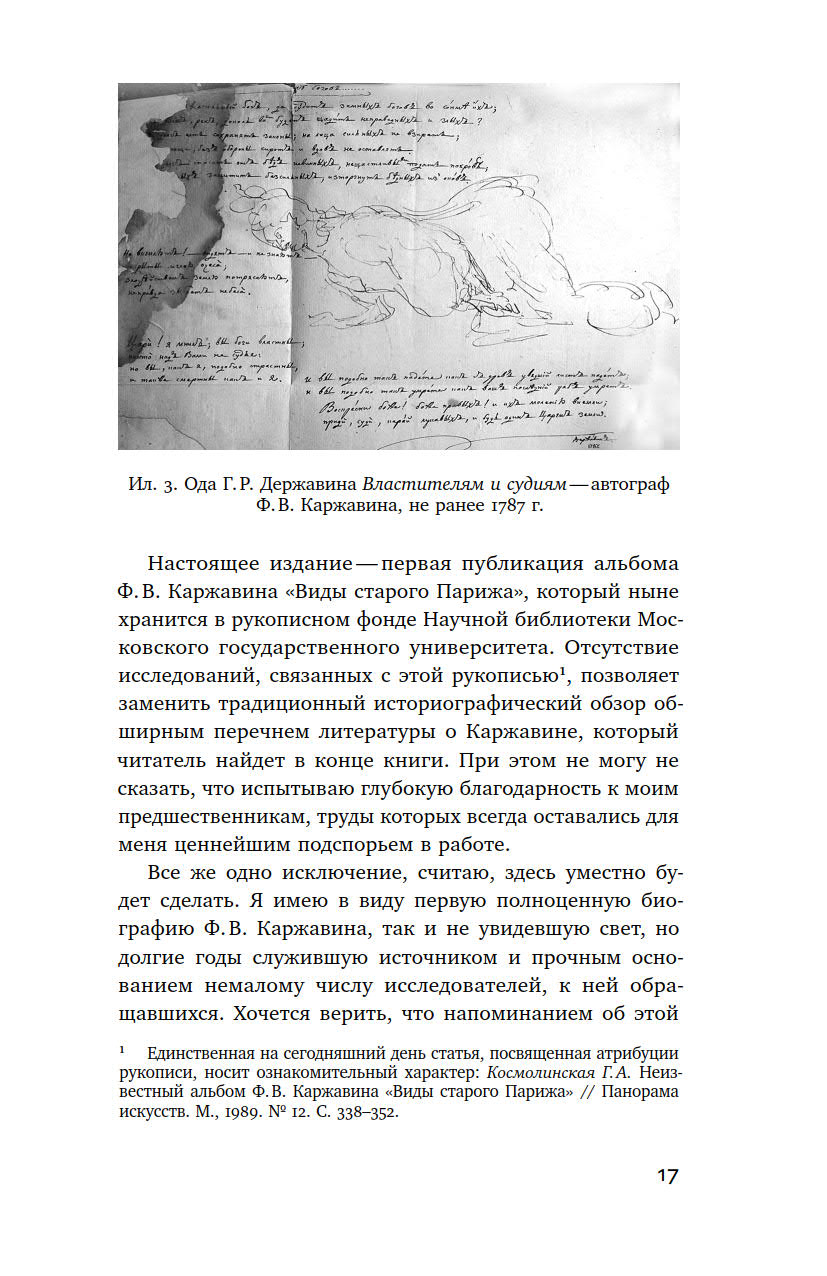 В книге Галины Космолинской его первую полную публикацию предваряет исследование, в котором автор знакомит читателя с парижской биографией Каржавина, историей создания альбома и анализирует его содержание.