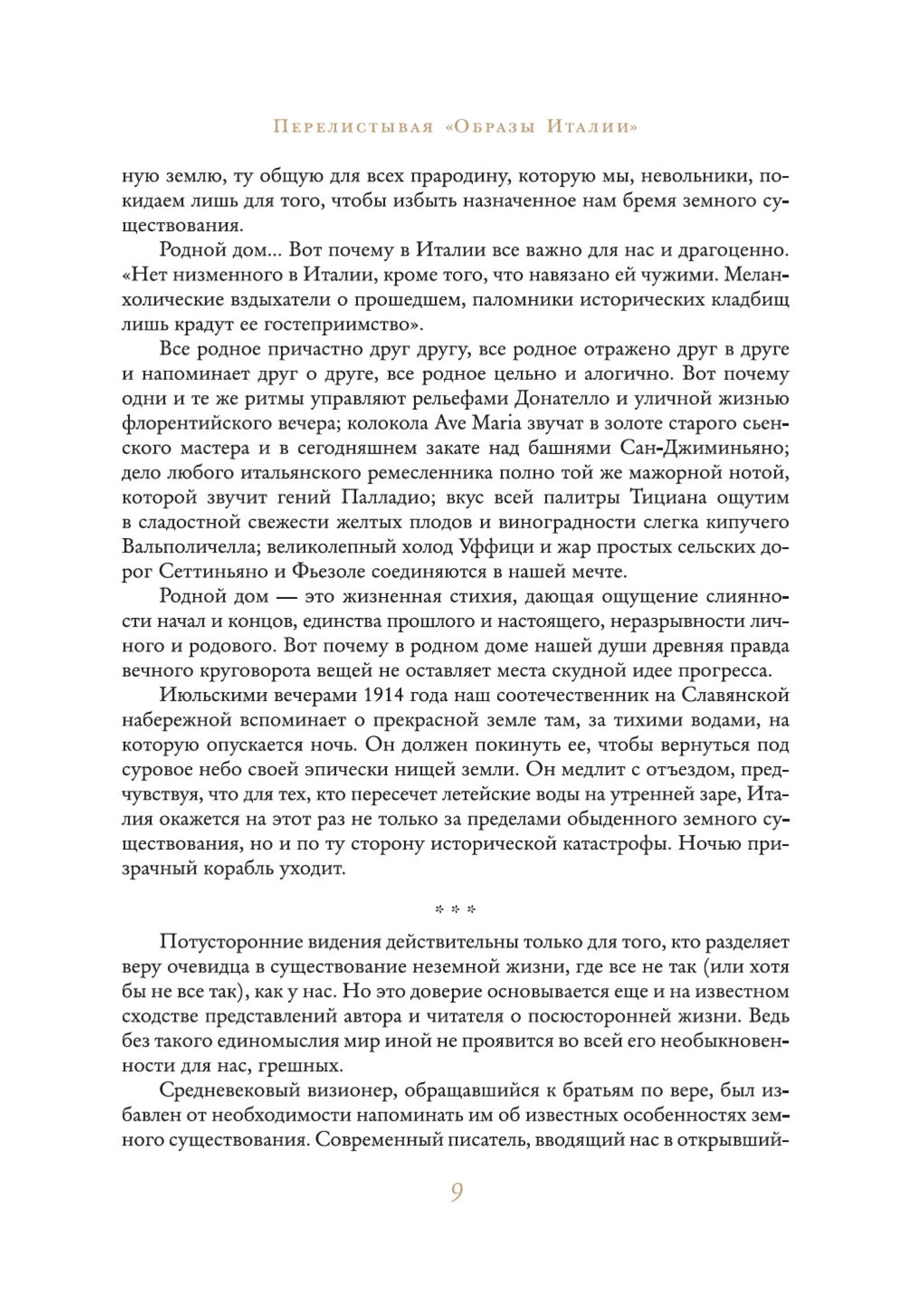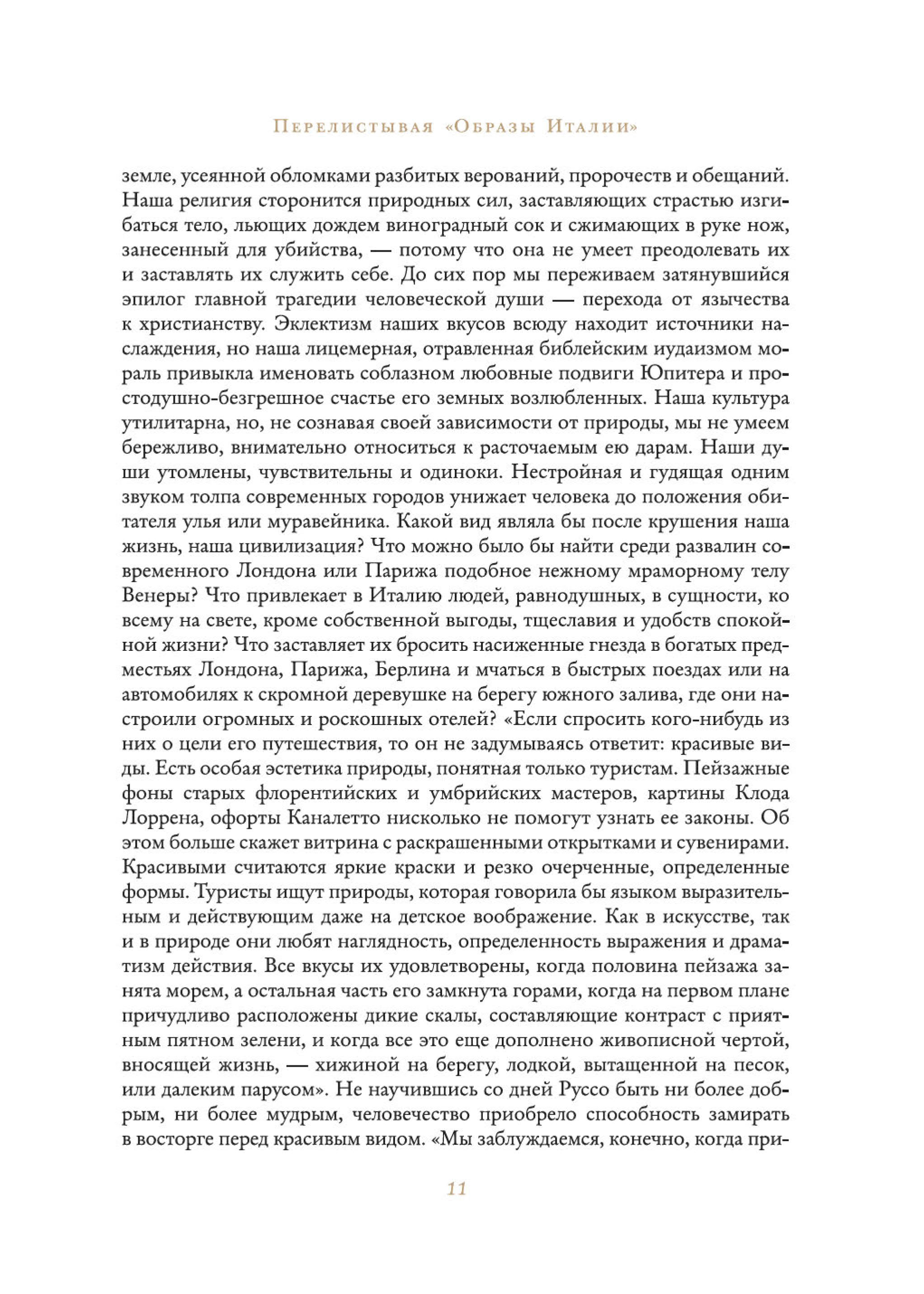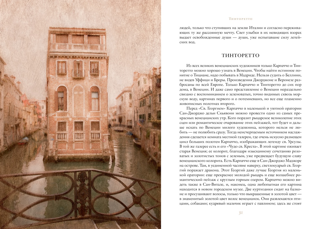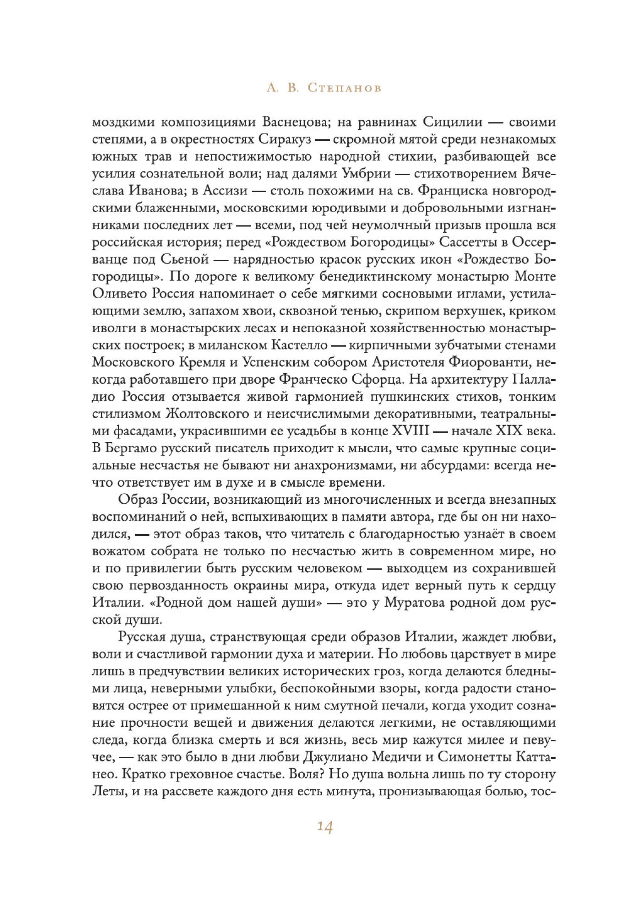 Изобразительный ряд в настоящем издании составляют произведения петербургского художника Нади Кузнецовой, работающей на стыке двух техник — фотографии и графики. В нее работах замечательно переданы тот особый свет, «итальянская пыль», которой по сей день напоен воздух страны, которая была для Павла Муратова духовной родиной.