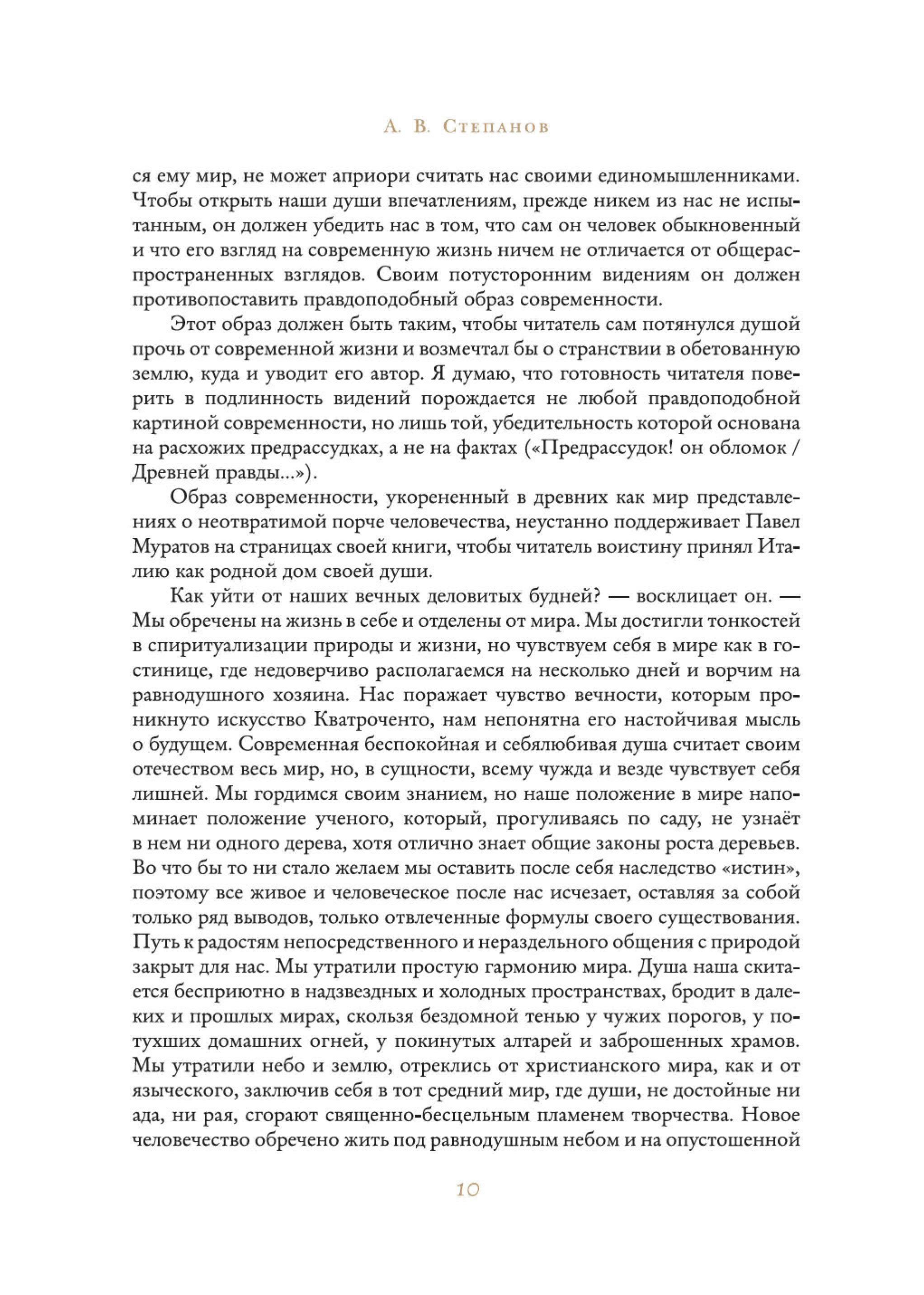 Павел Павлович Муратов (1881 — 1950) — писатель, историк, хранитель отдела изящных искусств и классических древностей Румянцевского музея, тонкий знаток европейской культуры. Над книгой «Образы Италии» писатель работал много лет, вплоть до 1924 года, когда в Берлине была опубликована окончательная редакция. С тех пор все новые поколения читателей открывают для себя муратовскую Италию: «не театр трагический или сентиментальный, не книга воспоминаний, не источник экзотических ощущений, но родной дом нашей души».
