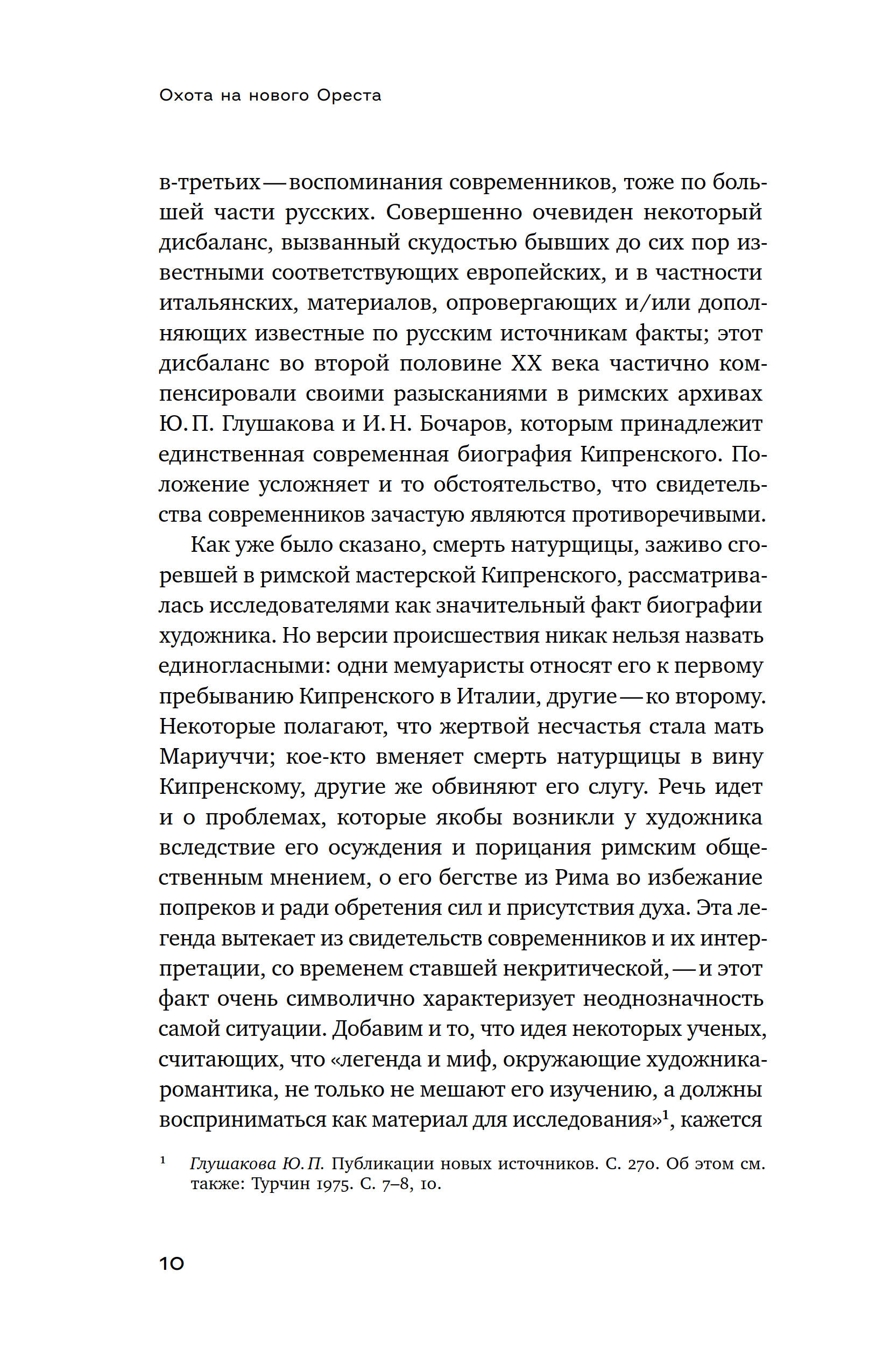 Жизнь известного живописца Ореста Адамовича Кипренского (1782–1836) вплоть до наших дней оставалась объектом сплетен и легенд — от простых выдумок до возмутительной клеветы: его обвиняли в жестоком убийстве сгоревшей заживо натурщицы (предположительно и его любовницы); в непристойной связи с девочкой, которая впоследствии стала его женой; говорили о нем как о живописце, растратившем в Италии свой талант. Несмотря на многочисленные исследования о художнике, многие вопросы его биографии остались без ответа, зловещие легенды были неоднократно повторены и тем самым увековечены без проверки фактов.