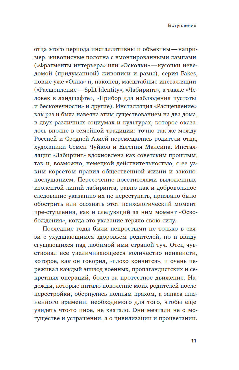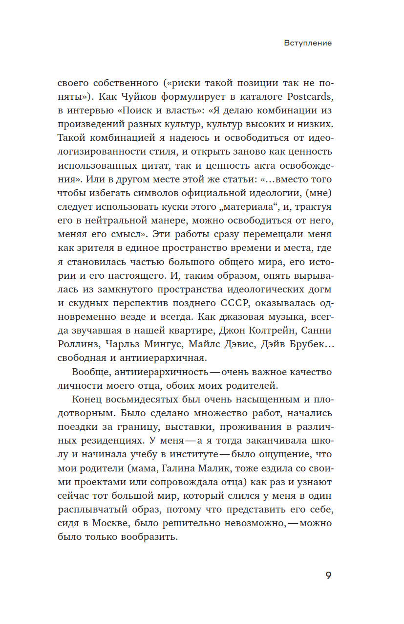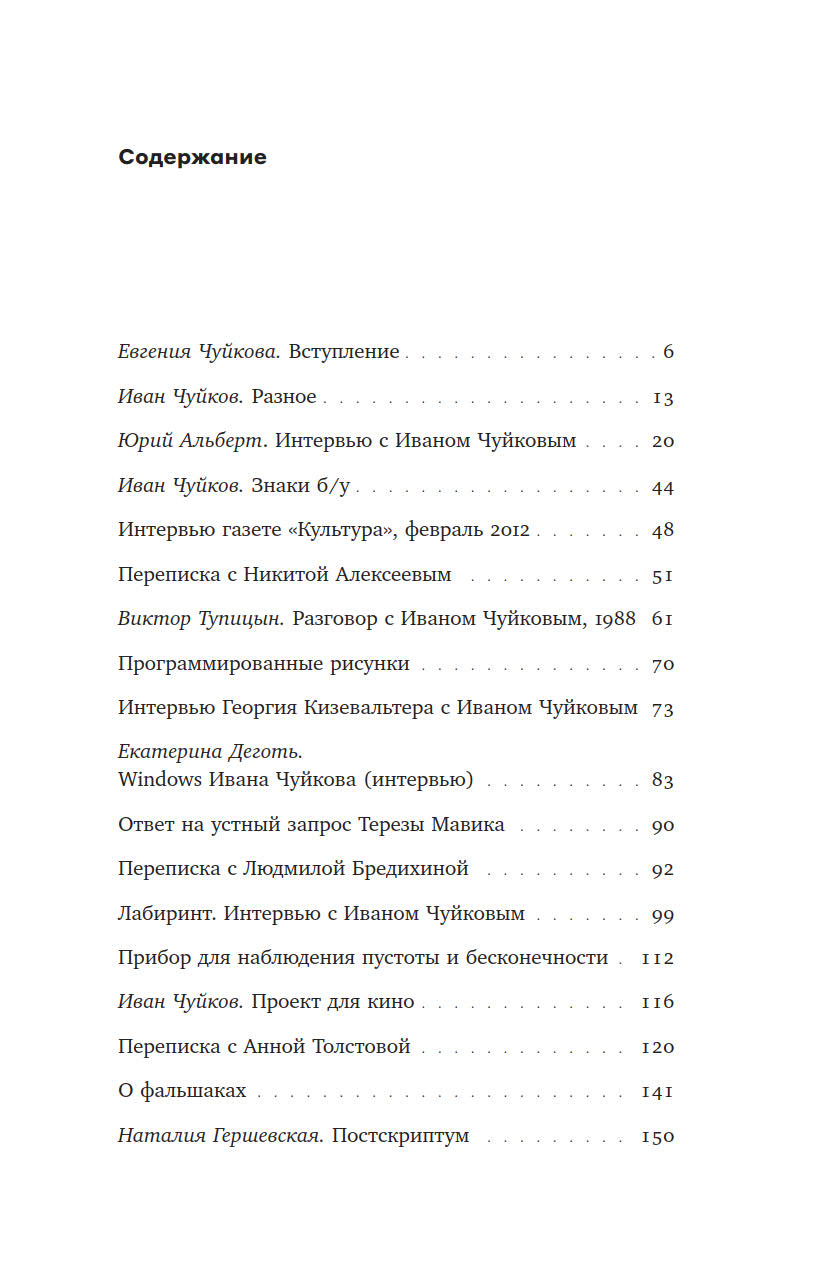 Иван Чуйков (1935–2020), классик российского неподцензурного искусства, в отличие от многих своих коллег, занимался подобного рода исследованиями, не выходя из изобразительного поля, — его словесный и аналитический дар реализовался в интервью и письмах. Из них он сам составил эту книгу, но, к сожалению, не успел увидеть ее изданной. При этом книга представляет не только автора. Она позволяет рассмотреть изнутри то художественное движение, которому автор принадлежал и в котором был одной из главных фигур, — но рассмотреть в очень индивидуальной оптике, оптике прирожденного живописца, человека «зрительного таланта».