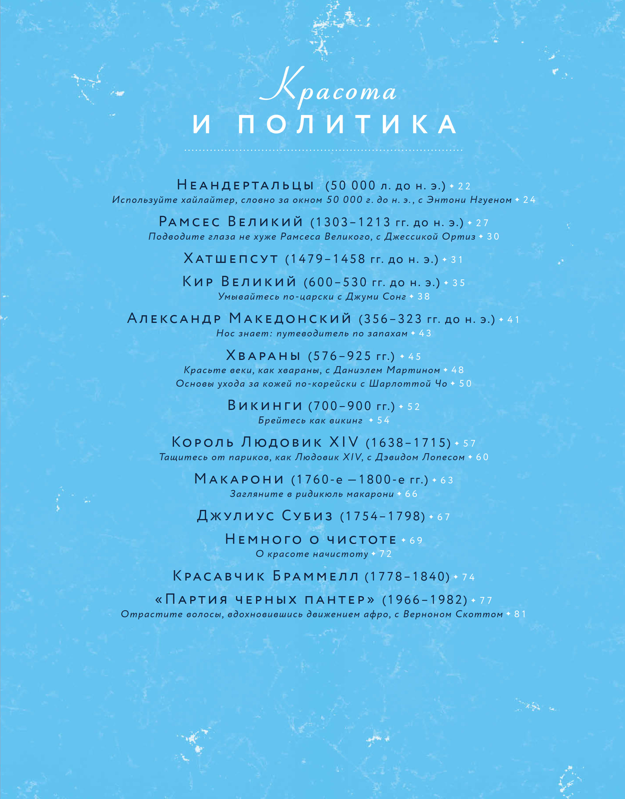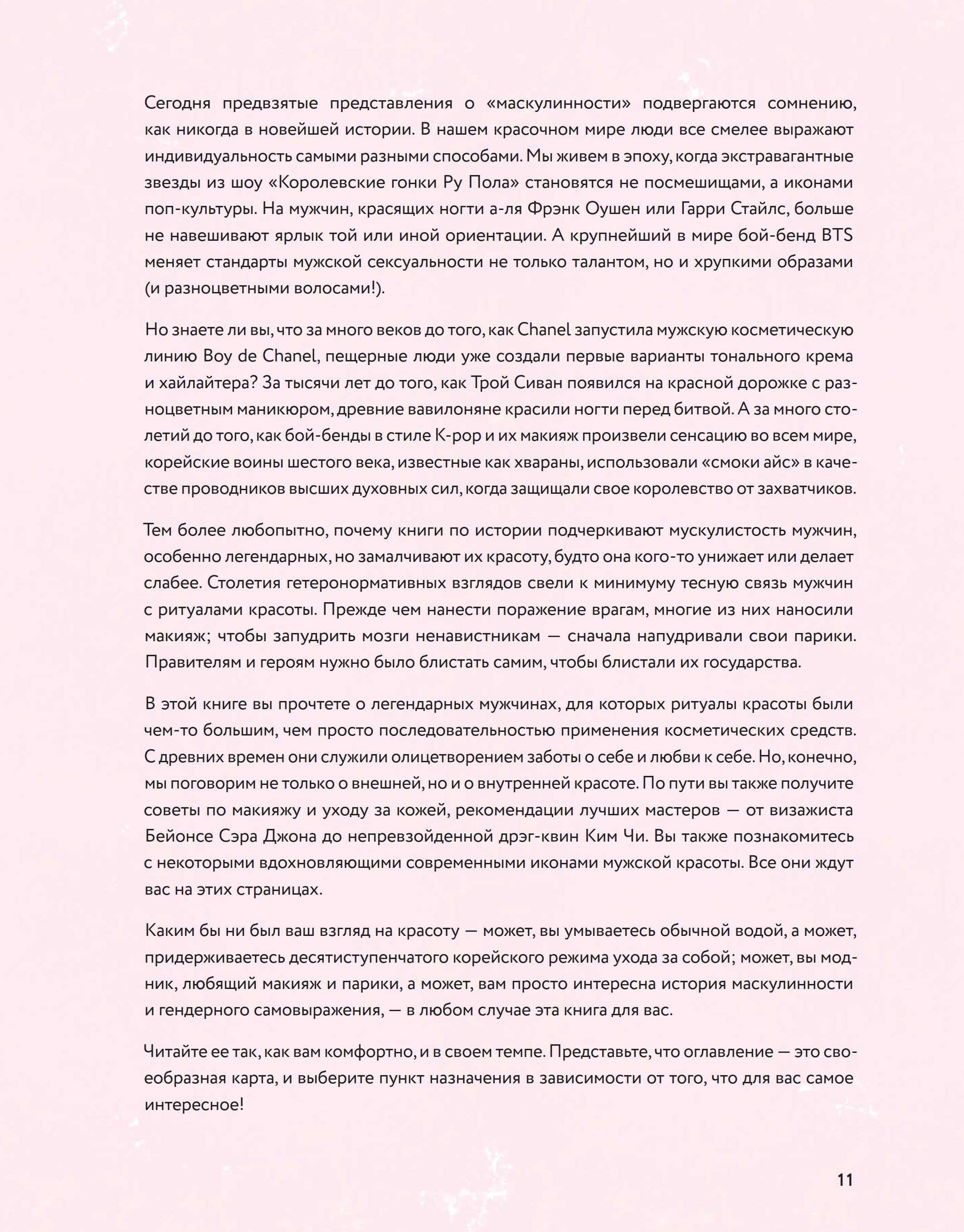 В этой книге вы прочтете о легендарных мужчинах, для которых ритуалы красоты были чем-то большим, чем просто сочетание косметики и продуктов. С древних времен они служили олицетворением заботы о себе и любви к себе. Но, конечно, мы поговорим не только о внешней, но и о внутренней красоте. По пути вы также получите советы по макияжу и уходу за кожей, рекомендации лучших мастеров ― от визажиста Бейонсе Сэра Джона до непревзойденной дрэг-квин Ким Чи. Также вы познакомитесь с некоторыми вдохновляющими современными иконами мужской красоты. Все они ждут вас на этих страницах.