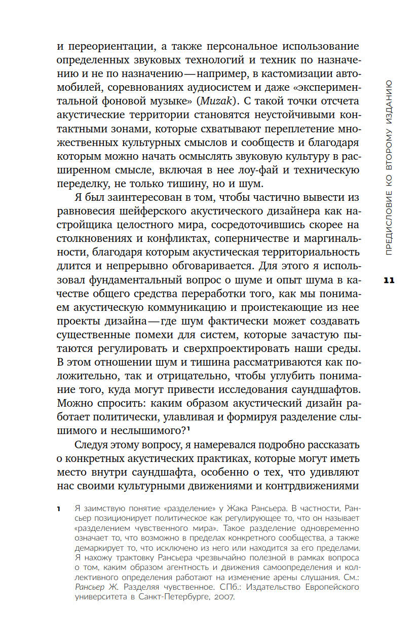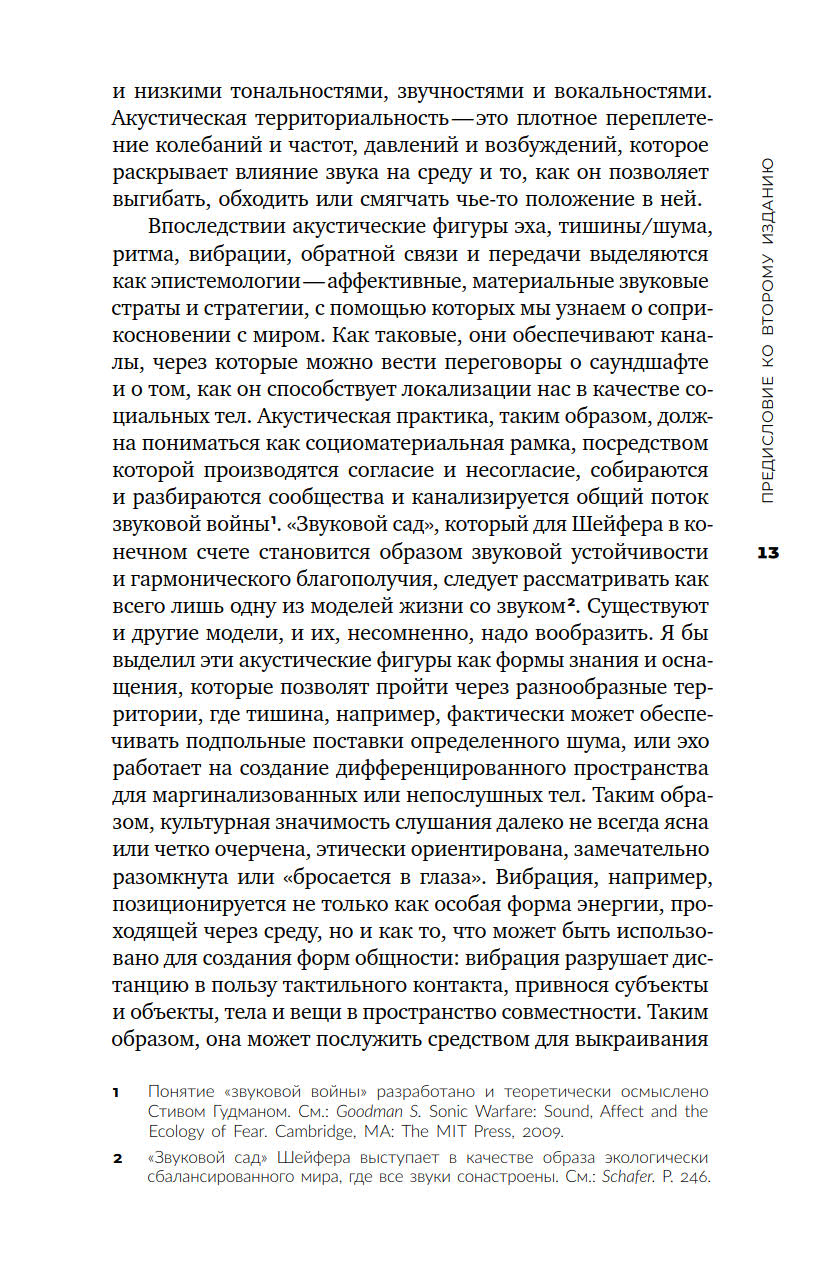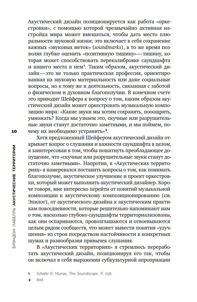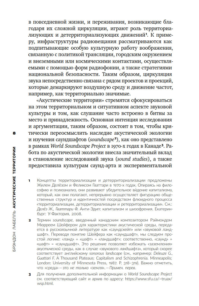 Перемещаясь по городу, зачастую мы полагаемся на зрение, не обращая внимания на то, что нас постоянно преследует колоссальное разнообразие повседневных шумов. Предлагая довериться слуху, американский культуролог Брэндон Лабелль показывает, насколько наш опыт и окружающая действительность зависимы от звукового ландшафта. В предложенной им логике «акустических территорий» звук становится не просто фоном бытовой жизни, но организующей силой, способной задавать новые очертания социальной, политической и культурной деятельности. Опираясь на поэтическую метафорику, Лабелль исследует разные уровни городской жизни, буквально устремляясь снизу вверх — от гула подземки до радиоволн в небе. В результате перед нами одна из наиболее ярких книг, которая объединяет социальную антропологию, урбанистику, философию и теорию искусства и благодаря этому помогает узнать, какую роль играет звук в формировании приватных и публичных сфер нашего существования.