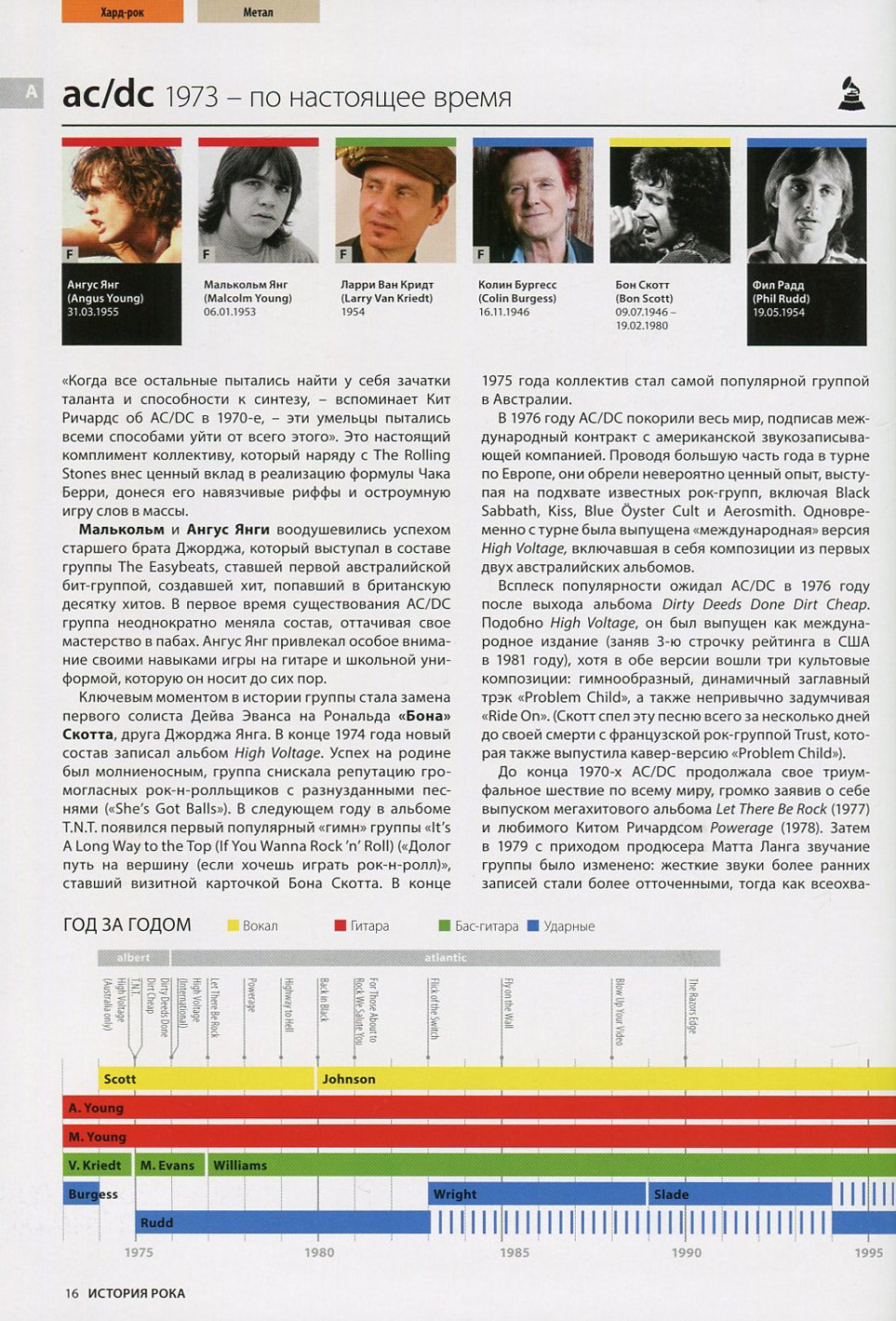 Все группы представлены в алфавитном порядке, и в каждой статье вы ознакомитесь с составом музыкантов — какова бы ни была их роль, даже если они провели в группе совсем немного времени и не успели заявить о себе.