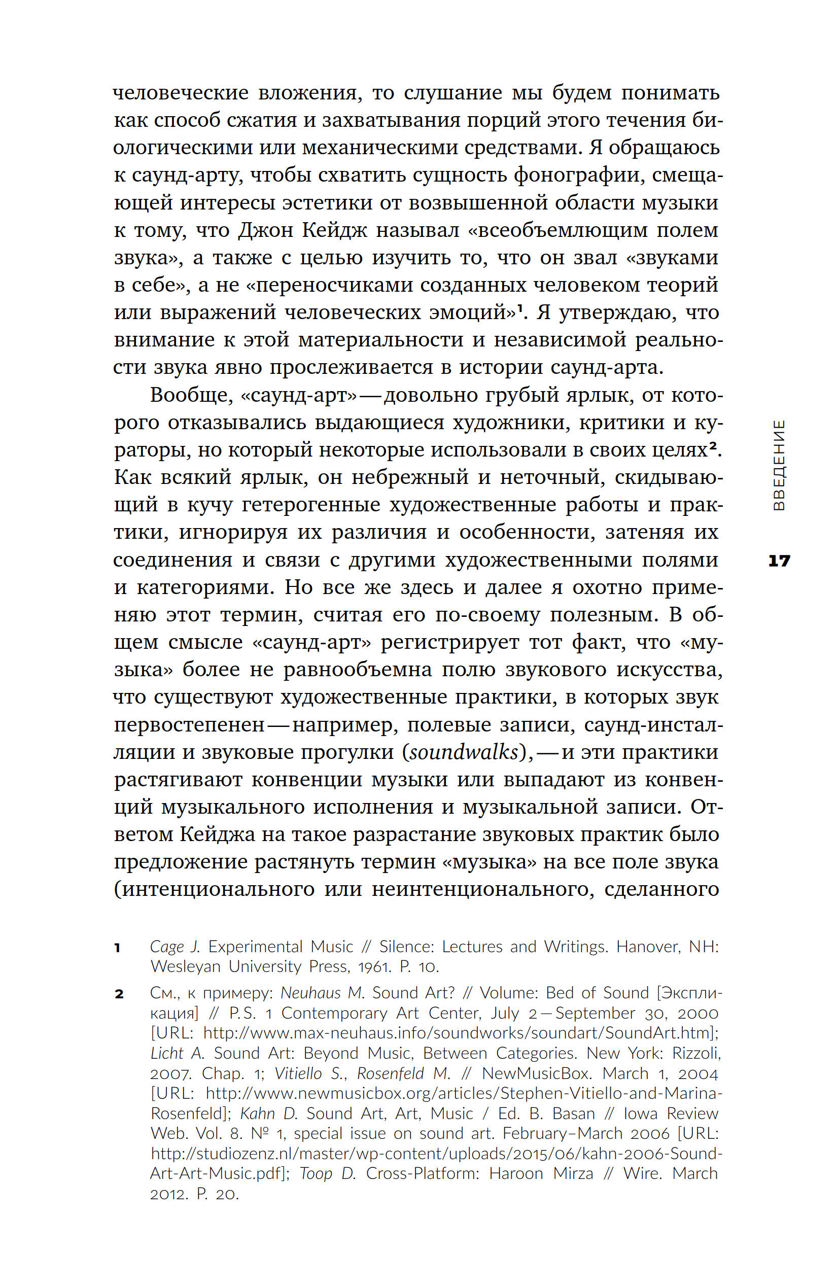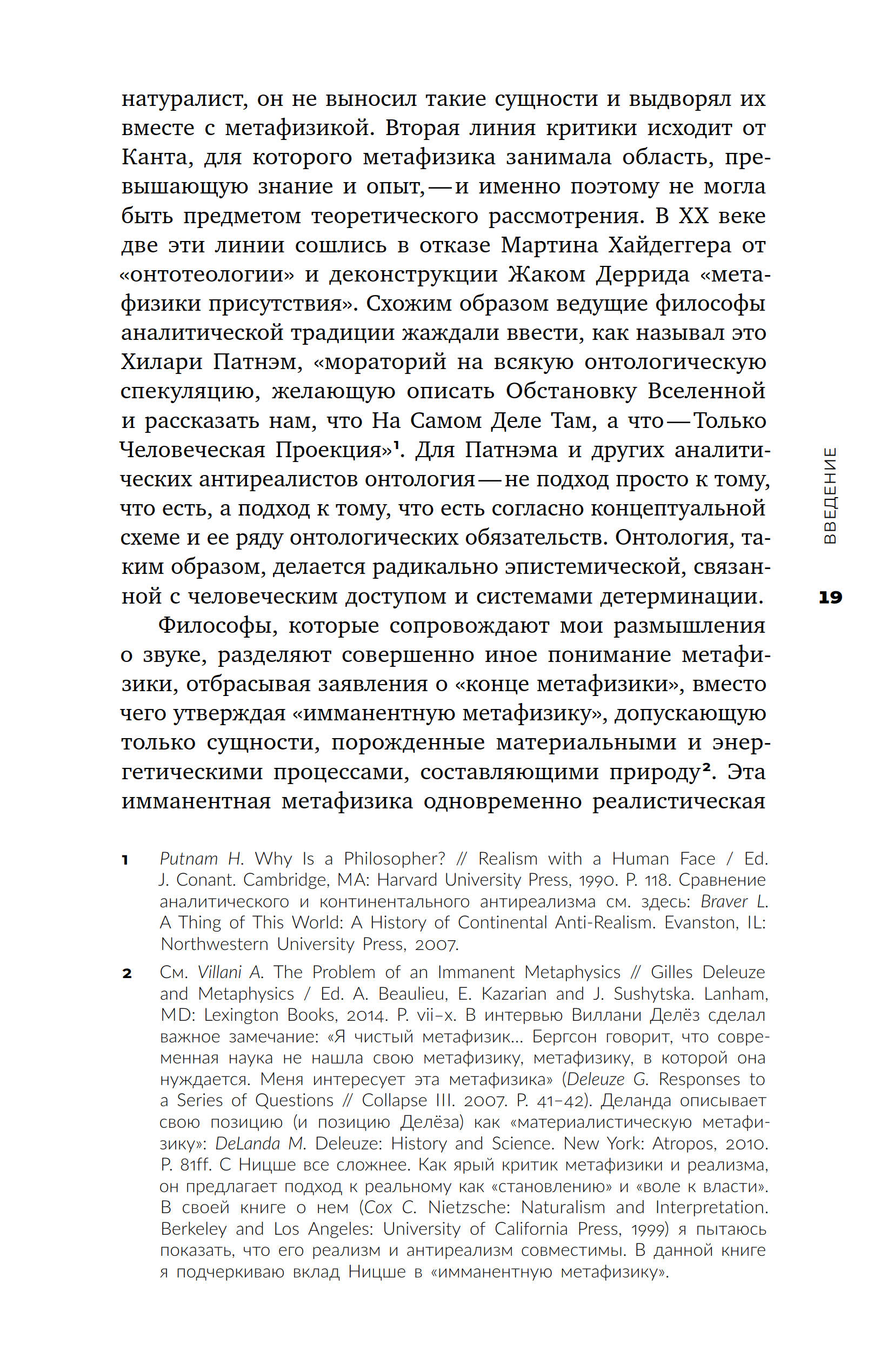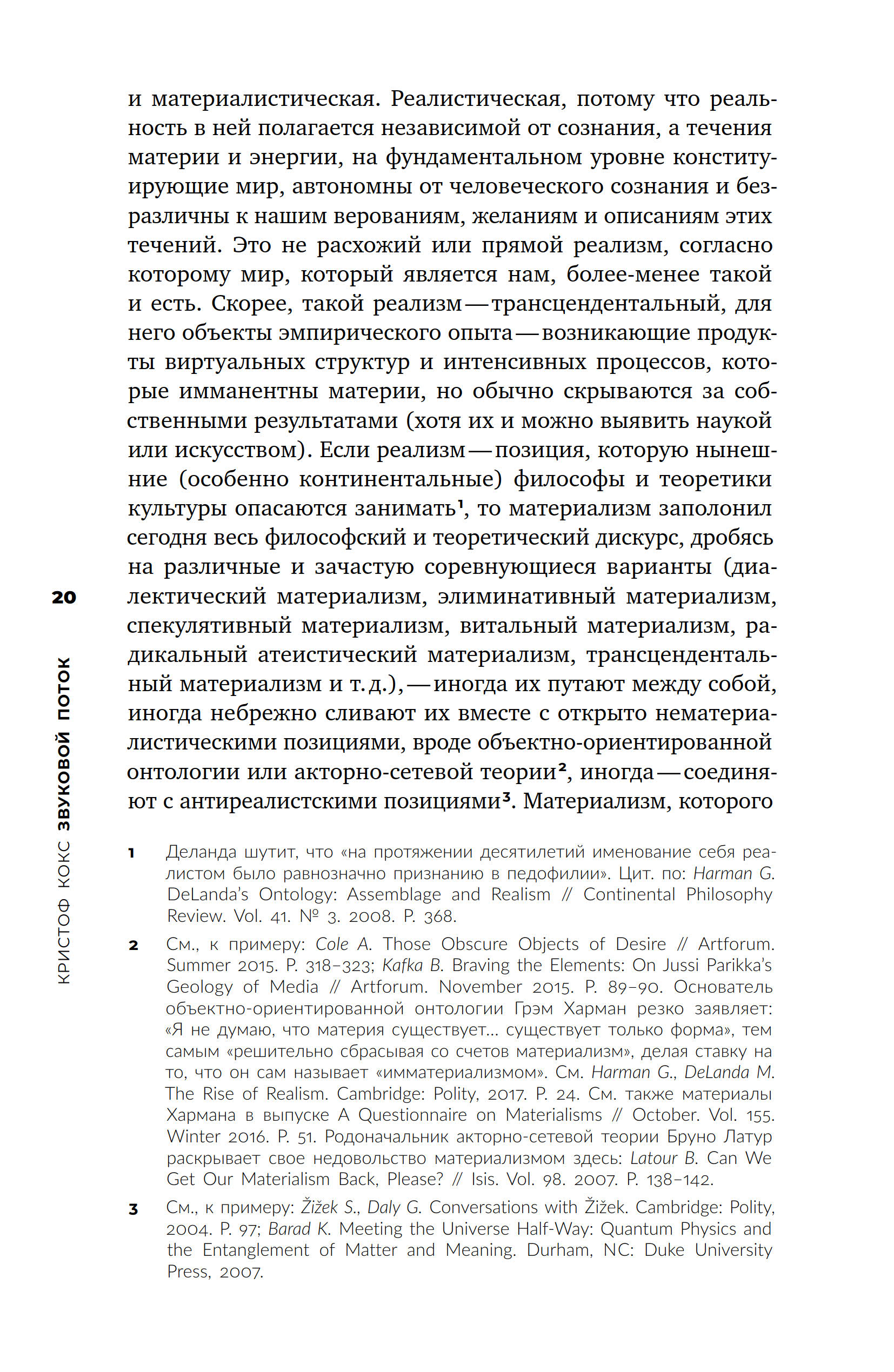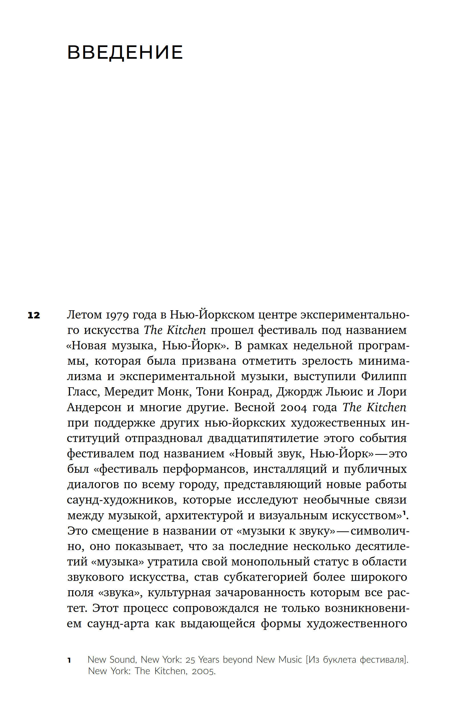 Последние десятилетия мы наблюдаем в современной культуре смещение «от музыки к звуку», поскольку термин «музыка» уже не соответствует стремительному развитию новых художественных жанров и культурных установок. В результате такого смещения, с одной стороны, произошло бурное развитие саунд-арта, а с другой — расцвет Sound Studies в гуманитарных науках. Задача книги Кристофа Кокса — объяснить «звуковой поворот» в искусстве и культуре, а также показать, как звук вторгается на территорию философии и обновляет ее. Решая эту задачу, автор оспаривает магистральные концепции современной культурной теории, основанные на анализе дискурса и языка, и заявляет о необходимости новой материалистической эстетики не только звука, но и искусства вообще. Центральным для книги становится концепт звукового потока — анонимной материалистической силы, которая предшествует человеку и превосходит его субъективный опыт. В попытке выстроить реалистическую и натуралистическую модель описания звука, Кокс обращается к идеям Артура Шопенгауэра, Фридриха Ницше, Жиля Делеза и Мануэля Деланды, иллюстрируя их работами Ла Монте Янга, Элвина Люсье, Кристиана Марклея, Марианн Амахер, Анни Локвуд и многих других. В итоге перед нами не только одно из наиболее фундаментальных и глубоких исследований онтологии звука, но и увлекательная история малоизученного звукового искусства последних пятидесяти лет.