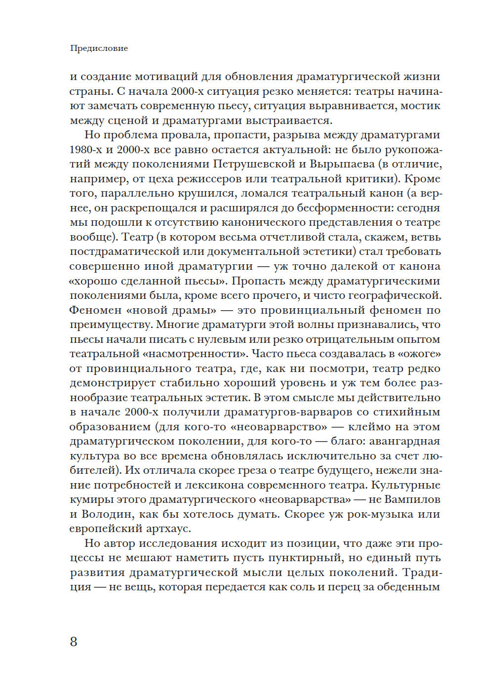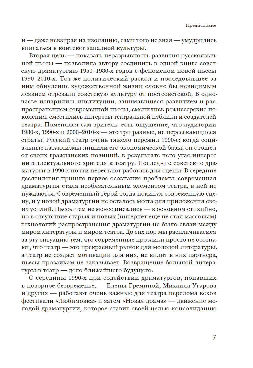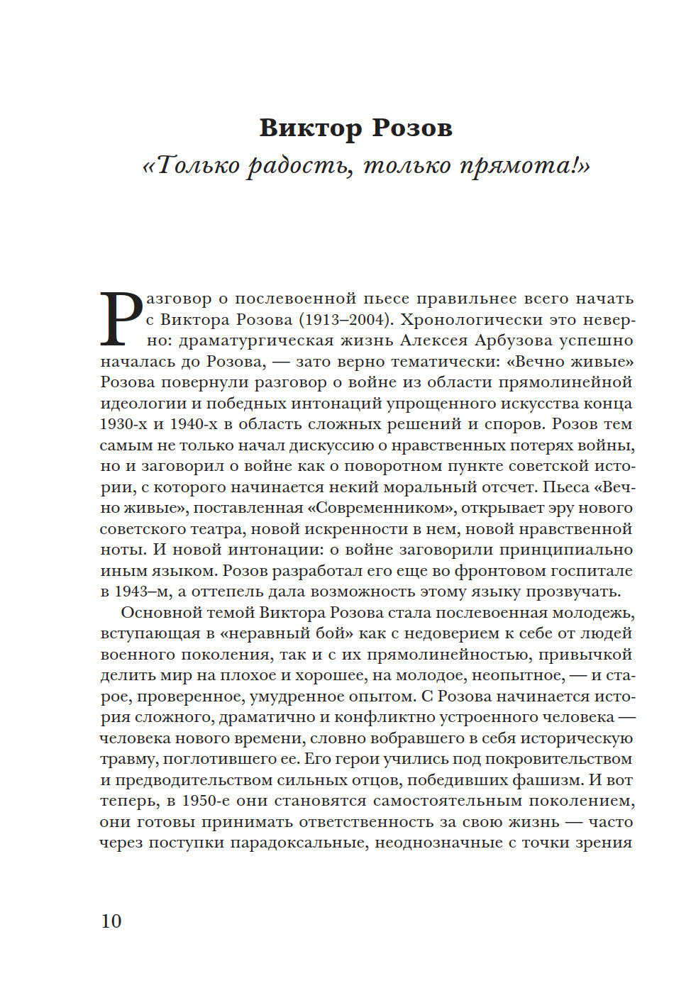 В монографии предпринята попытка представить картину советской послевоенной и постсоветской драматургии с 1950-х годов до наших дней, от В. Розова до И. Васьковской. У автора две задачи: взглянуть на развитие советской драматургии с точки зрения человека начала XXI века, когда канон советского театра более не властен над нынешней театральной реальностью, и поддержать идею непрерывности развития современной пьесы в России. Исследователь опровергает мнение о пропасти между поколениями и подчеркивает, что художественные и нравственные искания авторов советского периода не прерваны, а находят продолжение в драматургии новейшего времени. Книга представляет имена не только известных (А. Арбузов, А. Вампилов, Л. Петрушевская, В. Ерофеев, Н. Коляда, Е. Гришковец, В. Сигарев и другие), но и почти забытых авторов. Некоторые главы посвящены отдельным явлениям — производственной пьесе, «усадебной драматургии», «новой драме», документальному театру и т.д. П. Руднев — театральный критик, кандидат искусствоведения, помощник художественного руководителя МХТ им. А.П. Чехова и ректора Школы-студии МХАТ по спецпроектам. Автор монографии «Театральные взгляды Василия Розанова» (2003).