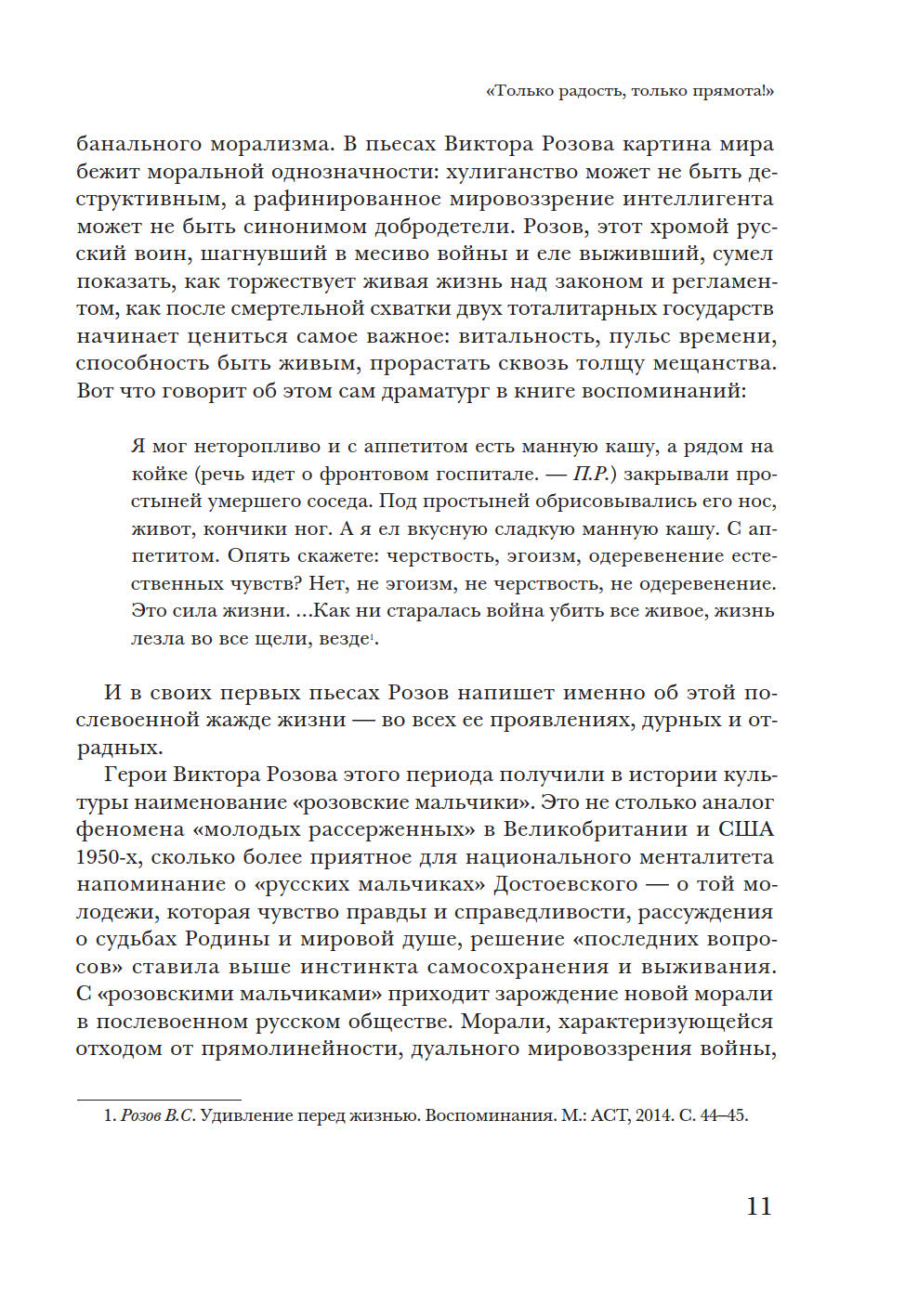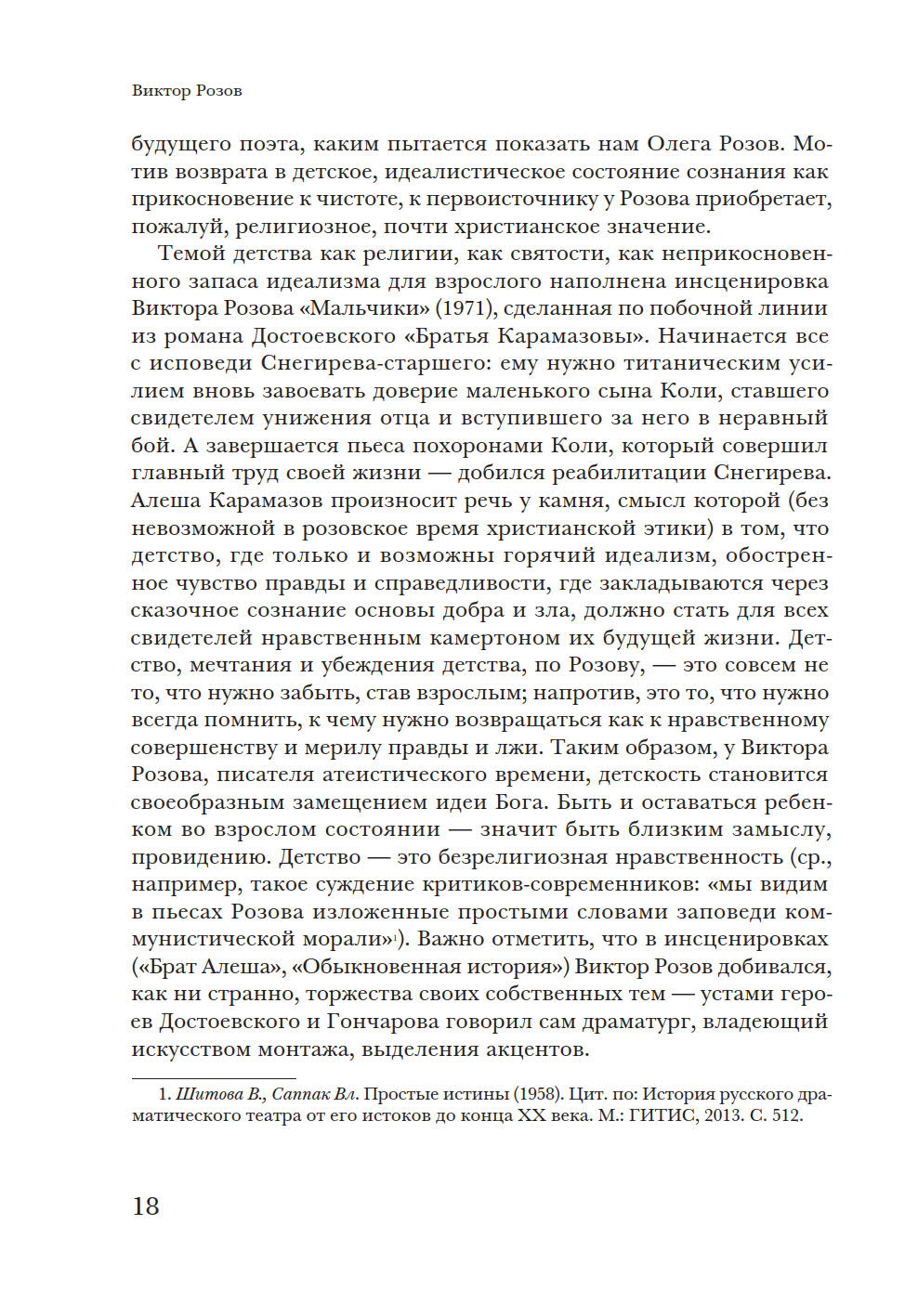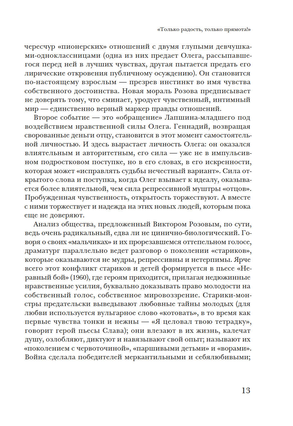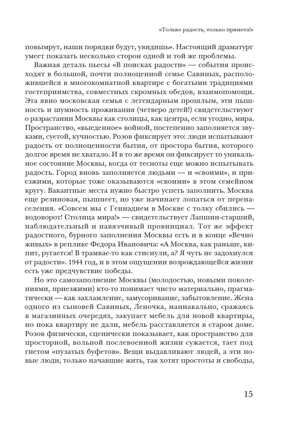 В монографии предпринята попытка представить картину советской послевоенной и постсоветской драматургии с 1950-х годов до наших дней, от В. Розова до И. Васьковской. У автора две задачи: взглянуть на развитие советской драматургии с точки зрения человека начала XXI века, когда канон советского театра более не властен над нынешней театральной реальностью, и поддержать идею непрерывности развития современной пьесы в России. Исследователь опровергает мнение о пропасти между поколениями и подчеркивает, что художественные и нравственные искания авторов советского периода не прерваны, а находят продолжение в драматургии новейшего времени. Книга представляет имена не только известных (А. Арбузов, А. Вампилов, Л. Петрушевская, В. Ерофеев, Н. Коляда, Е. Гришковец, В. Сигарев и другие), но и почти забытых авторов. Некоторые главы посвящены отдельным явлениям — производственной пьесе, «усадебной драматургии», «новой драме», документальному театру и т.д. П. Руднев — театральный критик, кандидат искусствоведения, помощник художественного руководителя МХТ им. А.П. Чехова и ректора Школы-студии МХАТ по спецпроектам. Автор монографии «Театральные взгляды Василия Розанова» (2003).